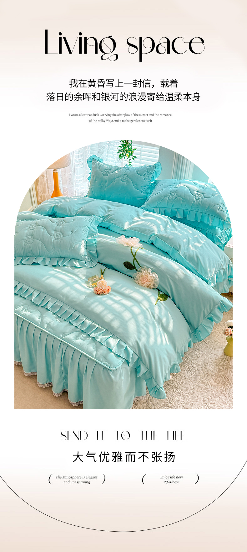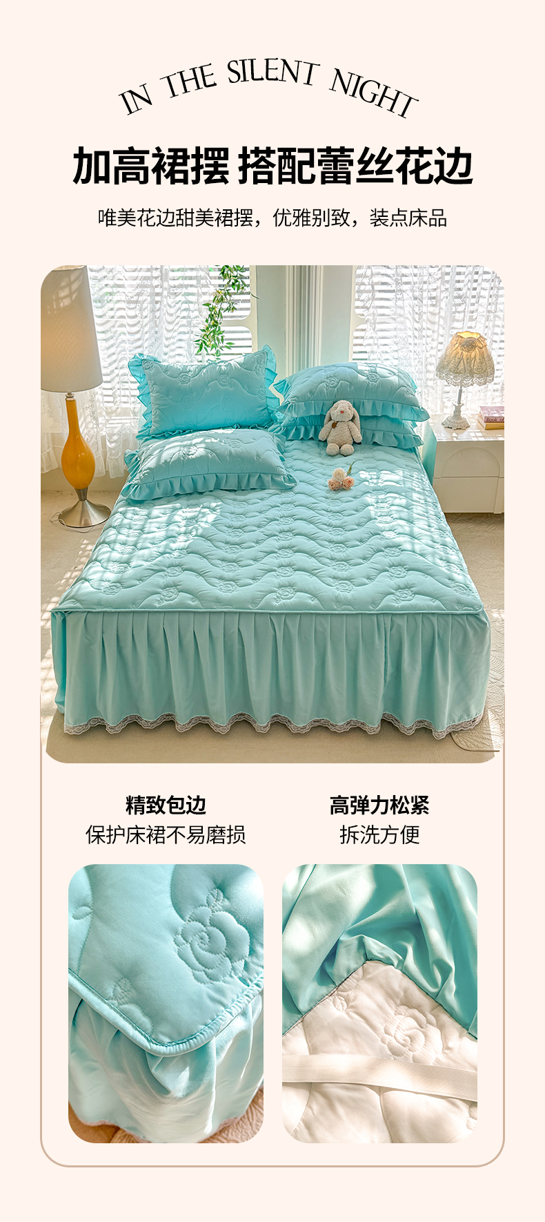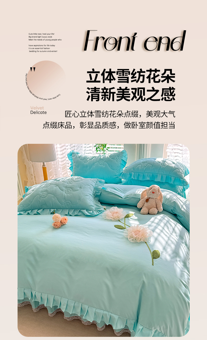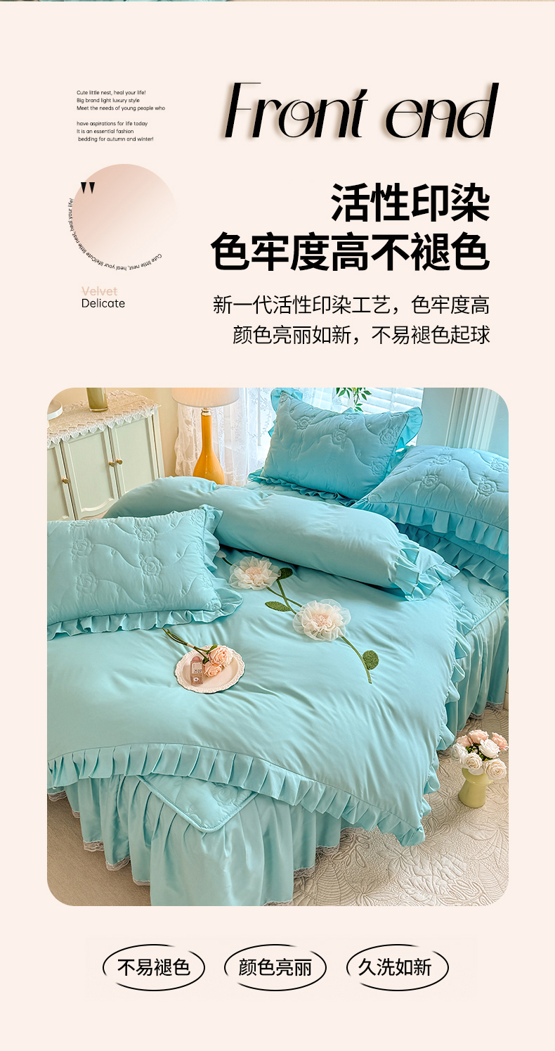 当前位置: 91家纺网 > 商品网购 > 床品套件 > 四件套 > 全棉普通四件套 > 芭比蔓家纺 2025新款夹棉床裙四件套-花海系列 花海系列-蓝色