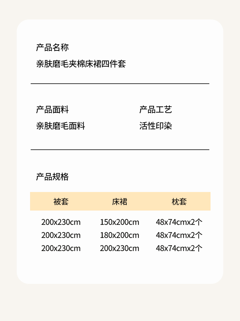 1.8m床裙款四件套 | ¥115.00 |