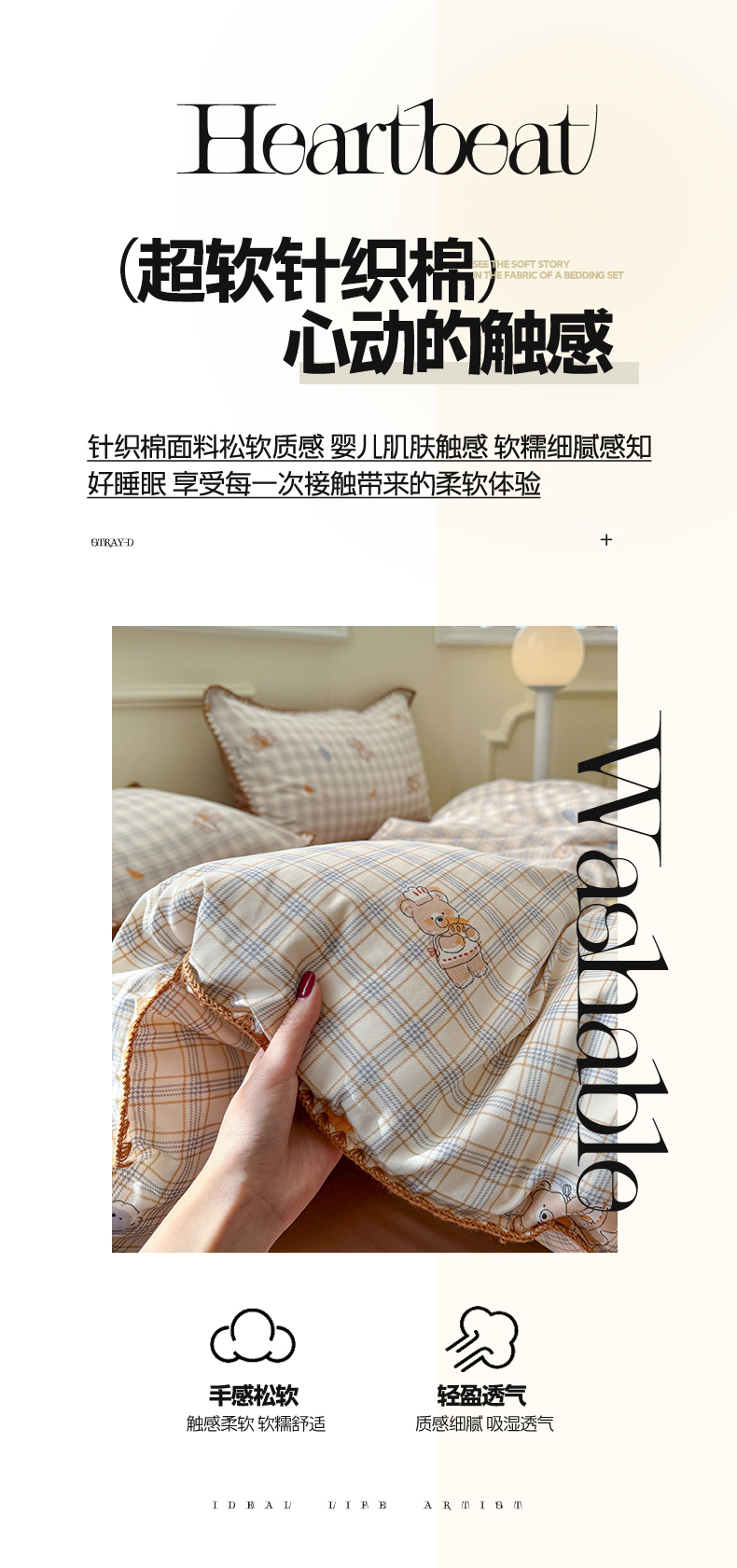 商品名称:韩都家居2025新款水洗双层纱针织棉三角针四件套(包含买家秀) 熊先生