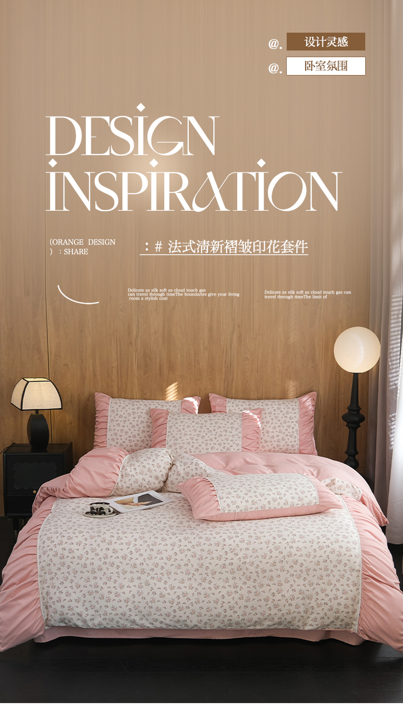 当前位置: 91家纺网 > 商品网购 > 床品套件 > 四件套 > 全棉普通四件套 > 布可家纺 2025新款A类法式清新褶皱印花四件套 普罗旺斯