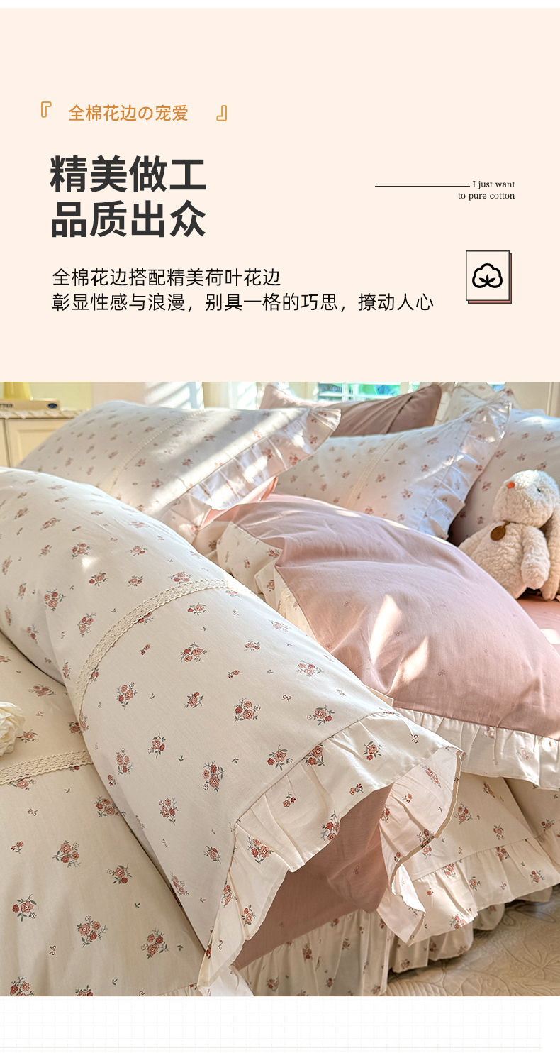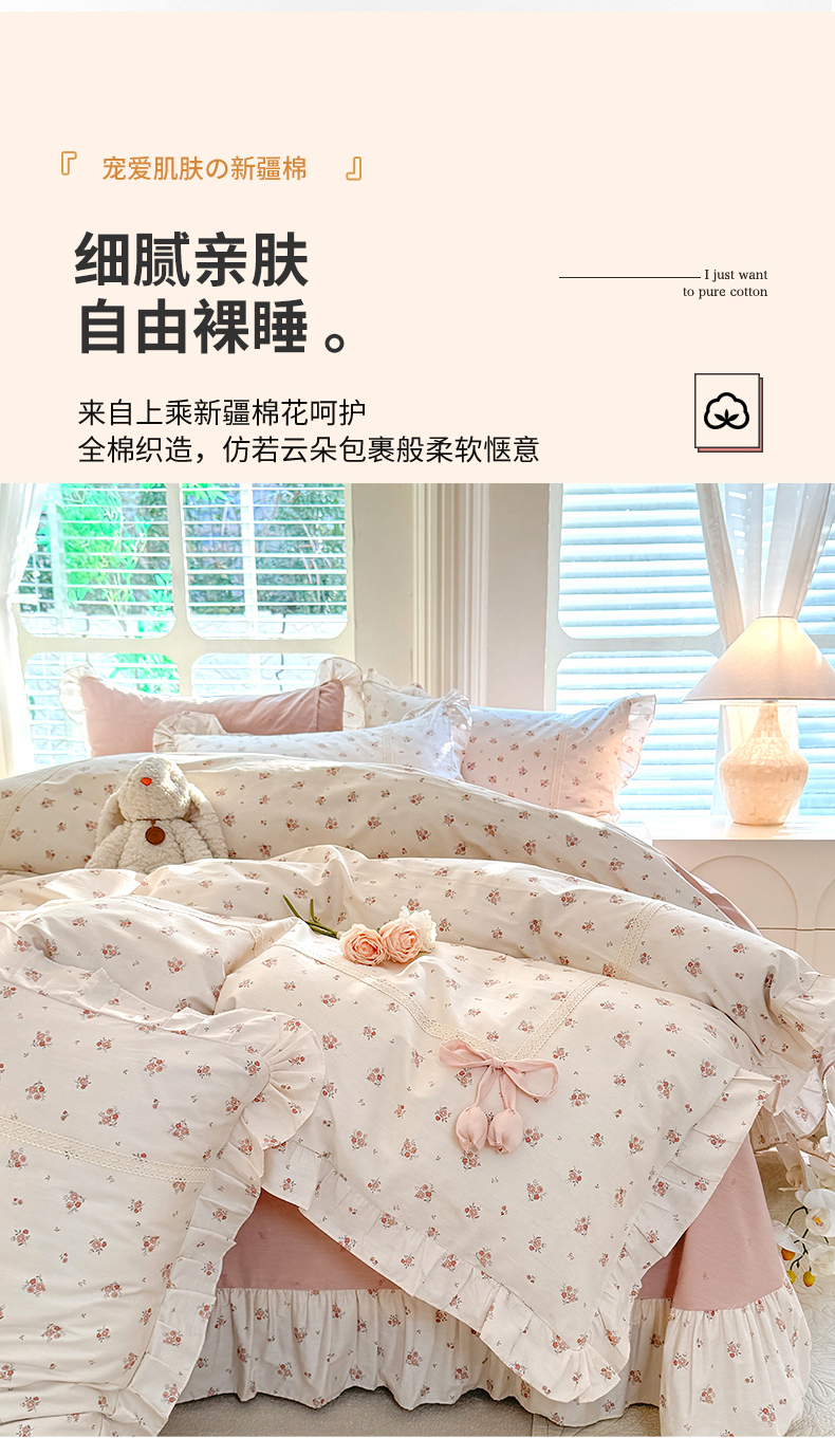 (总)艾唯希2025新款全棉小香风工艺四件套纯棉小花边碎花被套韩式公主风,初朵,春漾,漫丁蔷薇,觅秋,密玲花语,慕归十里,小青藤-米,小樱-咖,雅集,雅蔓花语,樱花,悠然雅居-粉