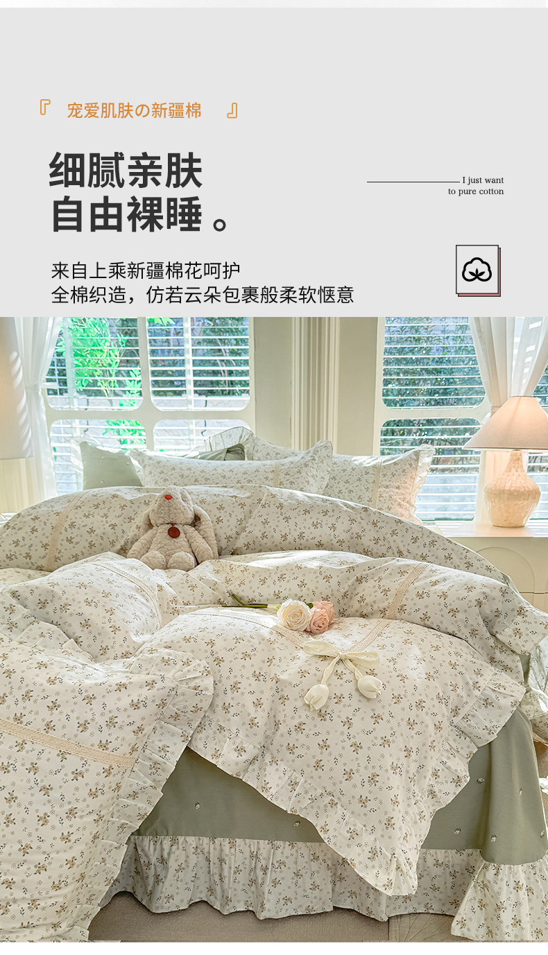 (总)艾唯希家纺 2025新款全棉双层花边四件套纯棉小碎花10个花型-花边系列,春意萌,恋之晴空,奶芙蓉-绿,奶芙蓉-粉,林间物语-绿,林间物语-紫,花冉,花艺漫漫,梳璃,雾里花