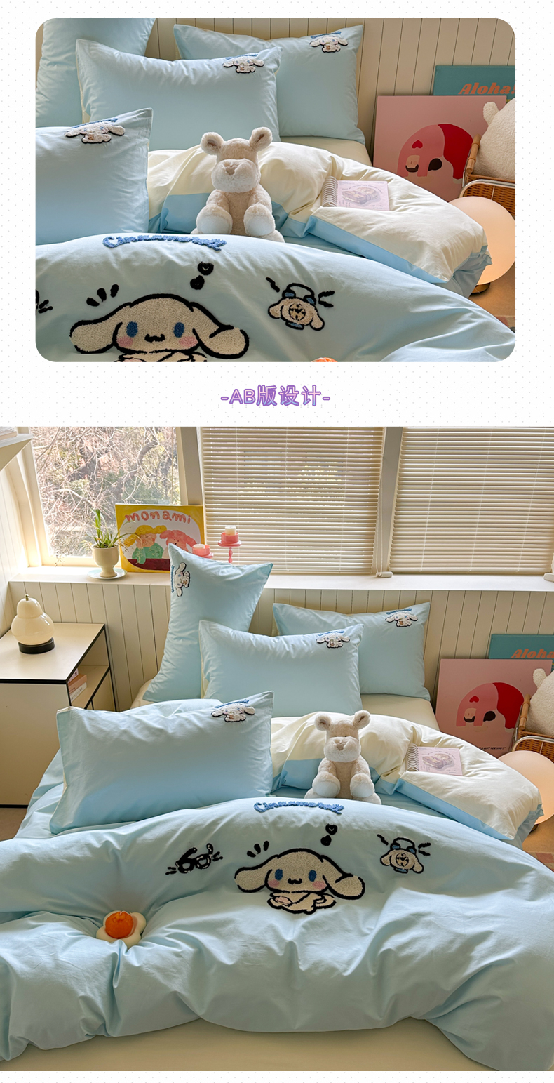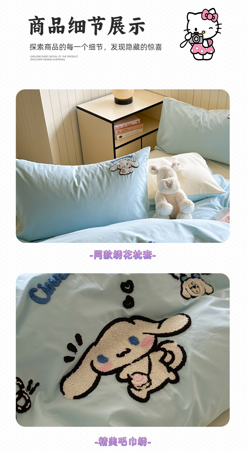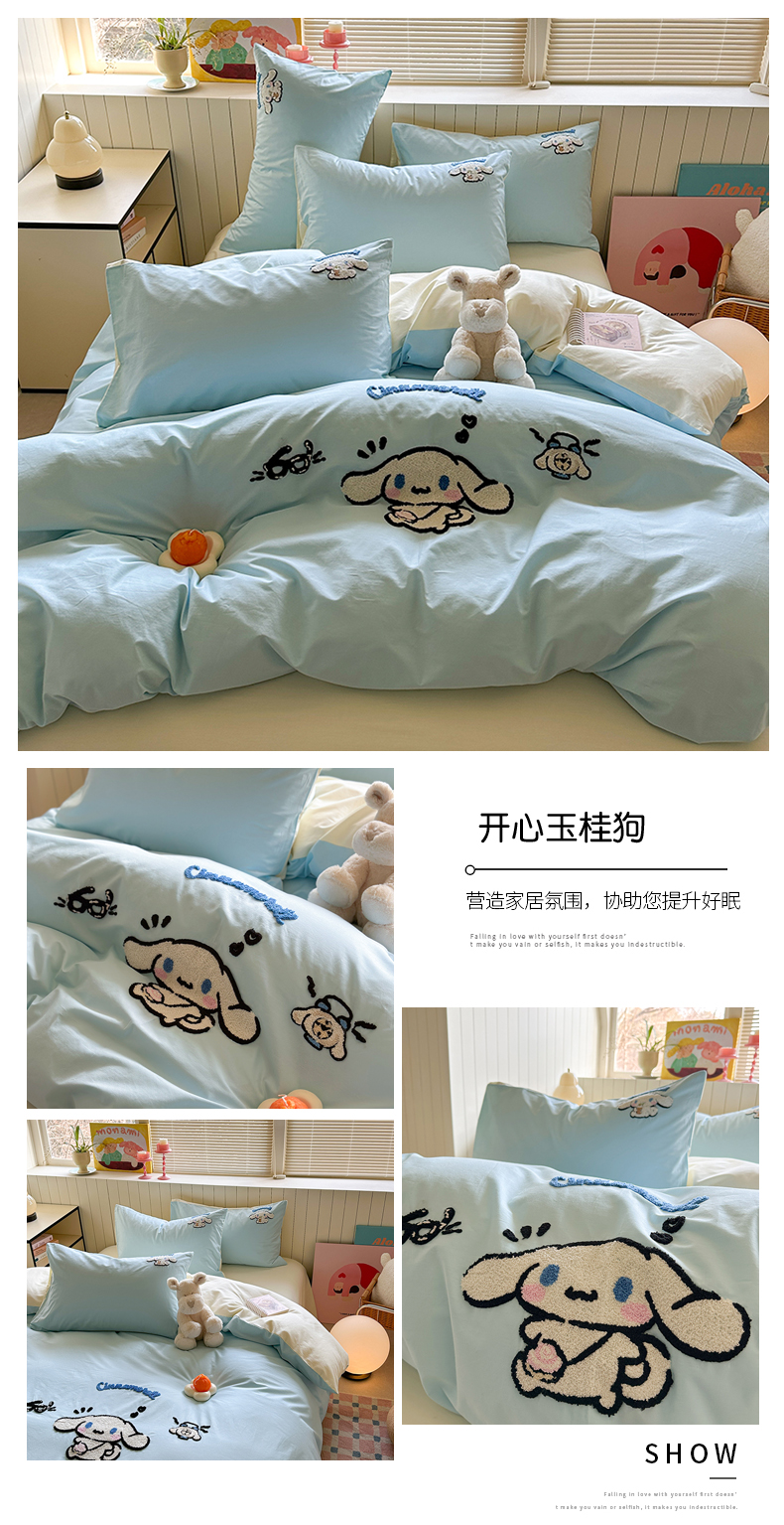 (总)金爱家 2025新款A类三丽鸥正版授权云柔水洗棉兔毛贴布绣刺绣软糯系列四件套,云柔水洗棉-贴布绣粉格KT,云柔水洗棉-贴布绣蓝格布丁狗,云柔水洗棉-贴布绣蓝格KT,云柔水洗棉-贴布绣美乐蒂,云柔水洗棉-贴布绣萌萌布丁狗,云柔水洗棉-贴布绣你好大耳狗,云柔水洗棉-贴布绣紫格库洛米