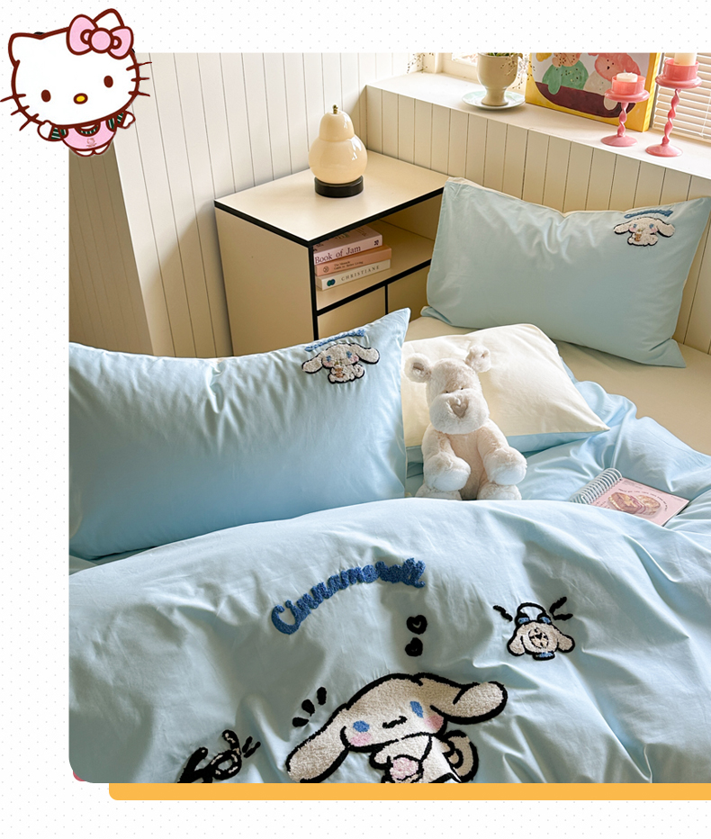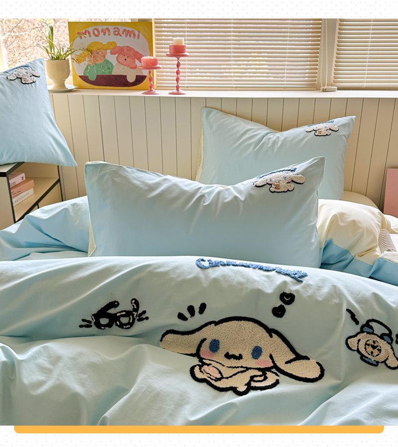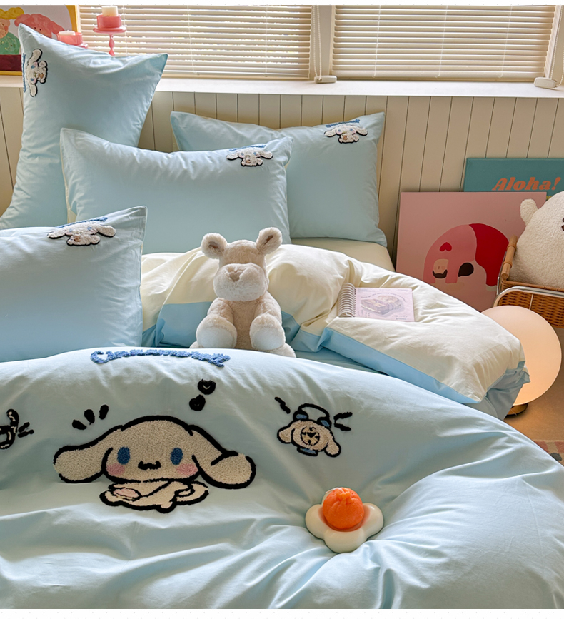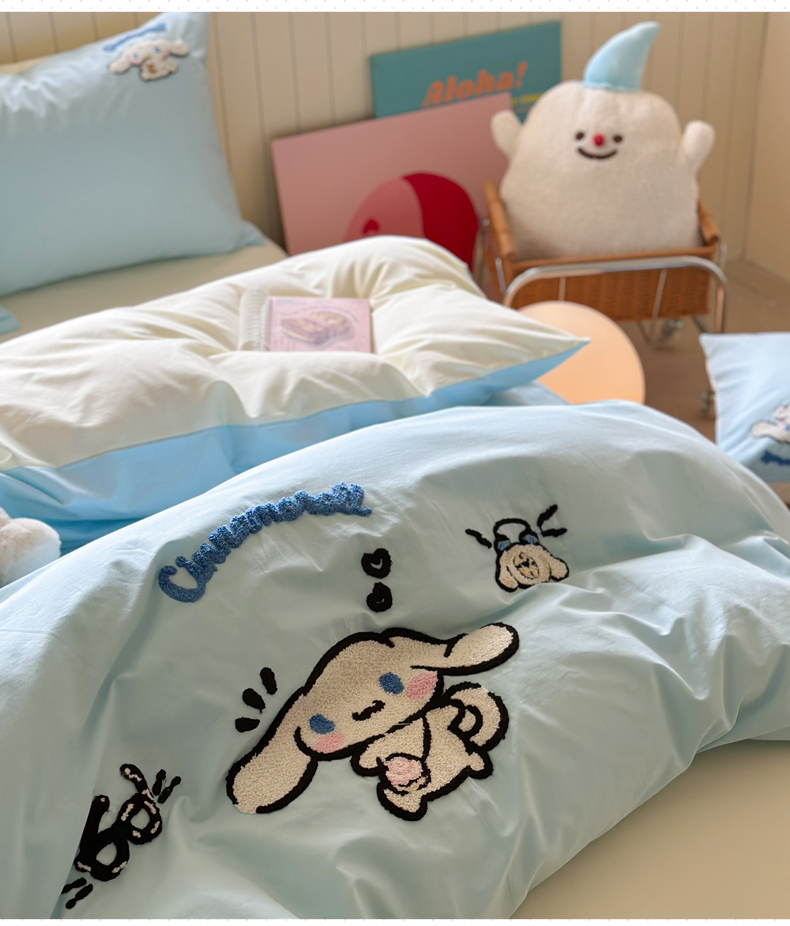 (总)金爱家 2025新款A类三丽鸥正版授权云柔水洗棉兔毛贴布绣刺绣软糯系列四件套,云柔水洗棉-贴布绣粉格KT,云柔水洗棉-贴布绣蓝格布丁狗,云柔水洗棉-贴布绣蓝格KT,云柔水洗棉-贴布绣美乐蒂,云柔水洗棉-贴布绣萌萌布丁狗,云柔水洗棉-贴布绣你好大耳狗,云柔水洗棉-贴布绣紫格库洛米