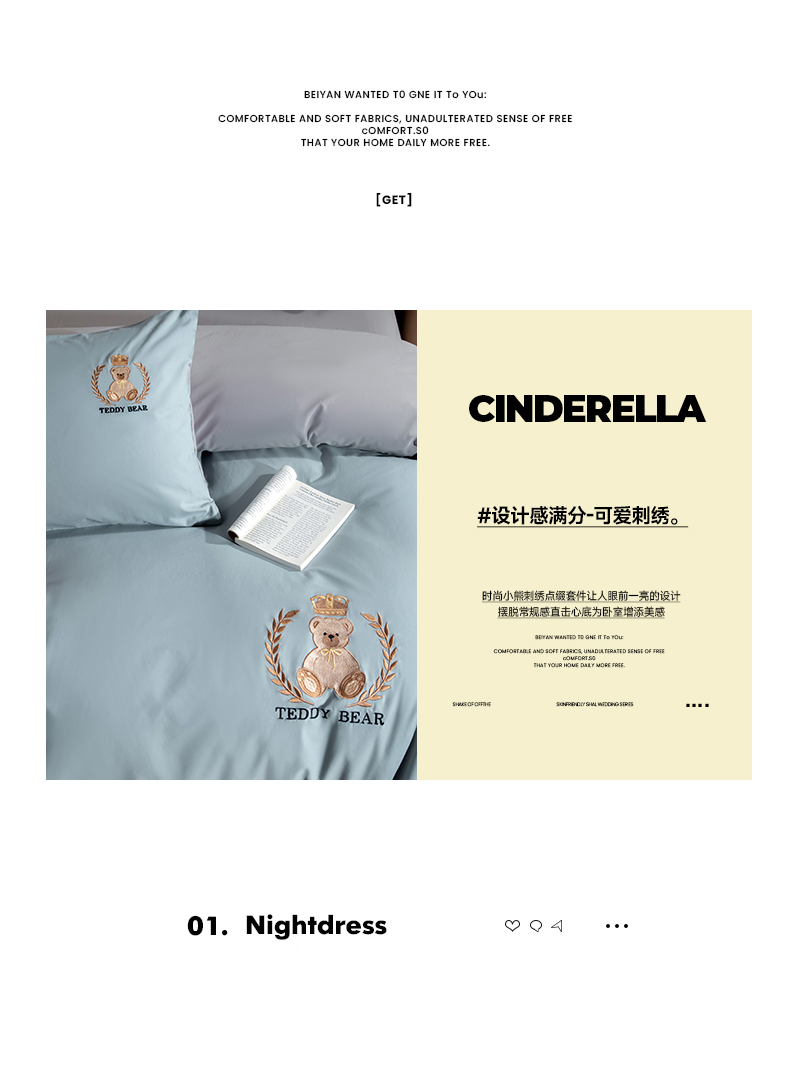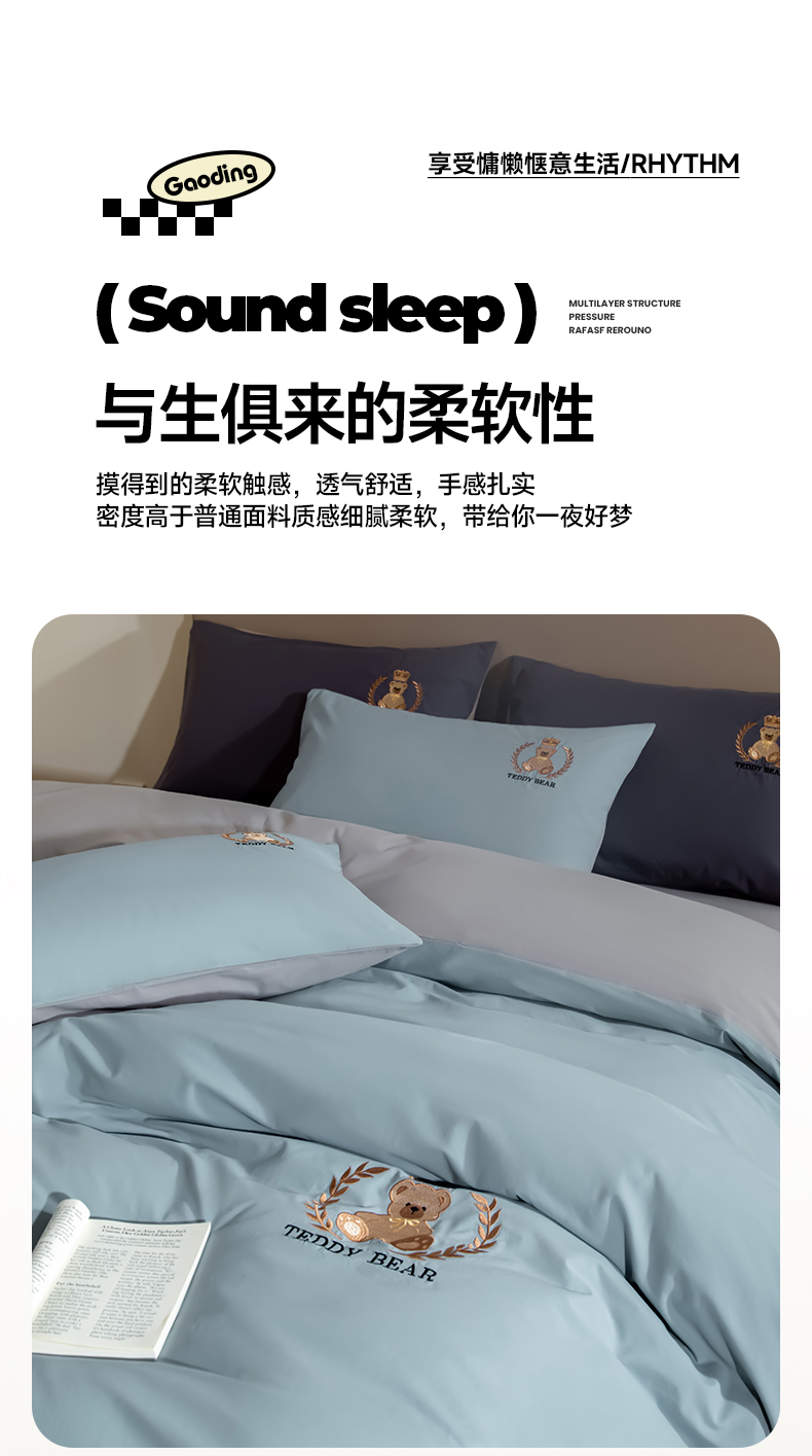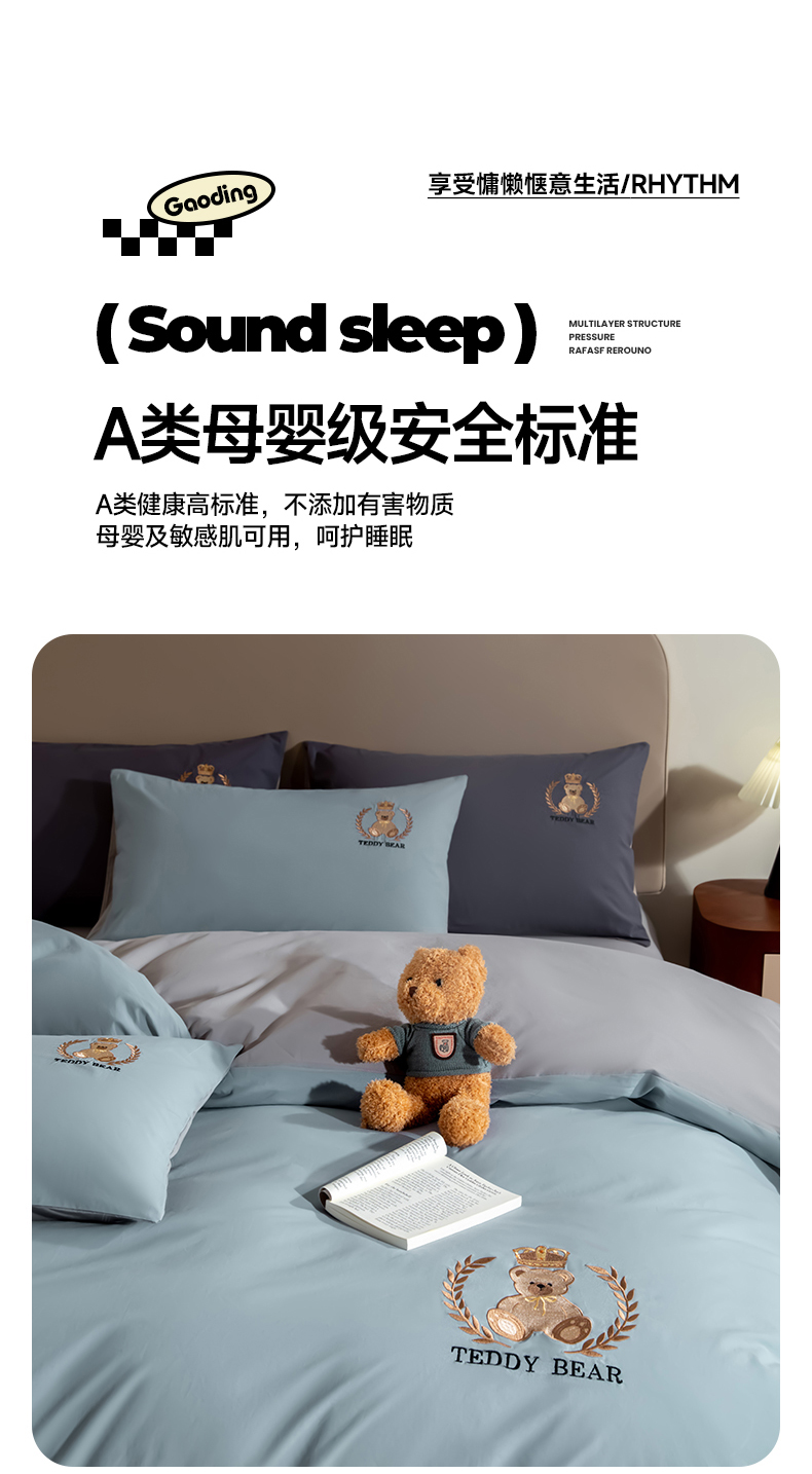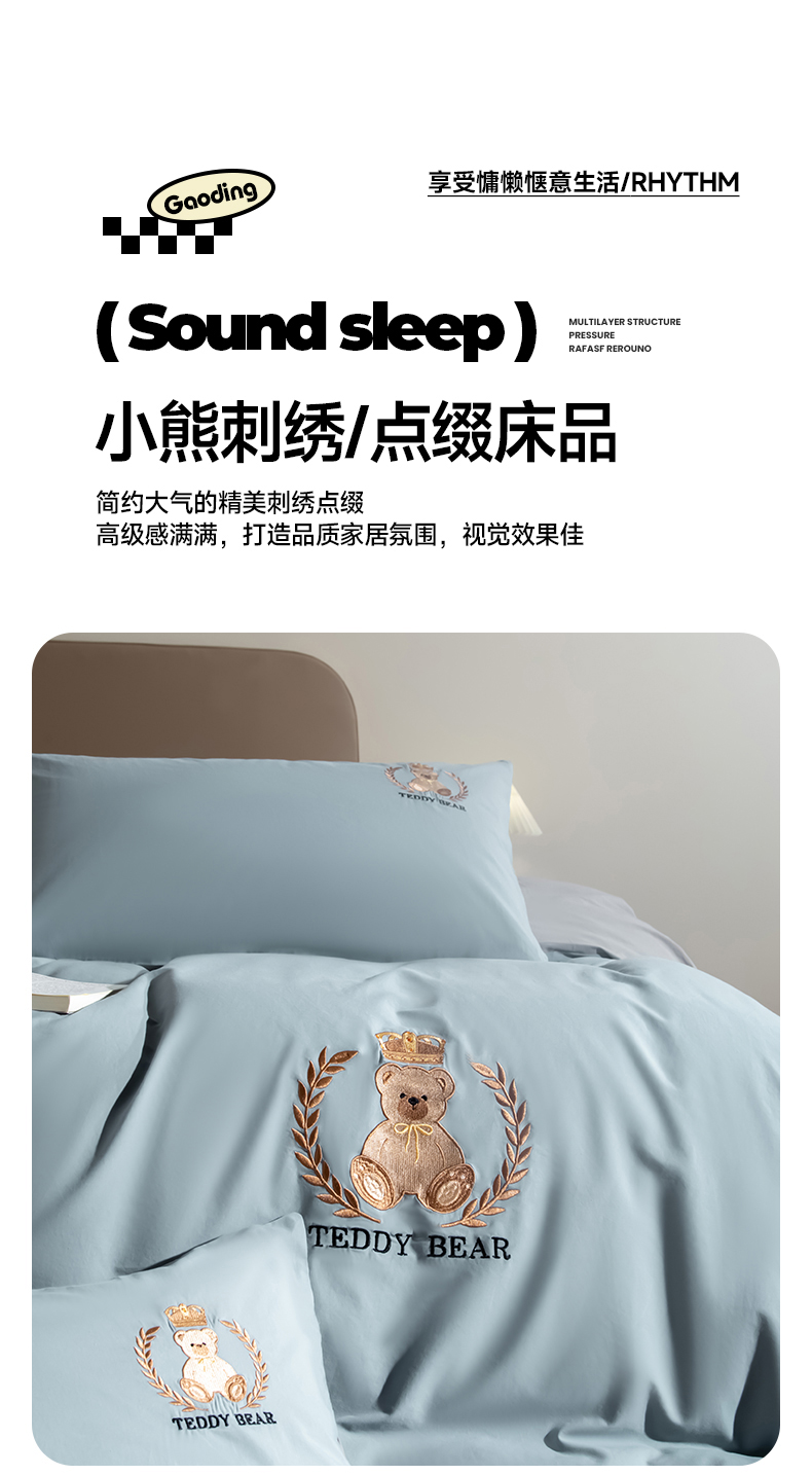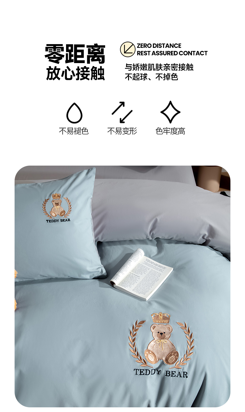 商品名称:澳梵家居2025新款A类全棉水洗棉刺绣四件套-泰迪小熊 泰迪熊-雾蓝