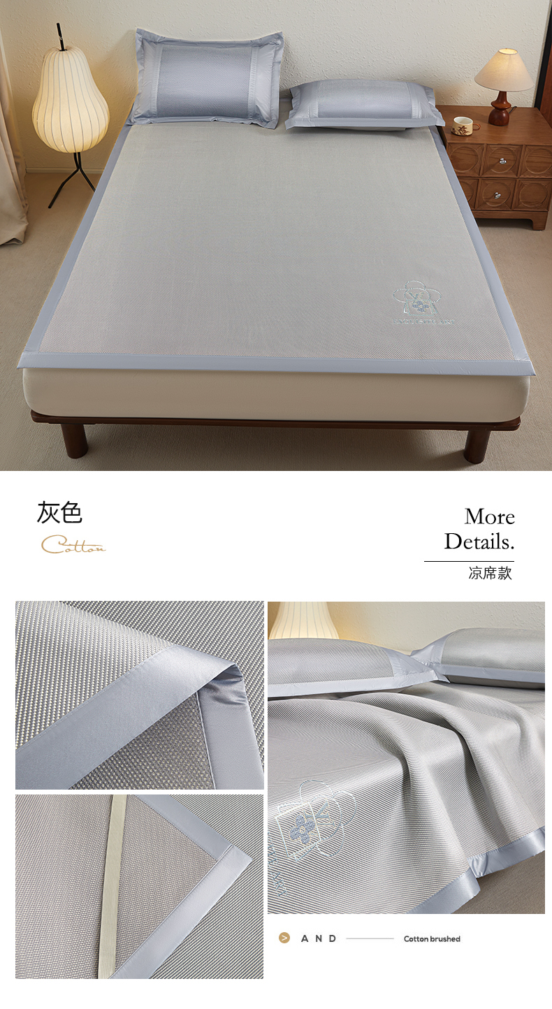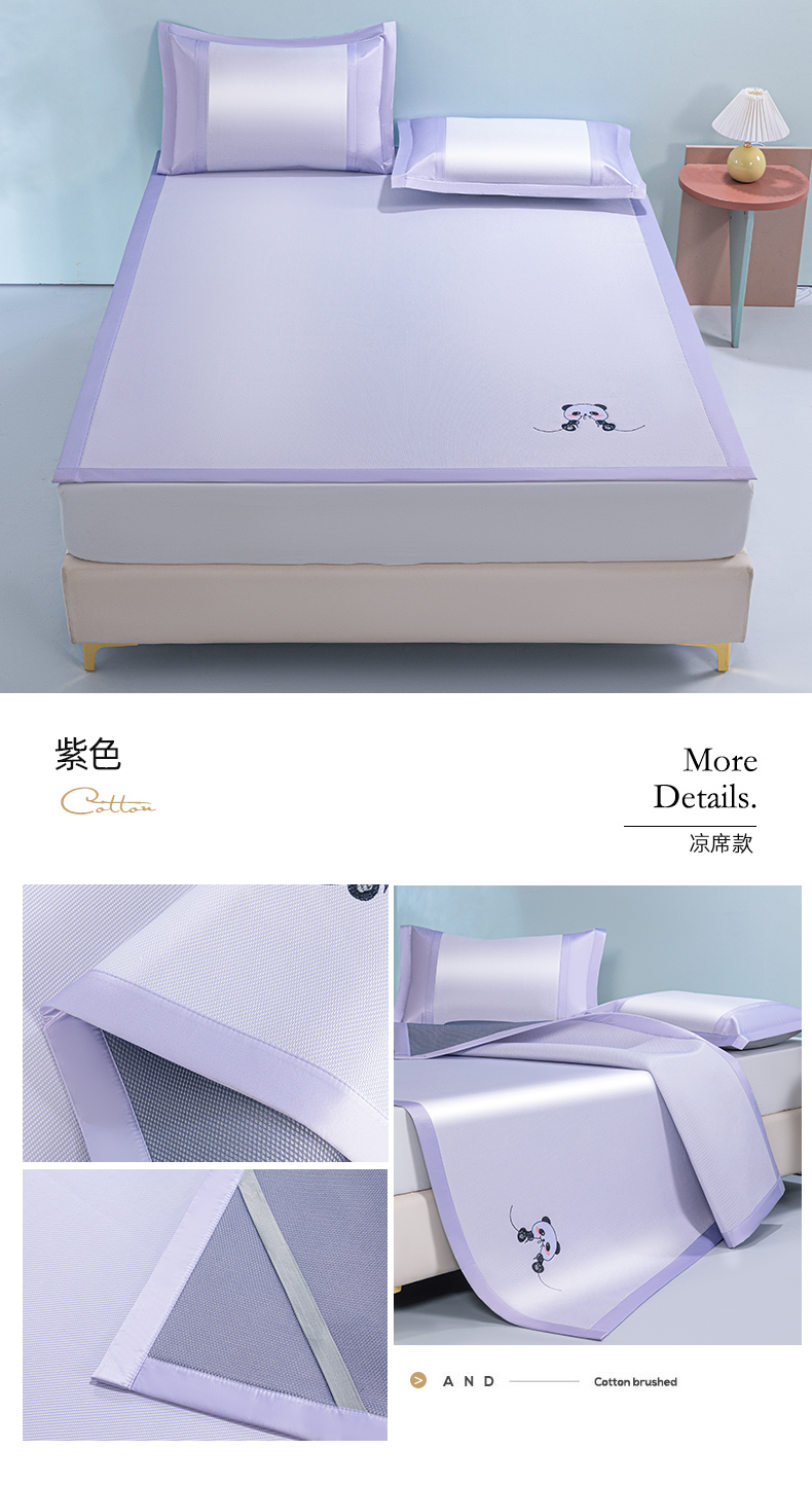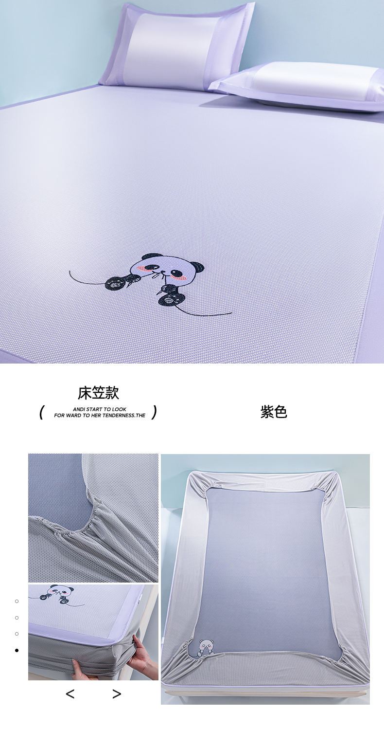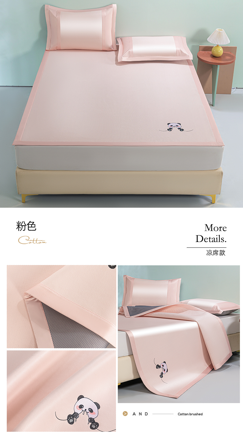 (总)席佬大 2025新款PE凉感冰藤轻奢小花熊猫刺绣凉感床席床笠款凉席