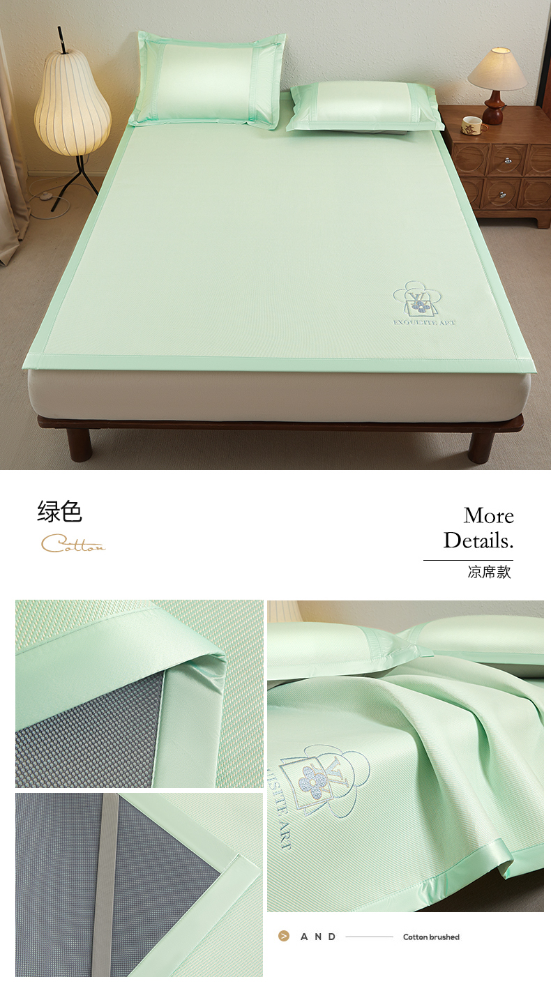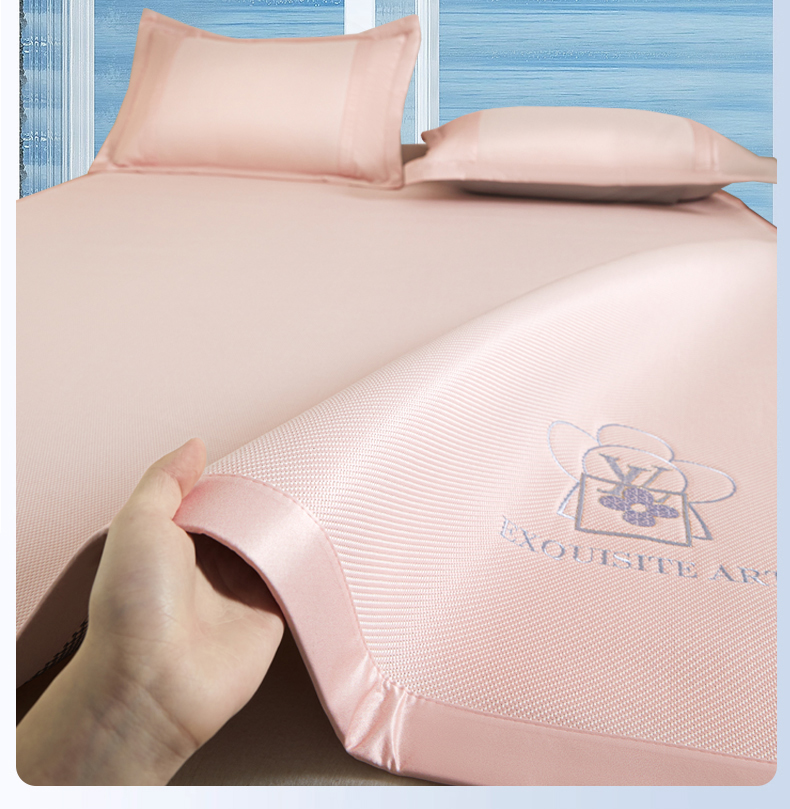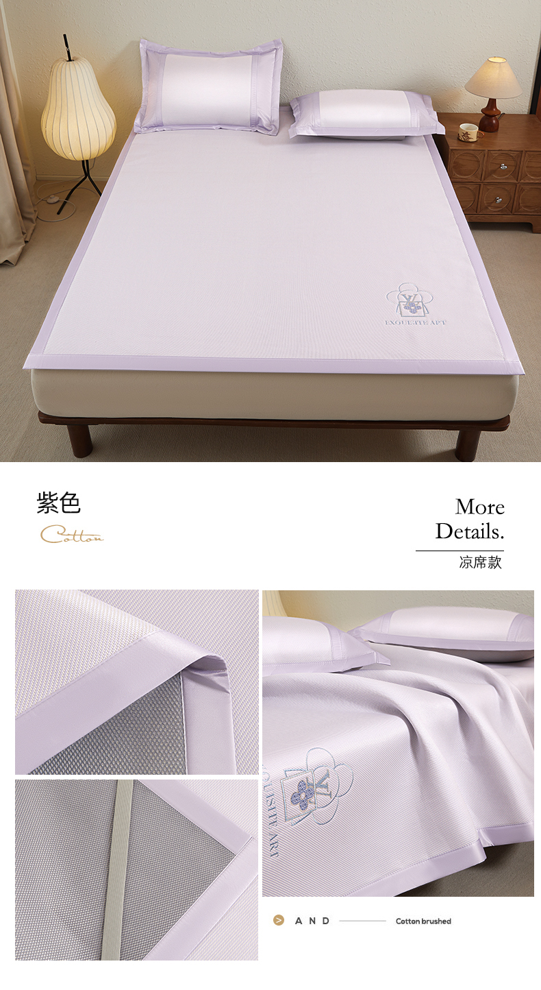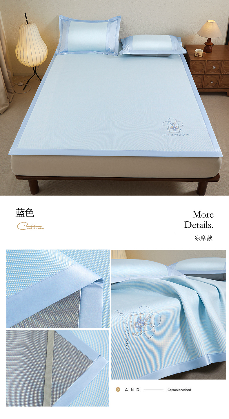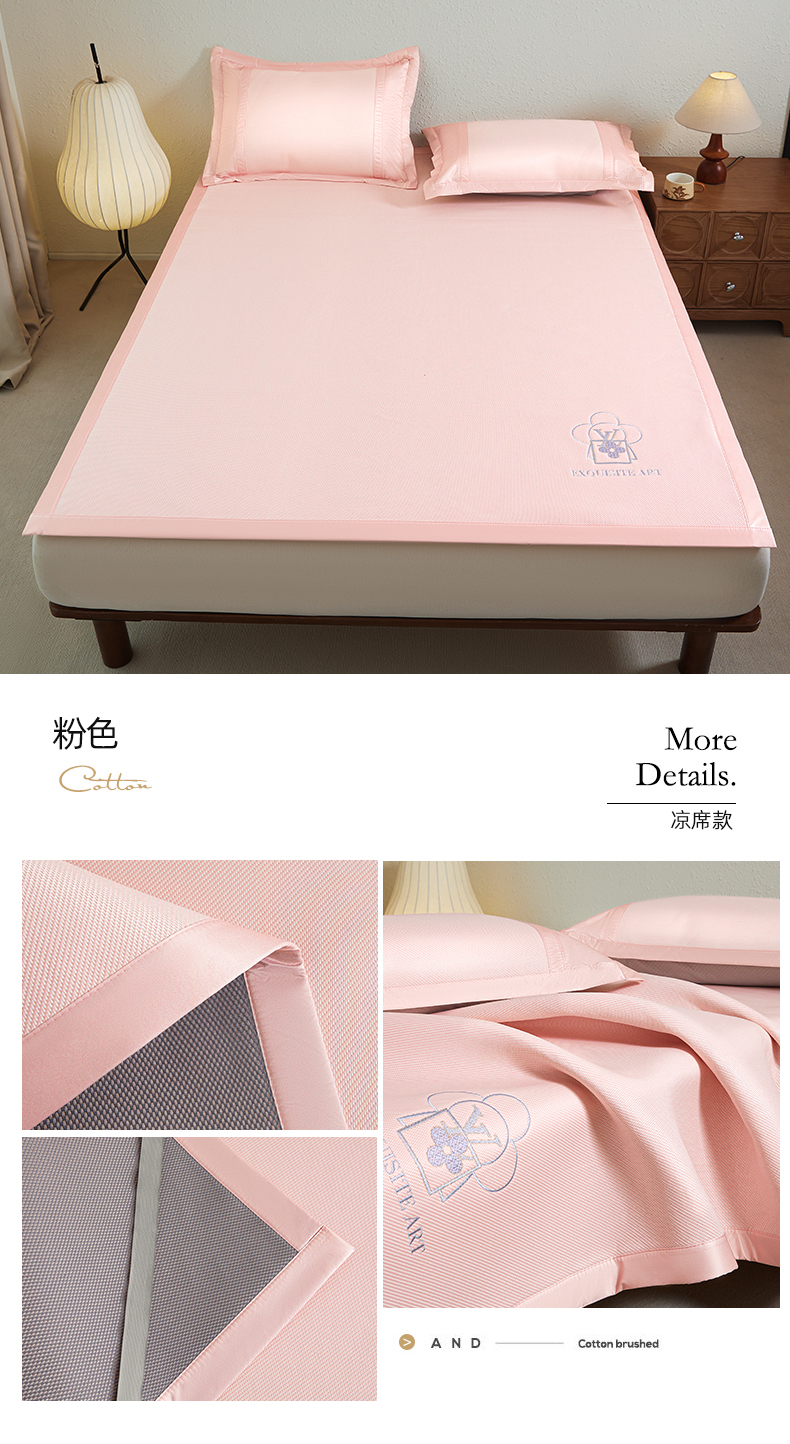 (总)席佬大 2025新款PE凉感冰藤轻奢小花熊猫刺绣凉感床席床笠款凉席