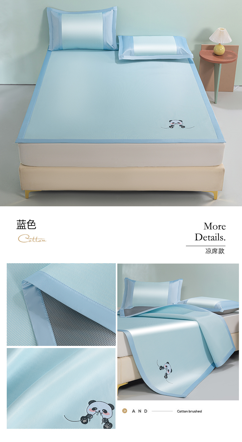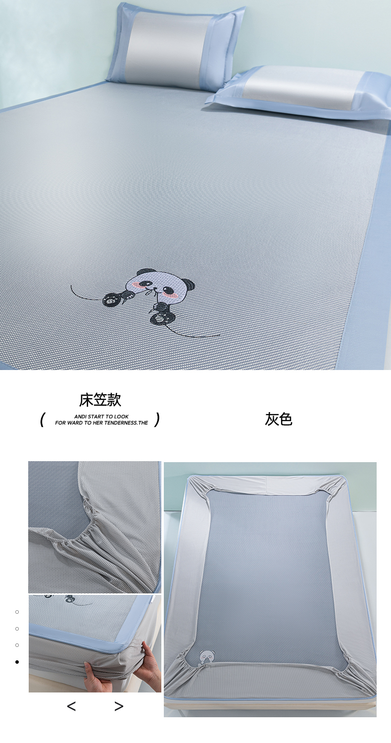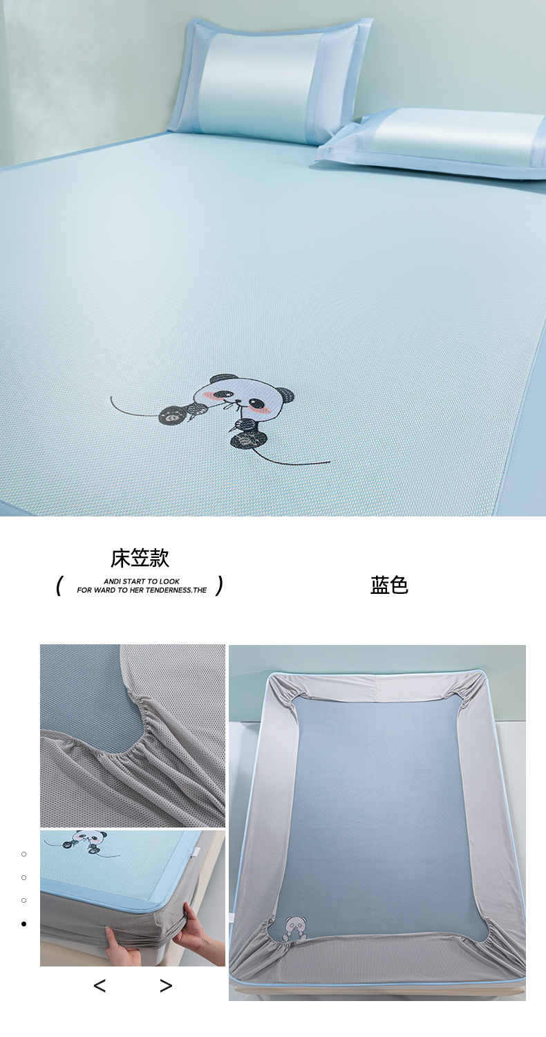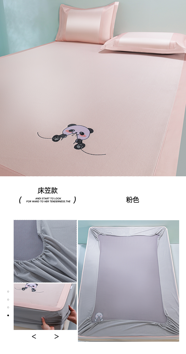 商品名称:(总)席佬大 2025新款PE凉感冰藤轻奢小花熊猫刺绣凉感床席床笠款凉席