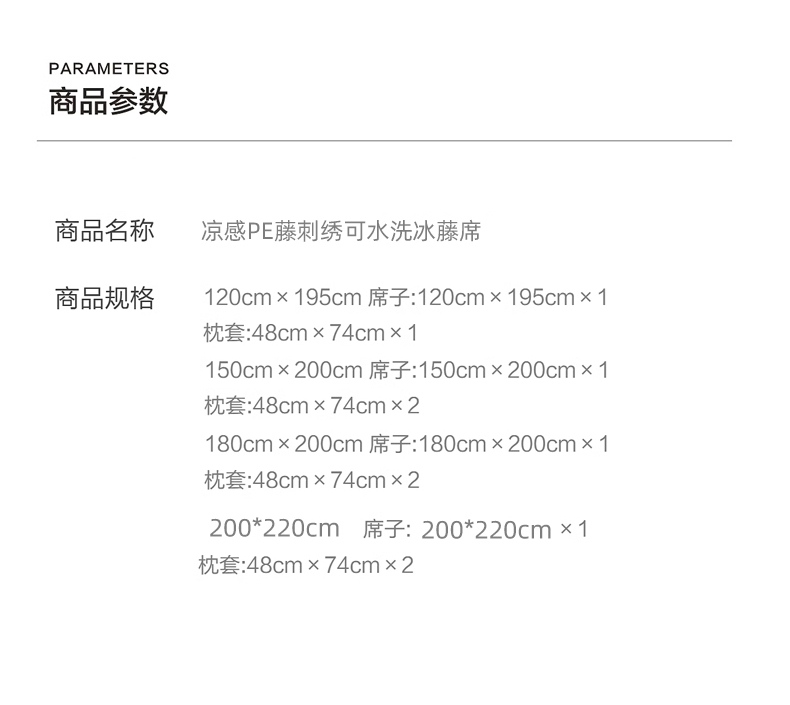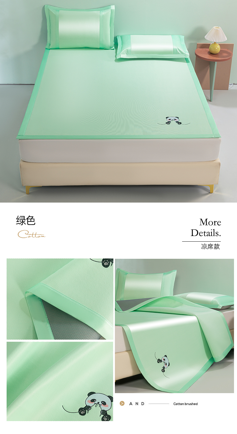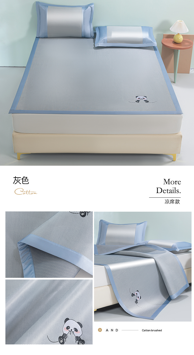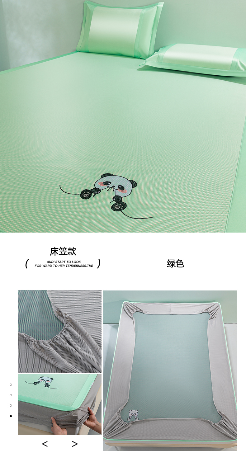 商品名称:(总)席佬大 2025新款PE凉感冰藤轻奢小花熊猫刺绣凉感床席床笠款凉席