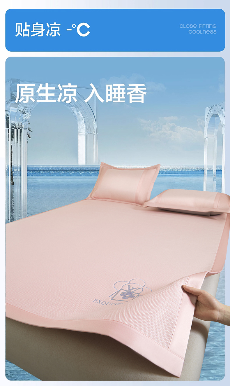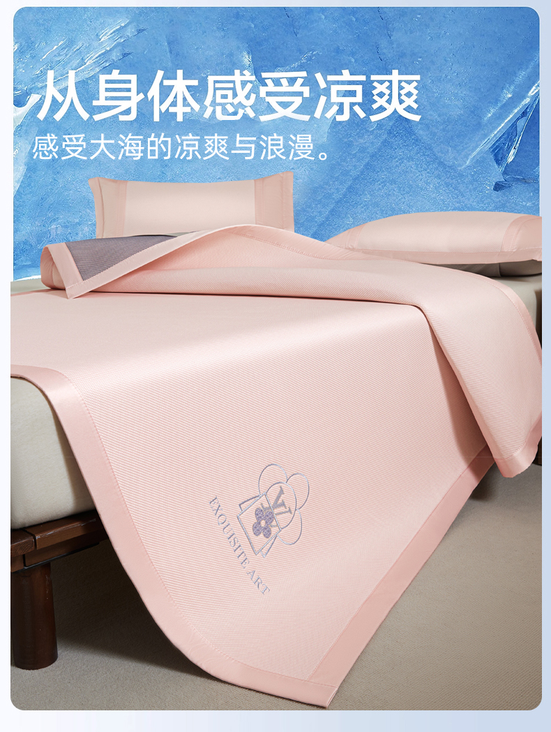 (总)席佬大2025新款淳朴风华夫格绣花冰感软席,初心-粉,初心-咖,初心-蓝,初心-绿