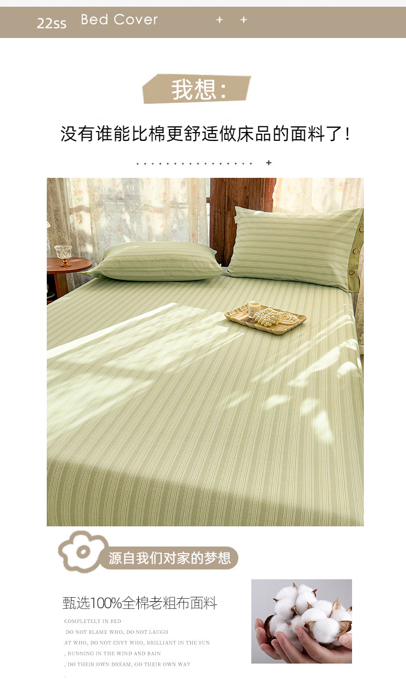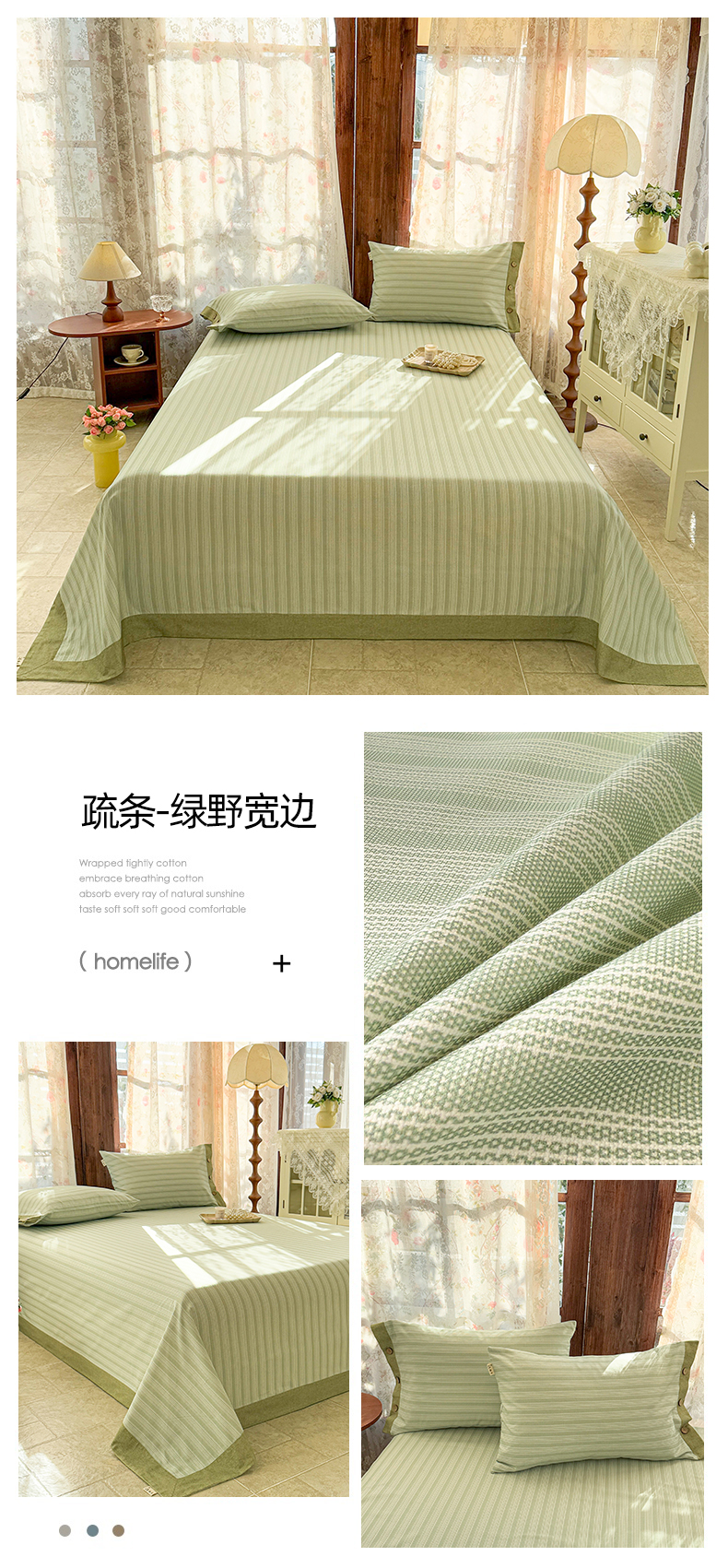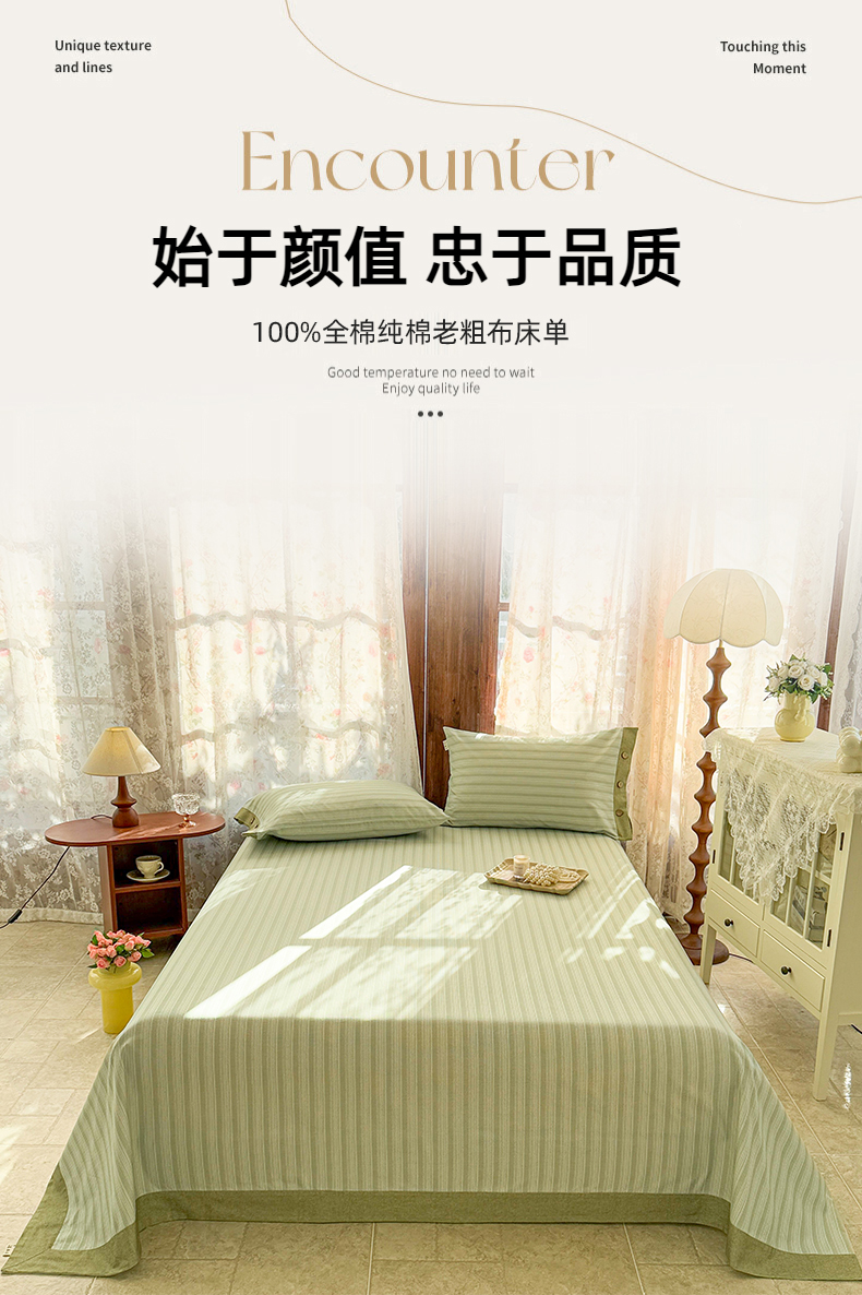 • 91家纺网 家纺一手货源 找家纺 简宜家居 2025新款宽边纯棉全棉老粗布床单 疏条-绿野宽边
