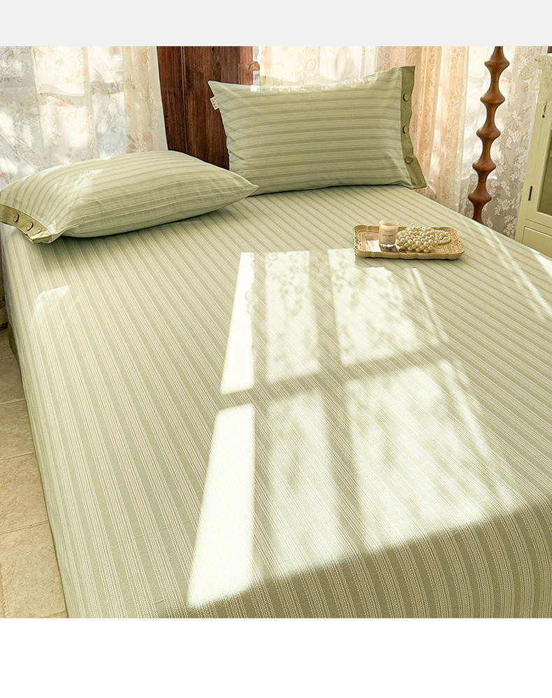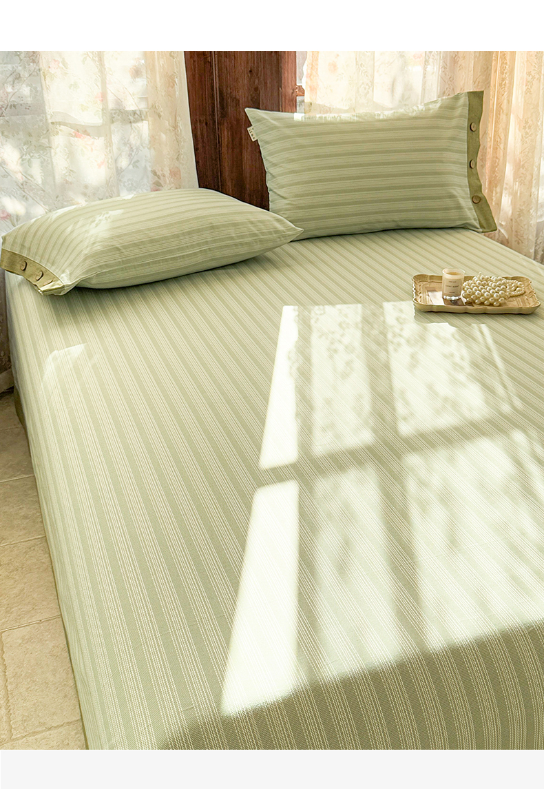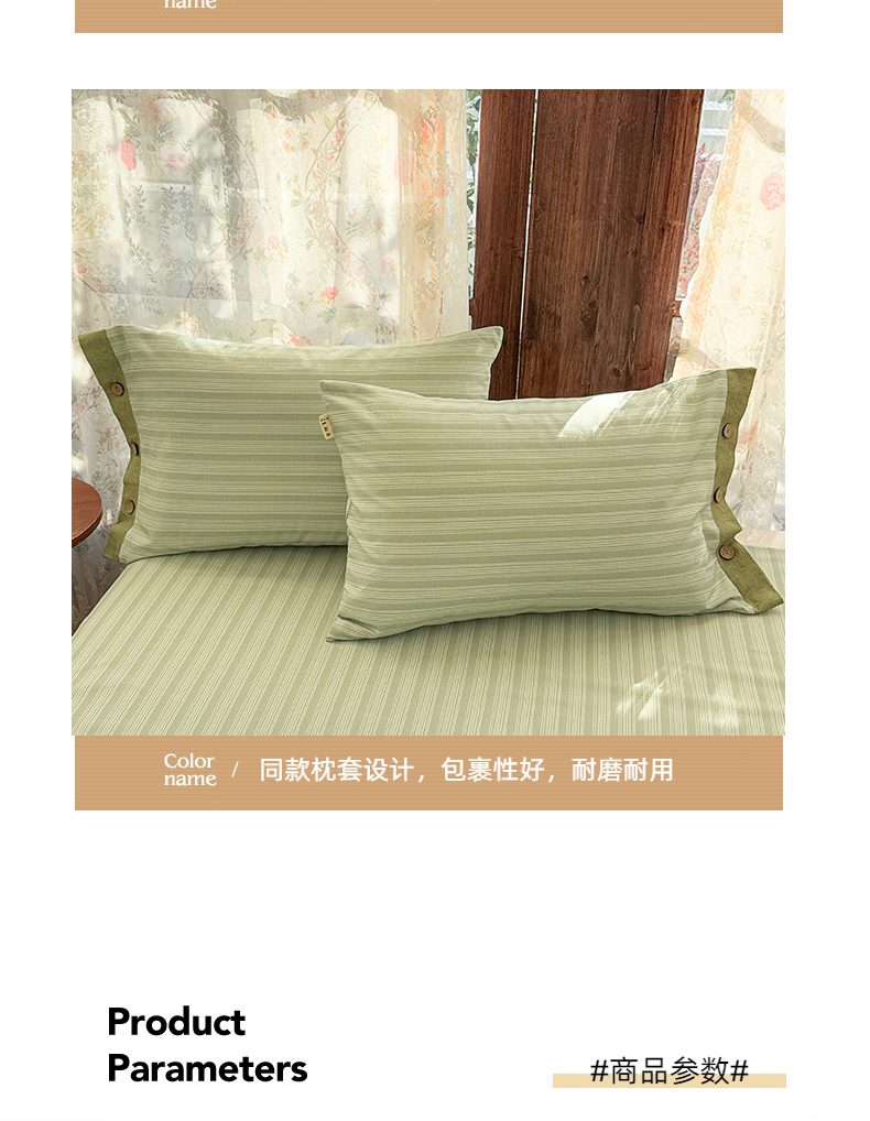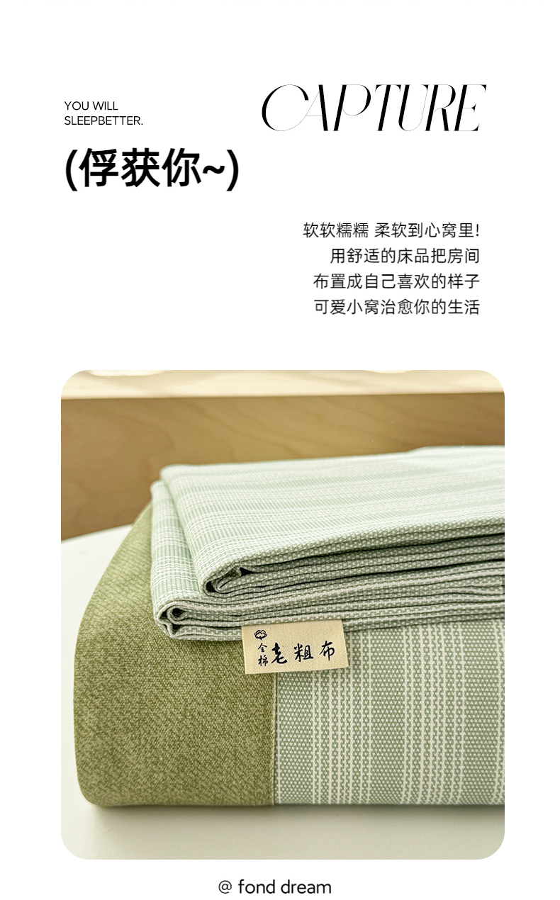 • 91家纺网 家纺一手货源 找家纺 简宜家居 2025新款宽边纯棉全棉老粗布床单 疏条-绿野宽边