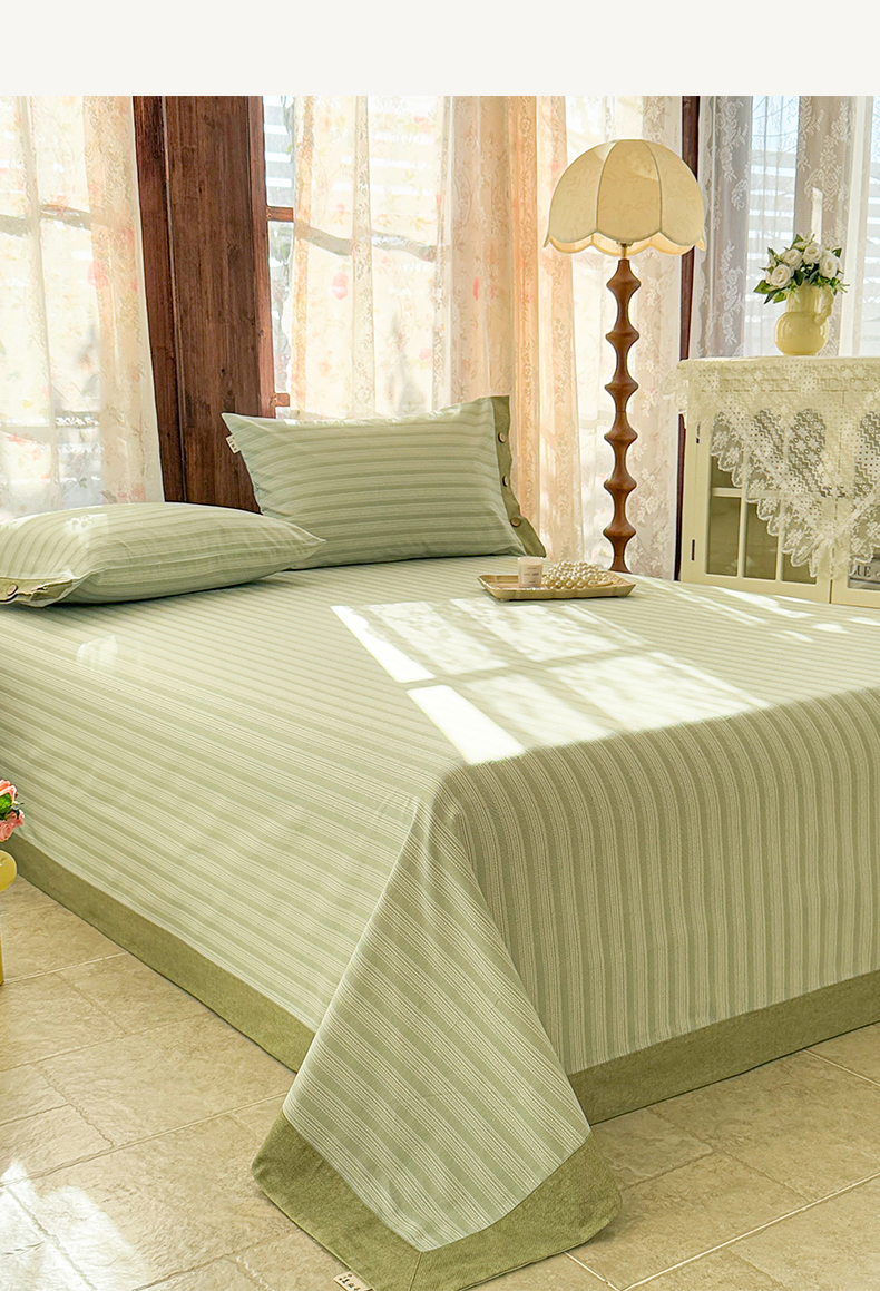 简宜家居 2025新款宽边纯棉全棉老粗布床单 疏条-绿野宽边