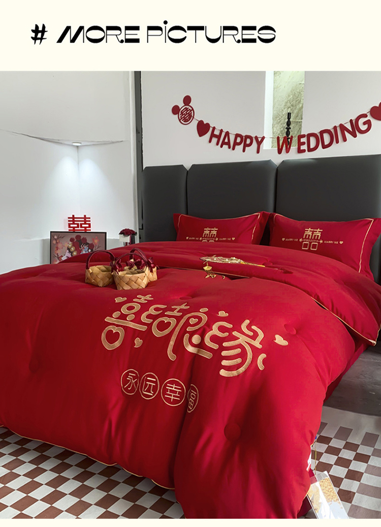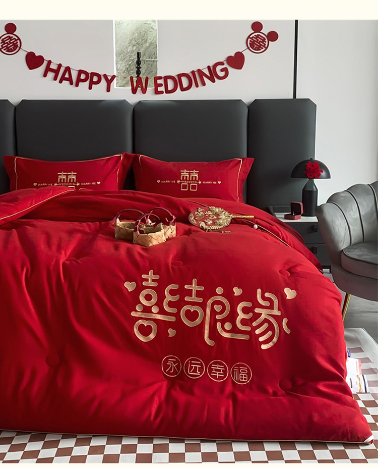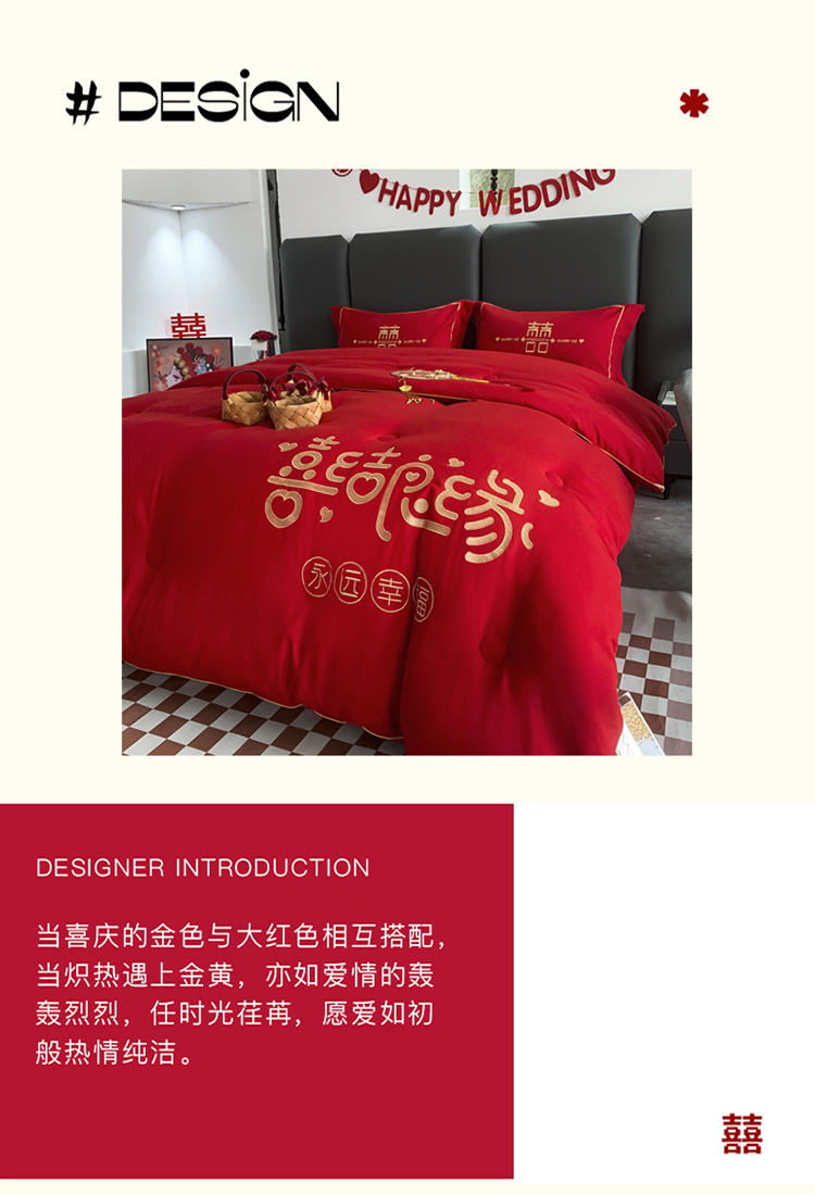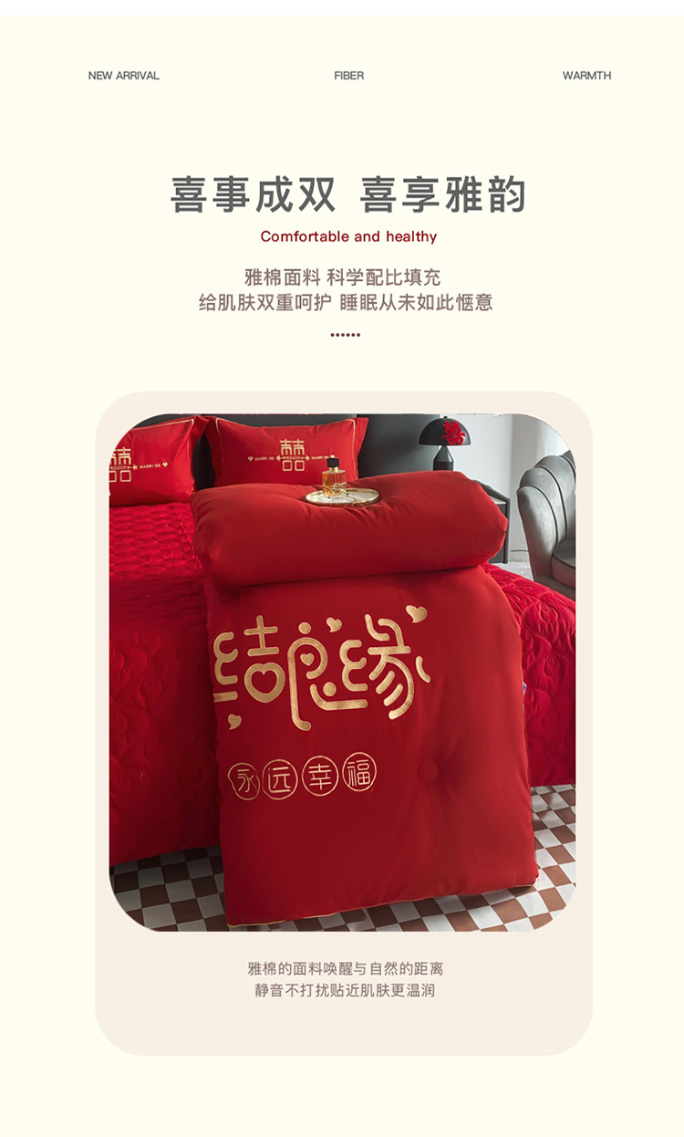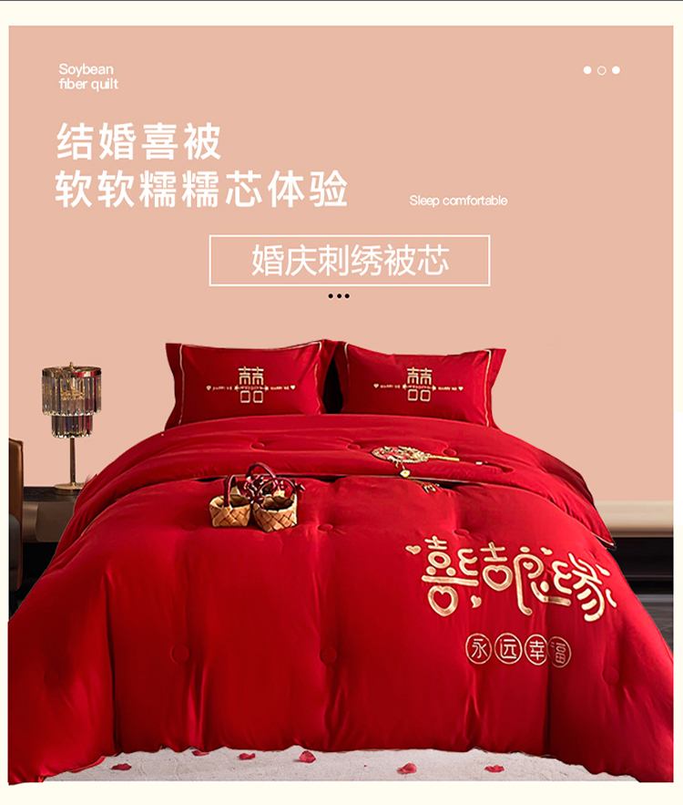 商品名称:甜咪咪婚庆 2025 新款居家婚庆刺绣结婚 春秋冬婚庆喜被 喜结良缘