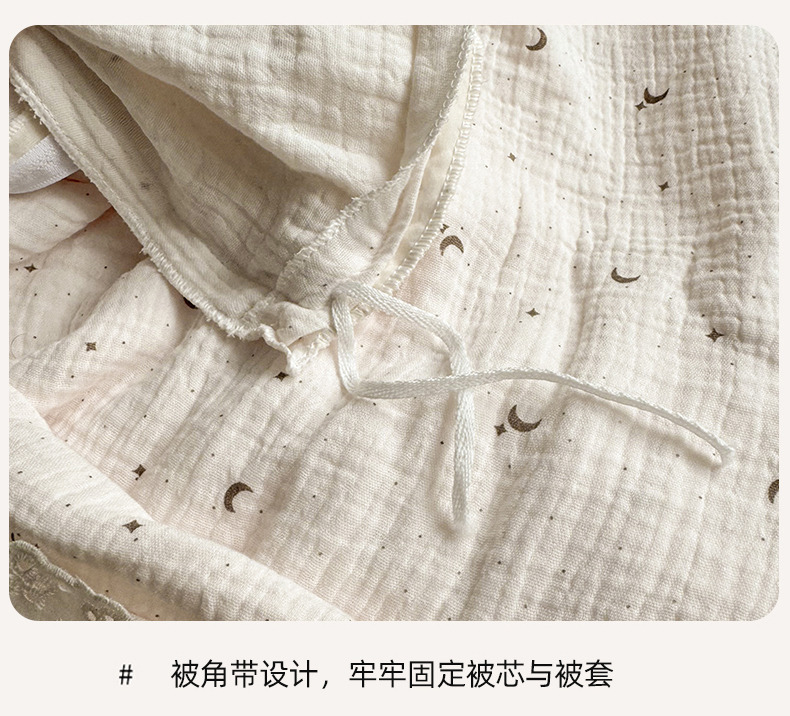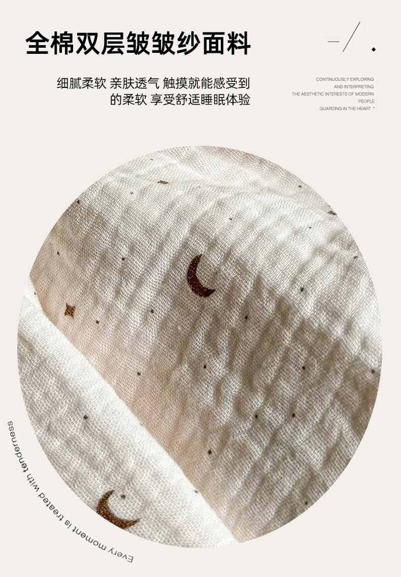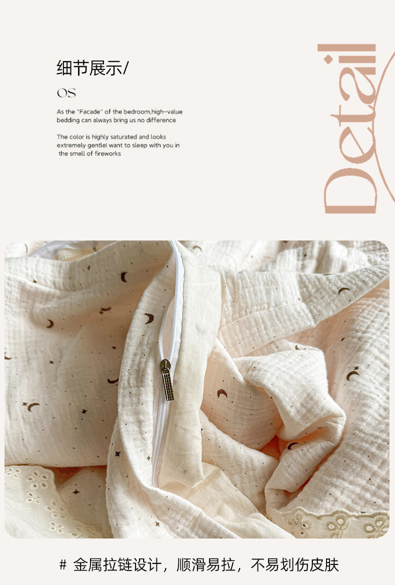 商品名称:九沐良品 2025新款全棉双层皱皱沙印花花边款四件套 星月