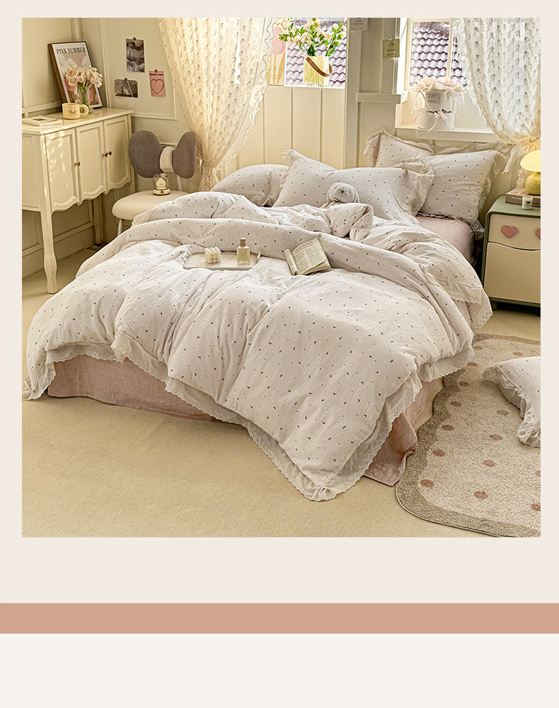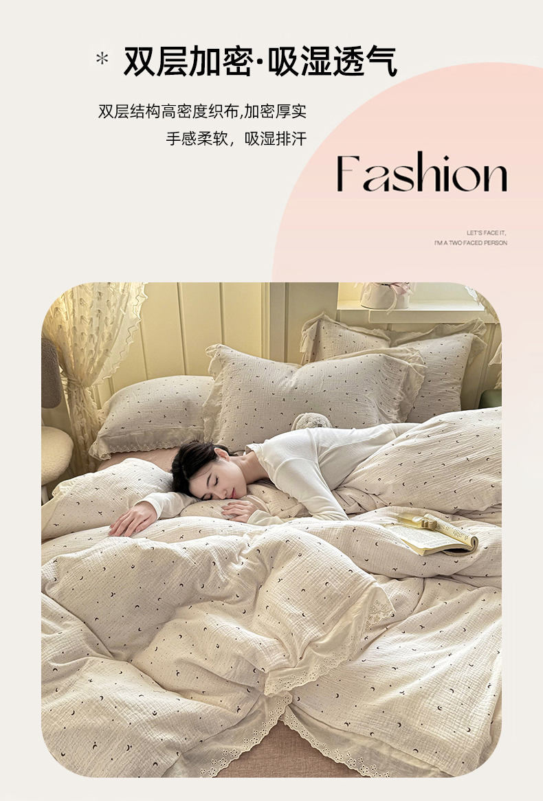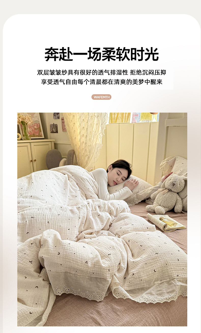 九沐良品 2025新款全棉双层皱皱沙印花花边款四件套 星月