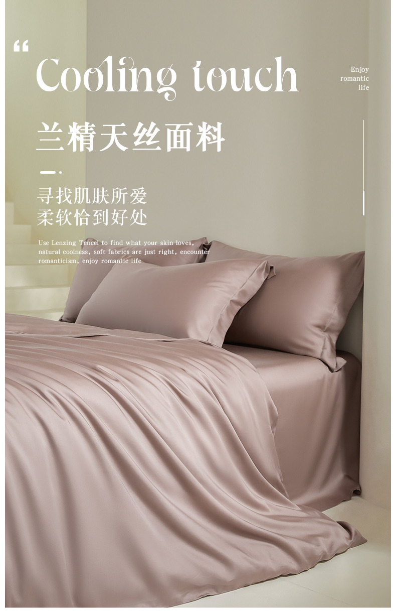 商品名称:618家纺 2025新款60S100支兰精天丝单品-单被套 天丝豆沙紫