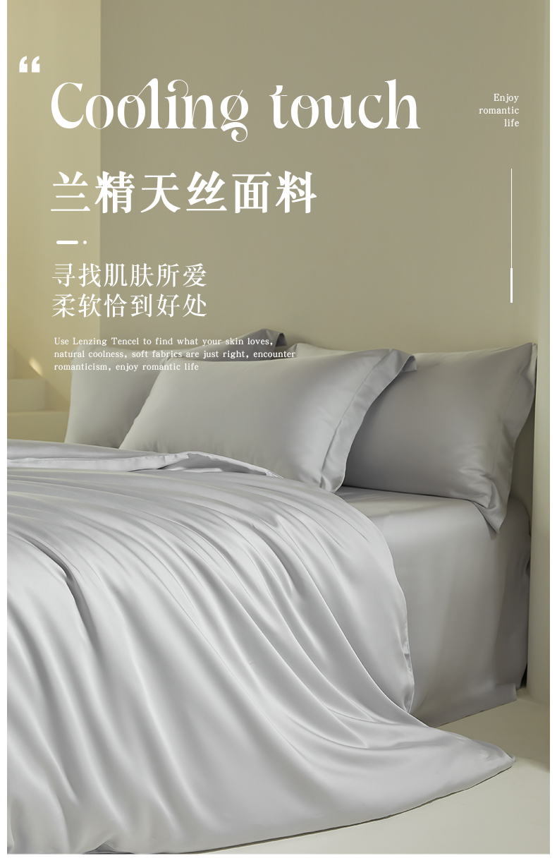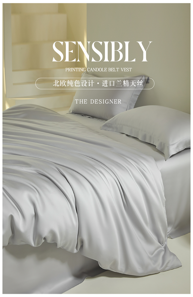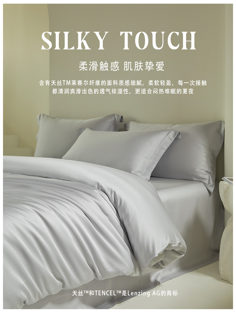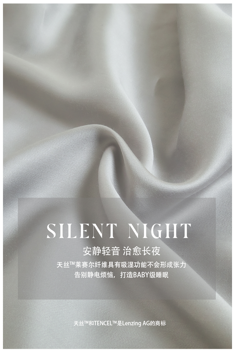 商品名称:618家纺 2025新款60S100支兰精天丝单品-单被套 天丝银河灰