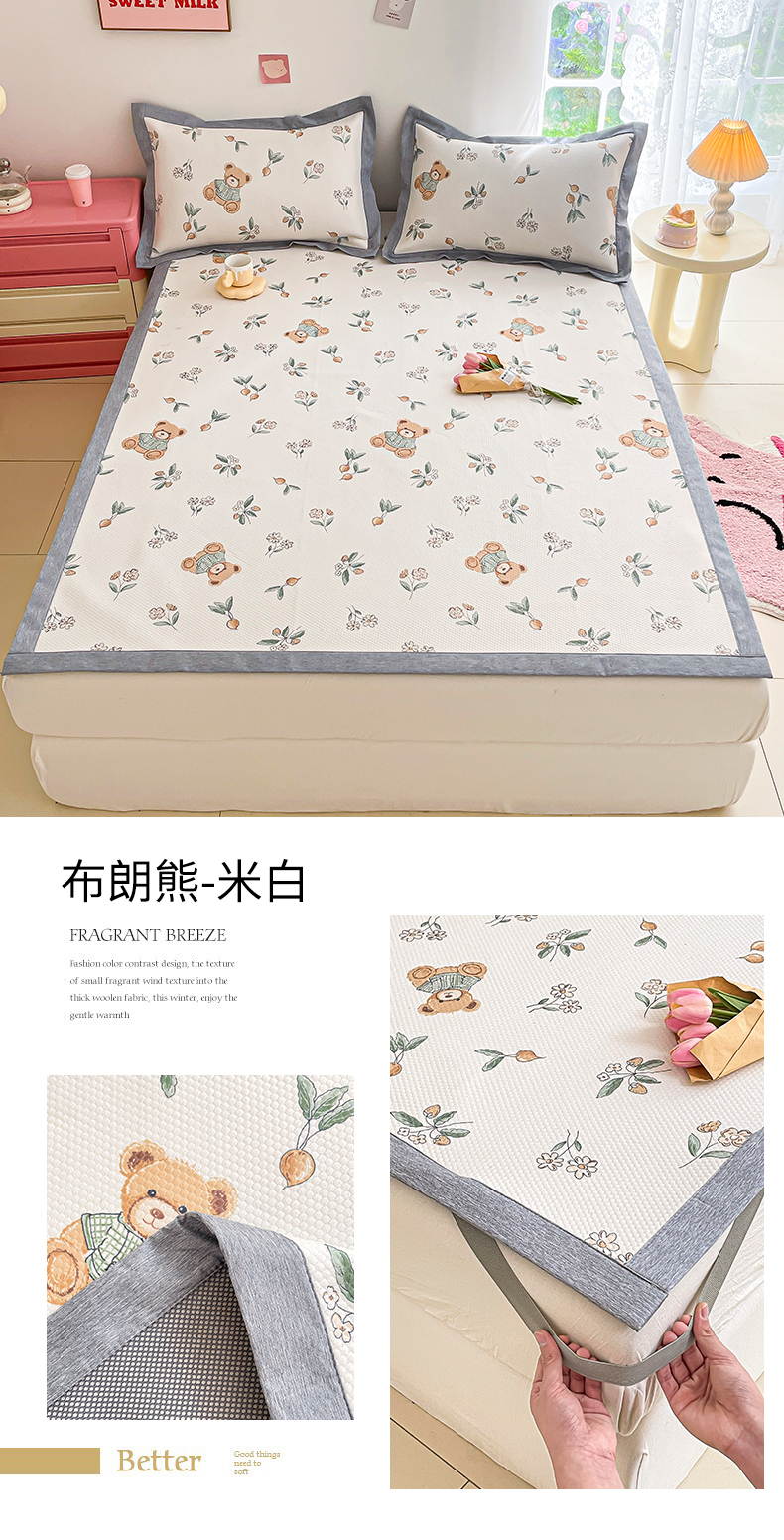 席佬大 2025新款卡通印花冰藤软席席子凉席 布朗熊-米白