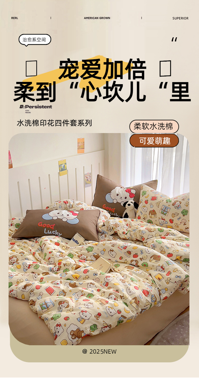 当前位置: 91家纺网 > 商品网购 > 床品套件 > 四件套 > 水洗棉四件套 > 花漾家居 2025新款水洗棉大版小清新洛丽塔四件套 凯蒂日记