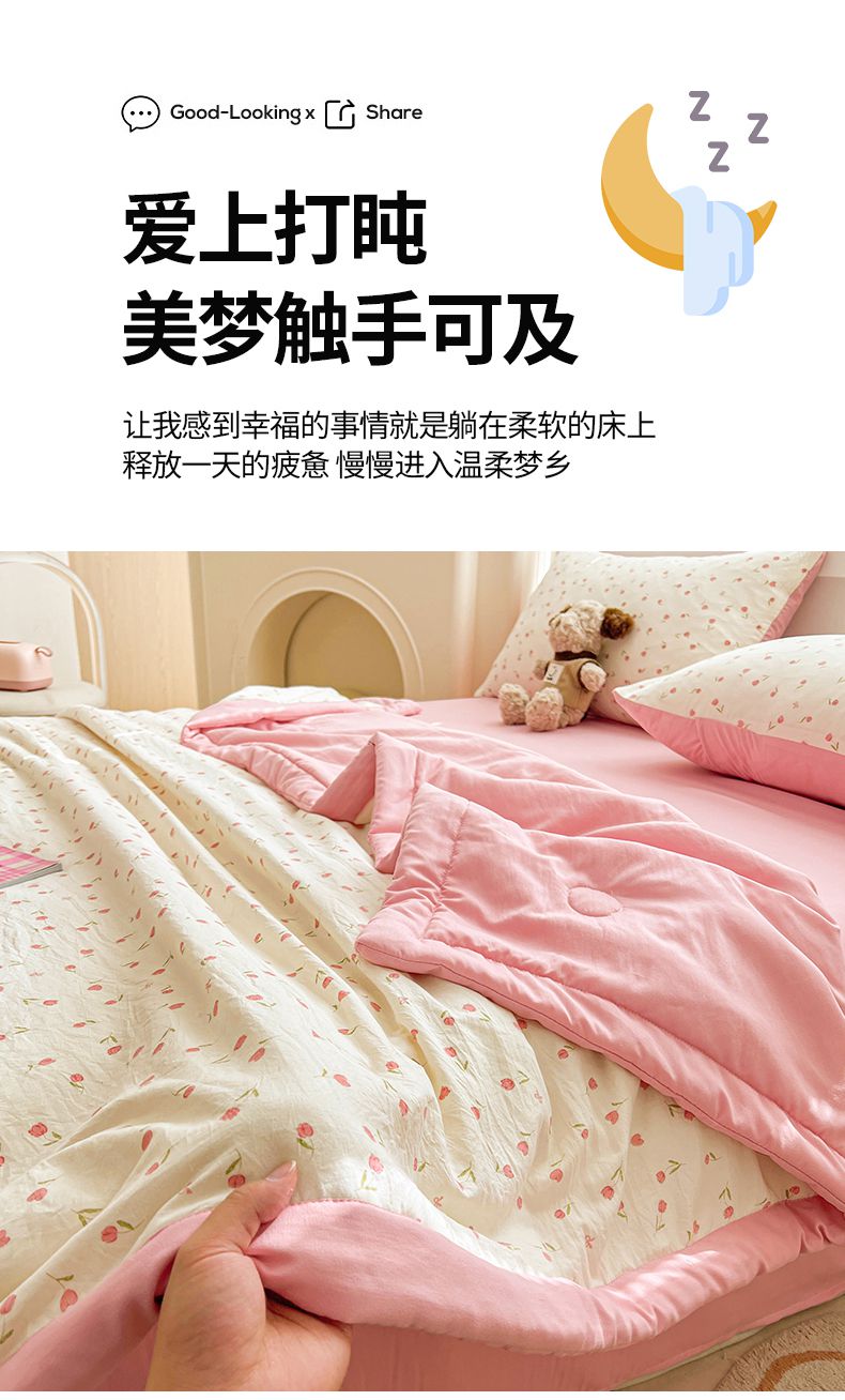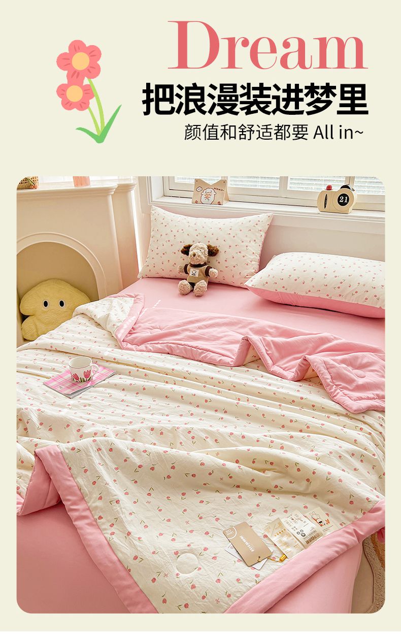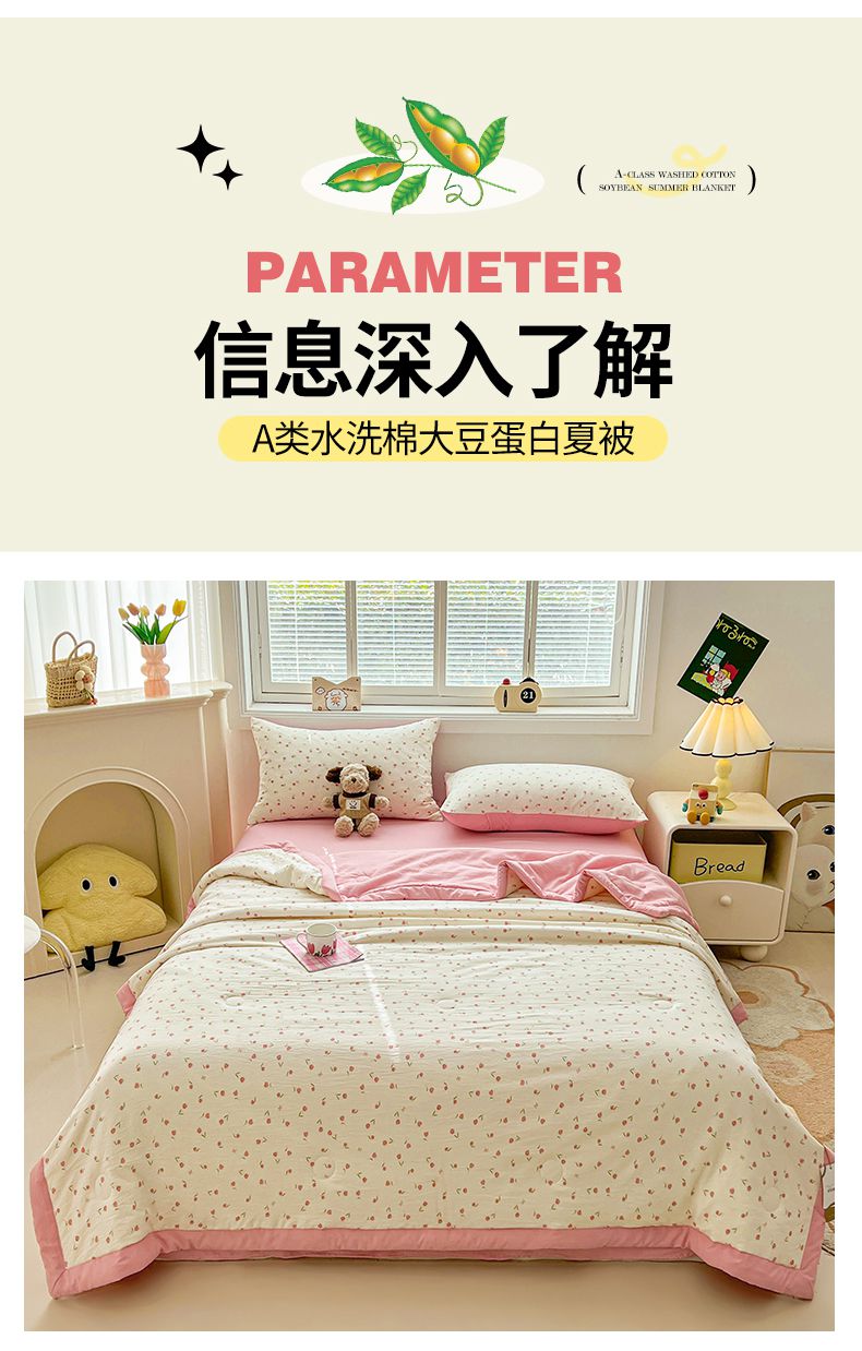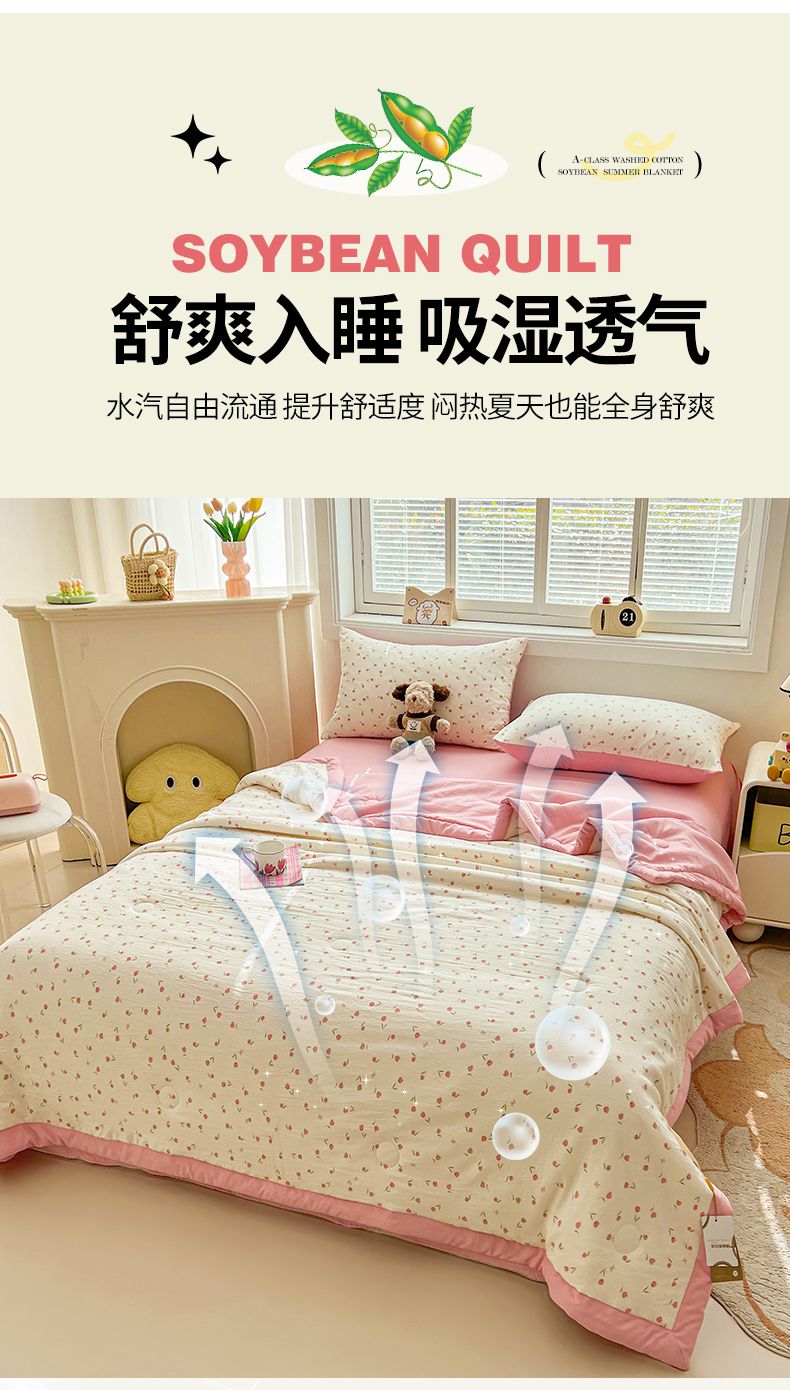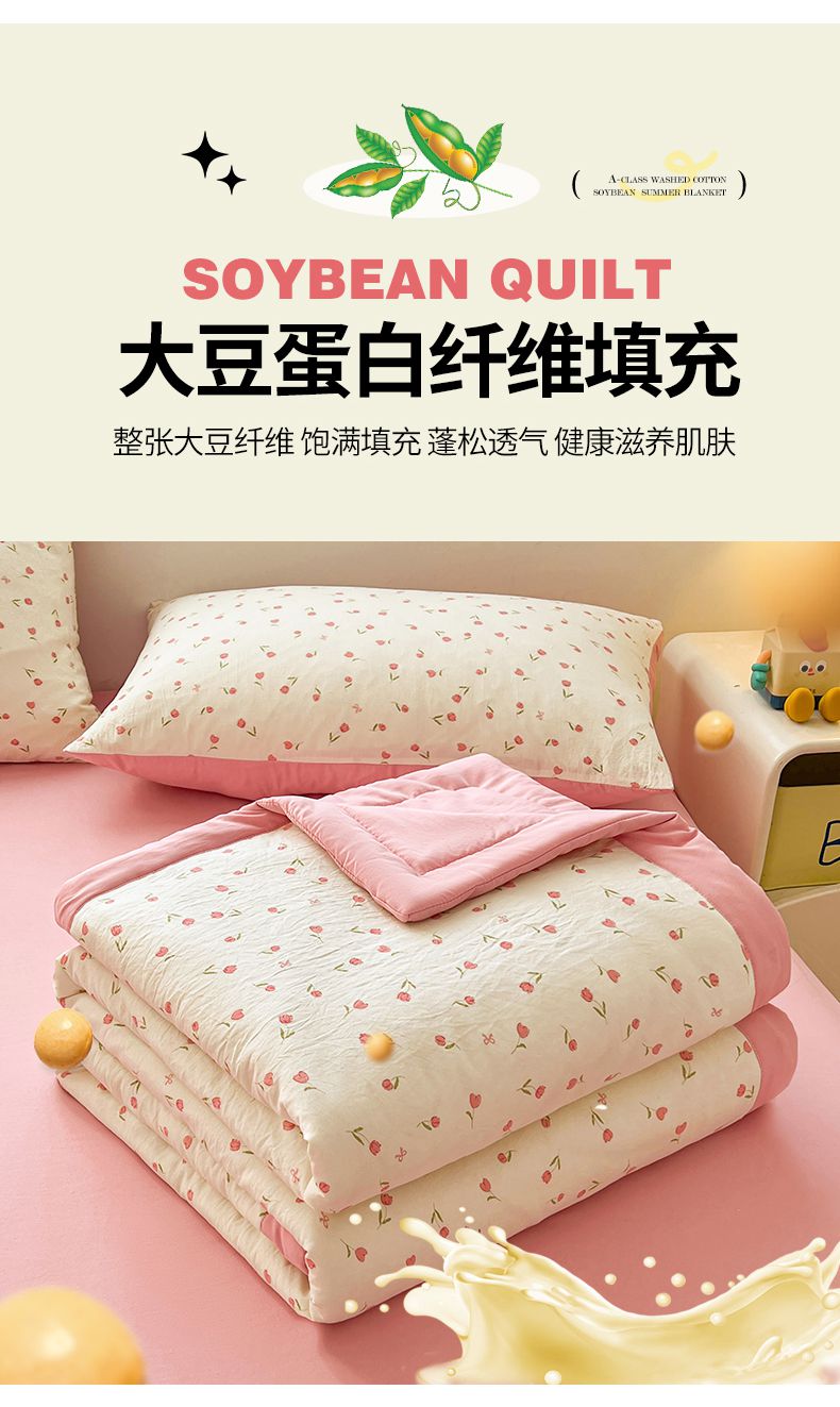 商品名称:秋泽家纺 2025春夏新款水洗棉双层纱大豆纤维夏被夏凉被空调被 浪漫花海