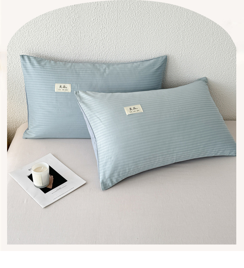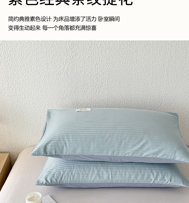 商品名称:眠博士 2025新款高支高密60支全棉条纹提花单枕套 枕套-提花雅蓝