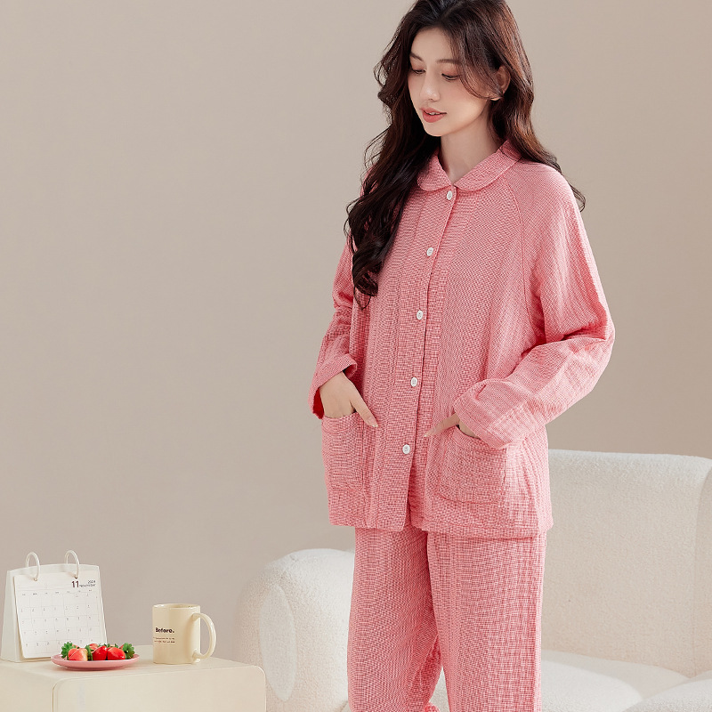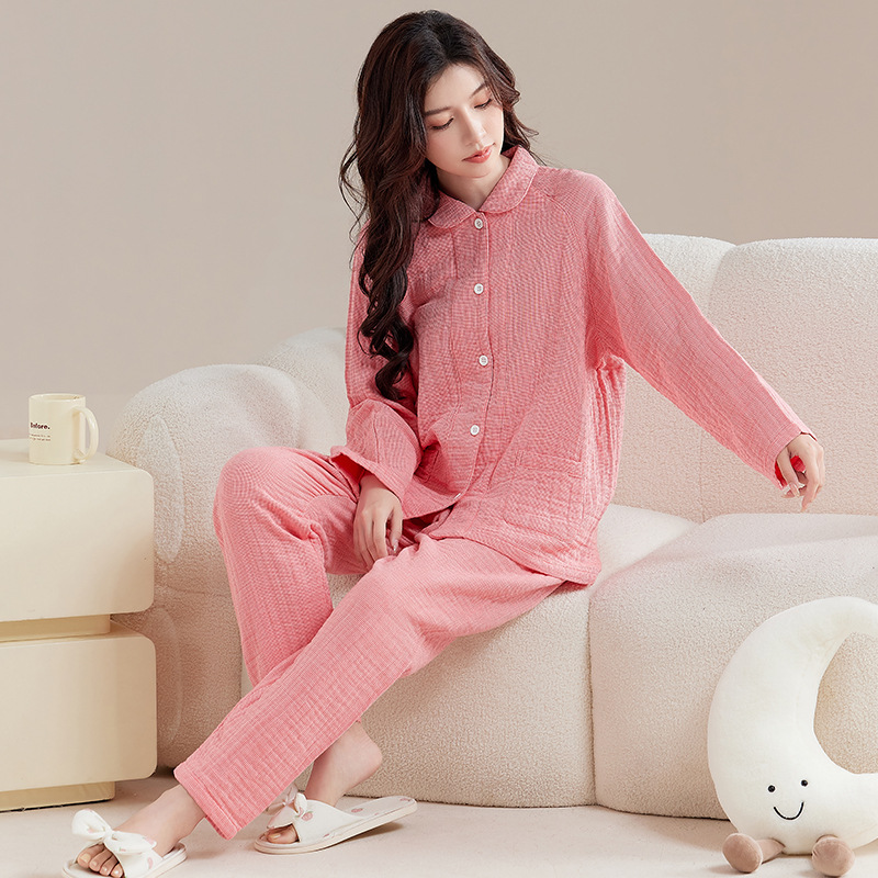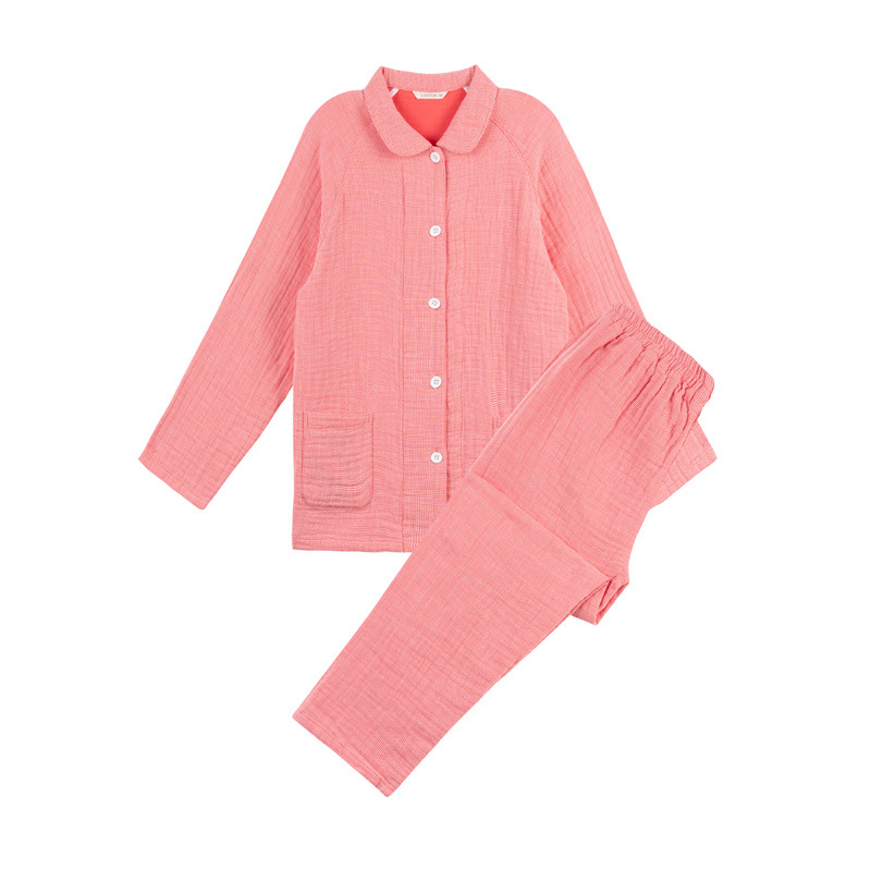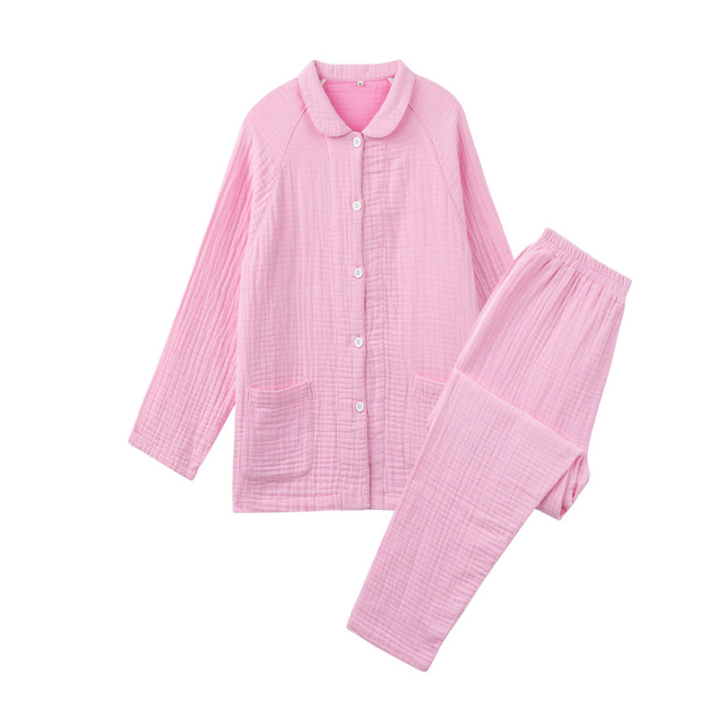 2025【纯棉细格四层纱睡衣】日式无印全棉四层纱家居服良品纯色多层纱睡衣男女情侣居家服套装