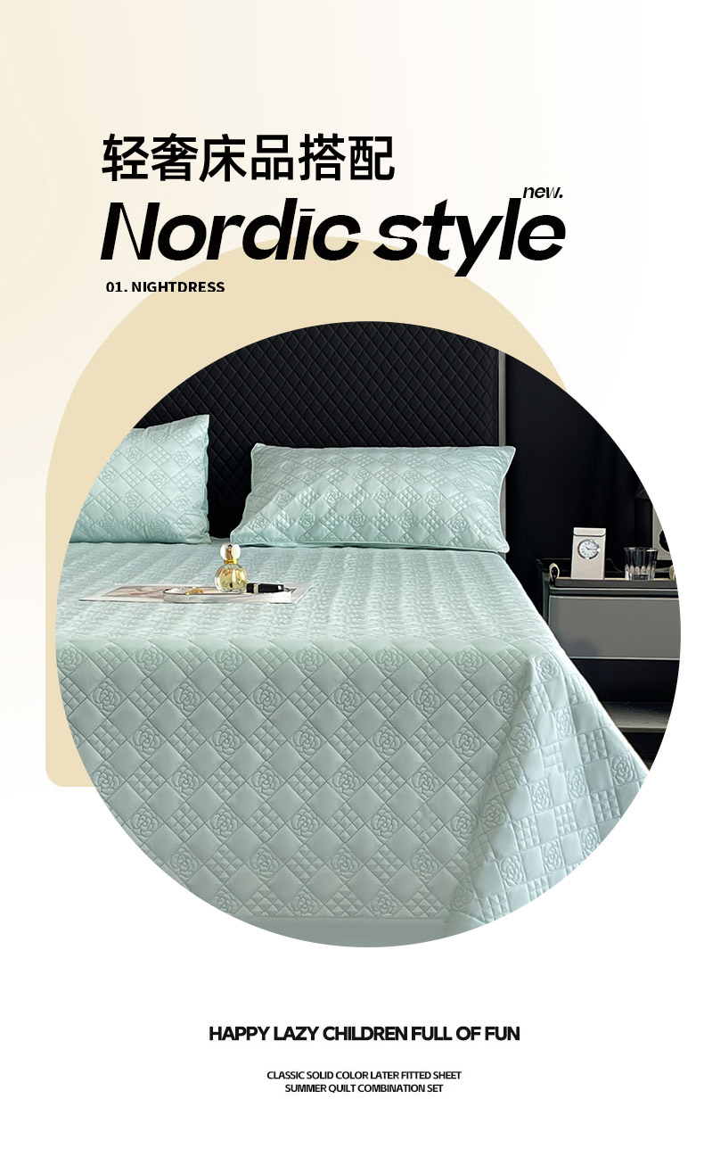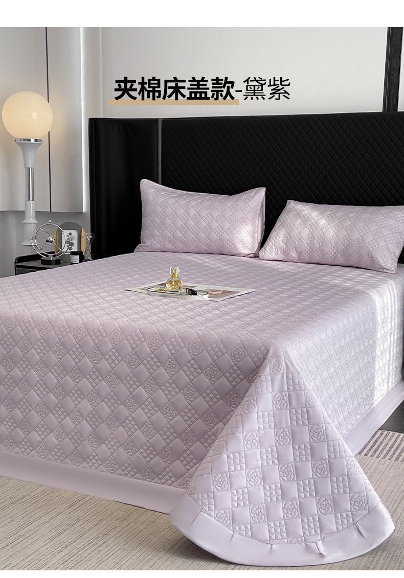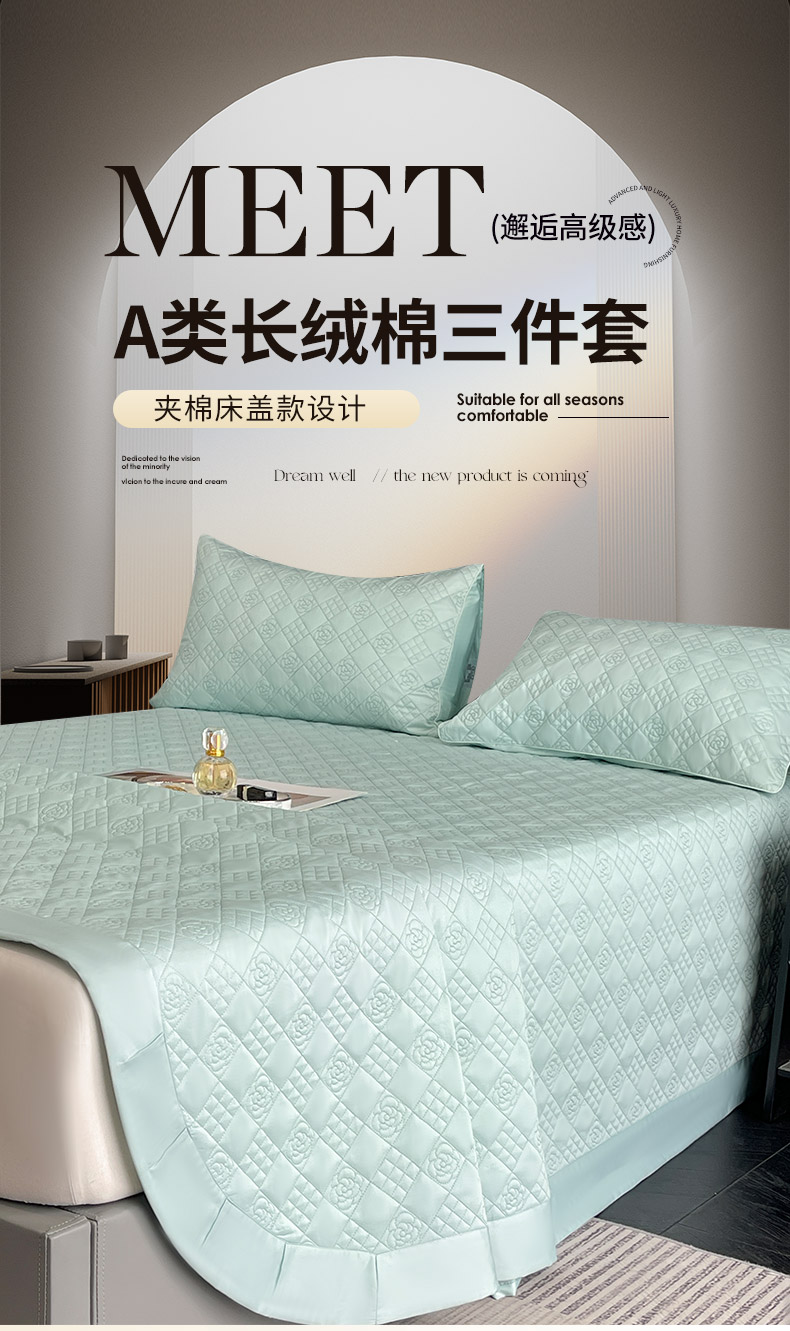 商品名称:2025新款A类100支长绒棉夹棉床盖三件套全棉纯棉加厚绗绣床单四季款床上用品 茶绿