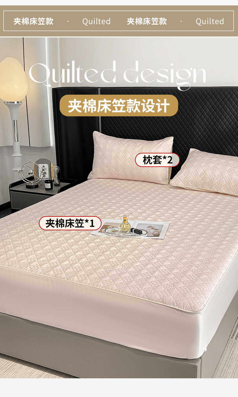 (总)2025A类母婴级长绒棉夹棉床笠三件套纯棉全棉加厚席梦思床罩床套四季款保护罩