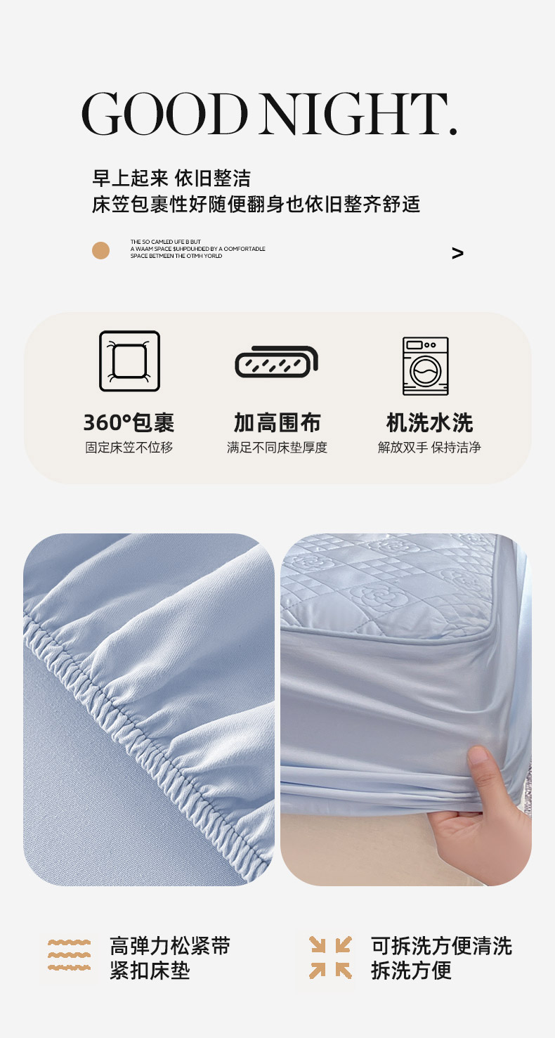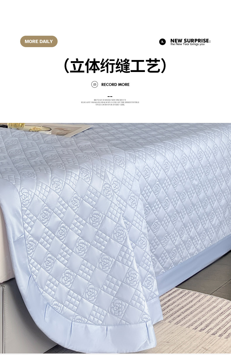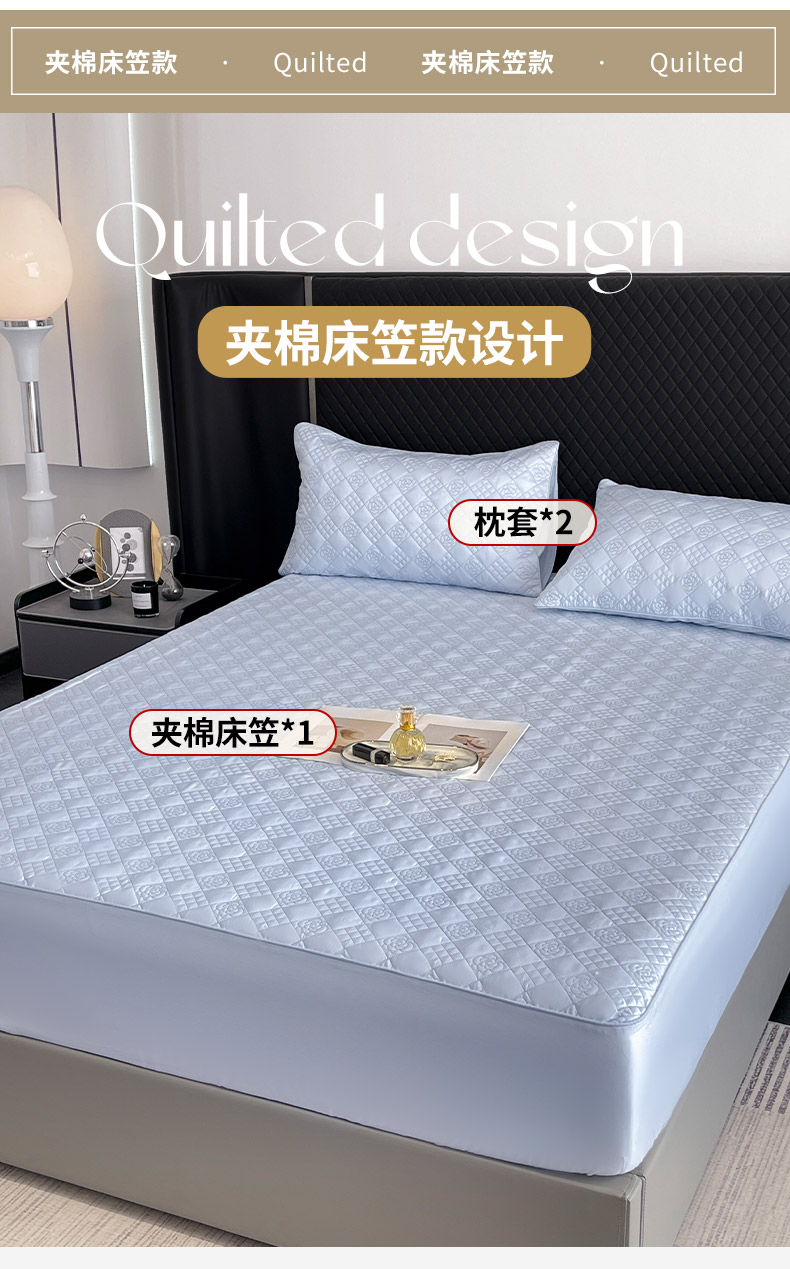 商品名称:2025轻奢风A类长绒棉夹棉床盖床笠三件套纯色绗绣四季高级感纯色全棉纯棉床上用品 慕蓝