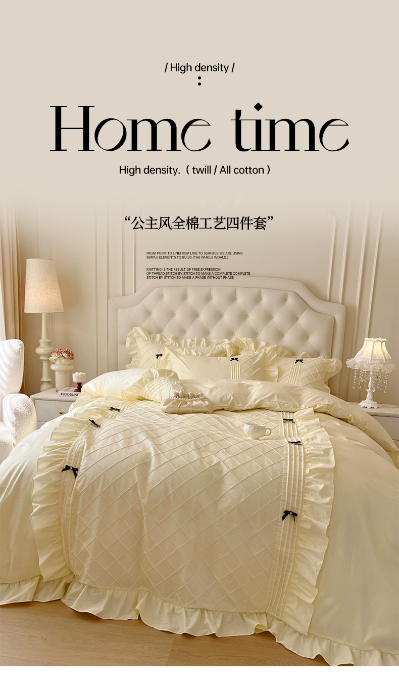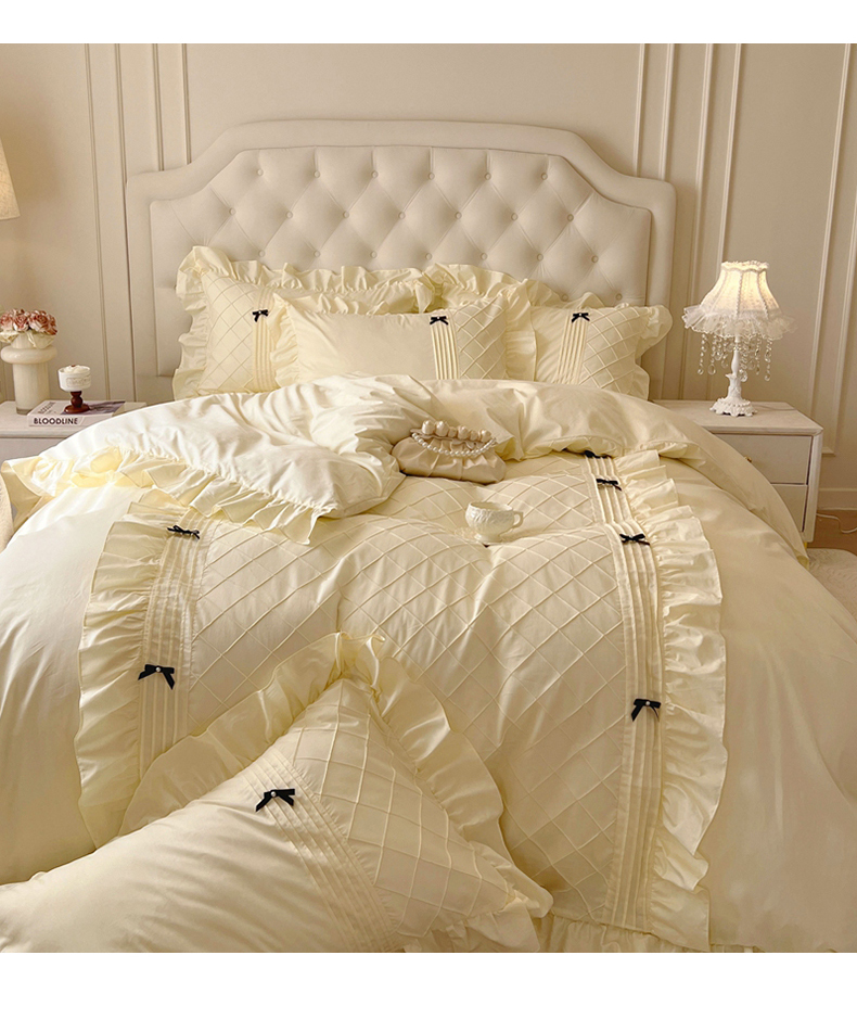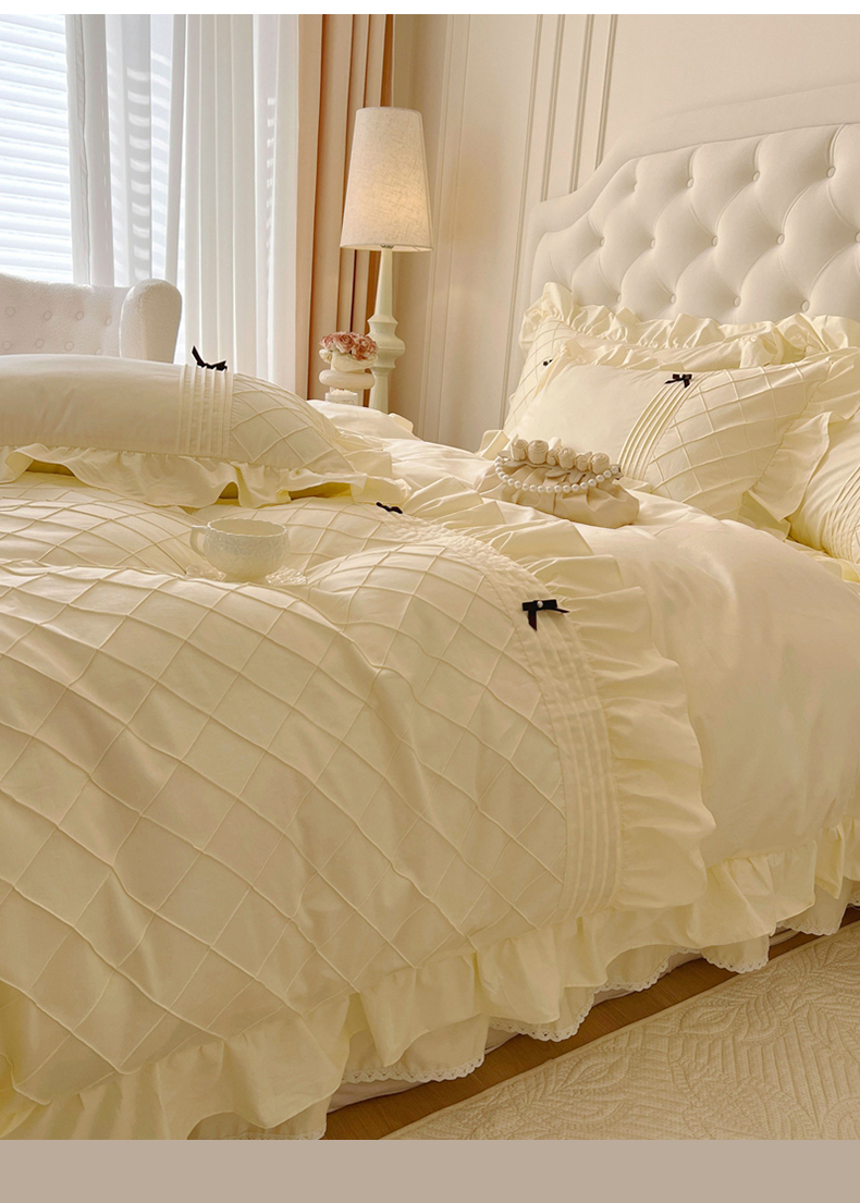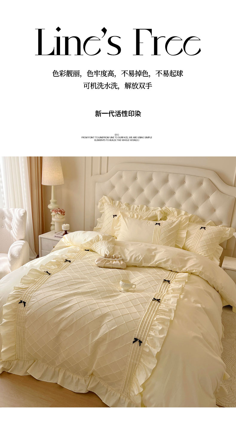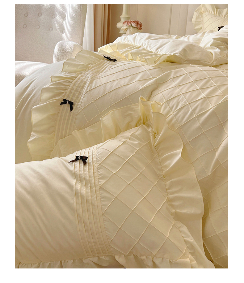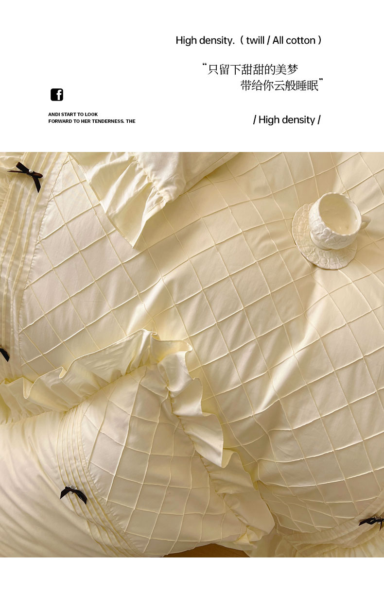 商品名称:惯盈家纺 2025新款韩版全棉四件套华夫格蝴蝶结床裙款-少女心事系列(含买家秀) 黄