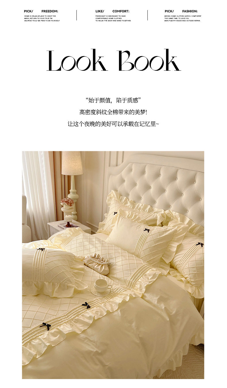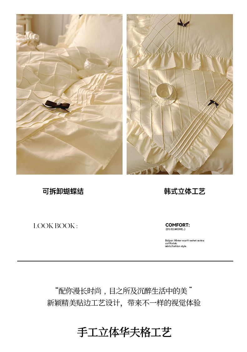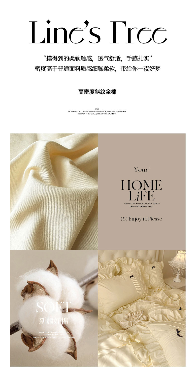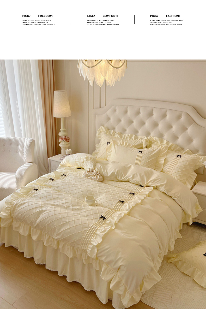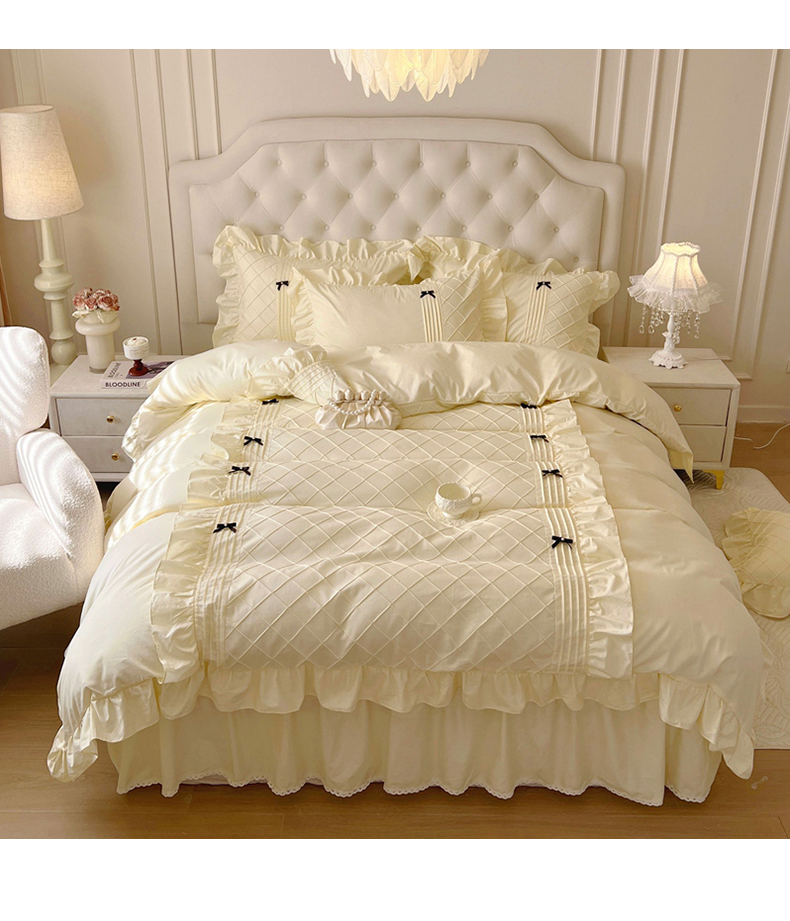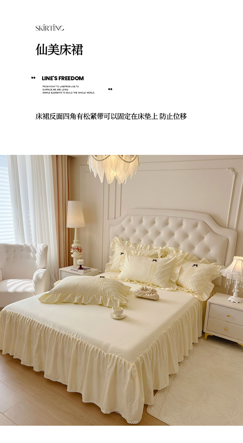 (总)惯盈家纺2025新款全棉华夫格公主裙四件套-糖心公主,白,粉,黄,卡其