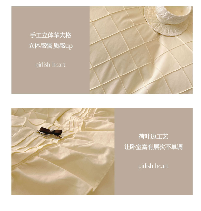 (总)惯盈家纺 2025新款韩版全棉四件套华夫格蝴蝶结床裙款-少女心事系列(含买家秀),白,粉,黄,卡其