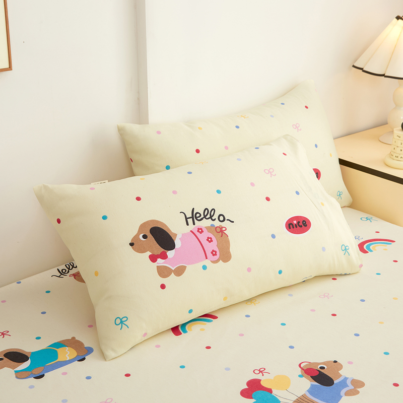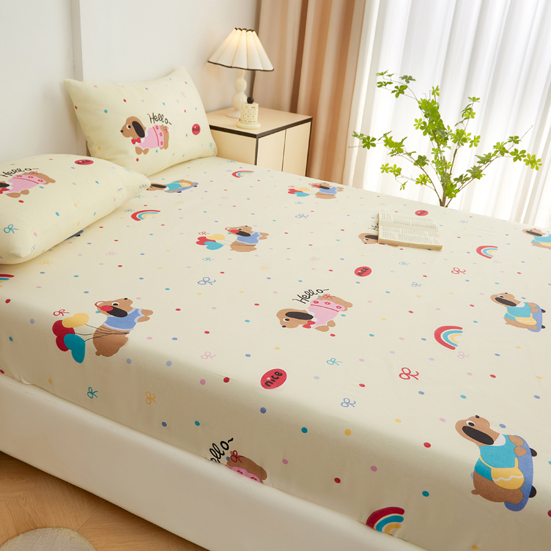 • 91家纺网 家纺一手货源 找家纺 首爱家纺 2025新款锦柔老粗布印花床笠 小狗乐园