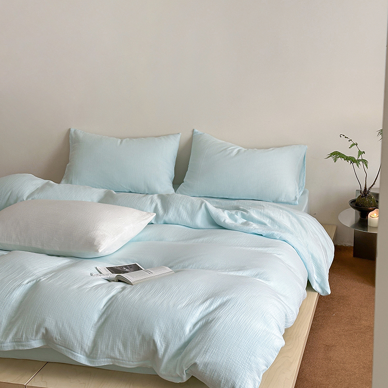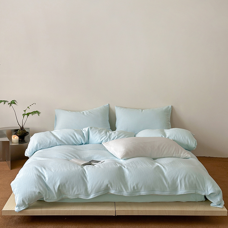 当前位置: 91家纺网 > 商品网购 > 床品套件 > 四件套 > 双层纱四件套 > 简家居 2025新款全棉纯色双层纱四件套系列 水蓝
