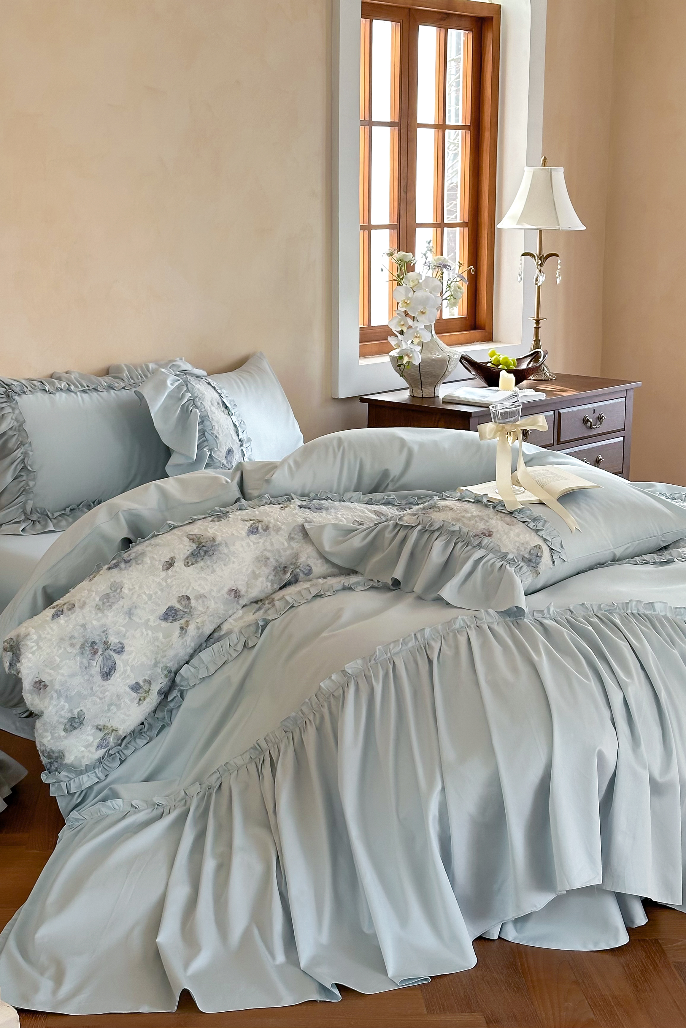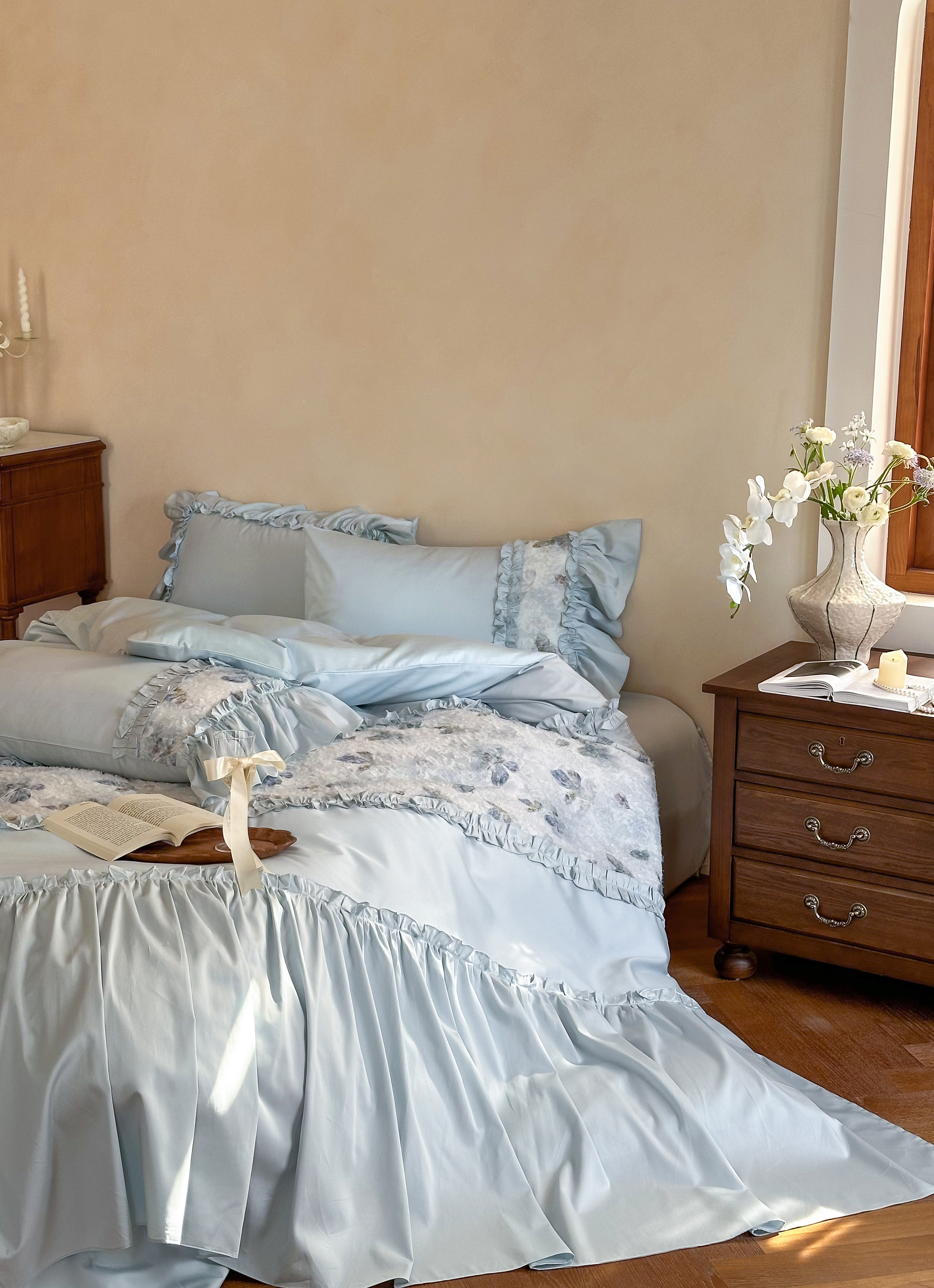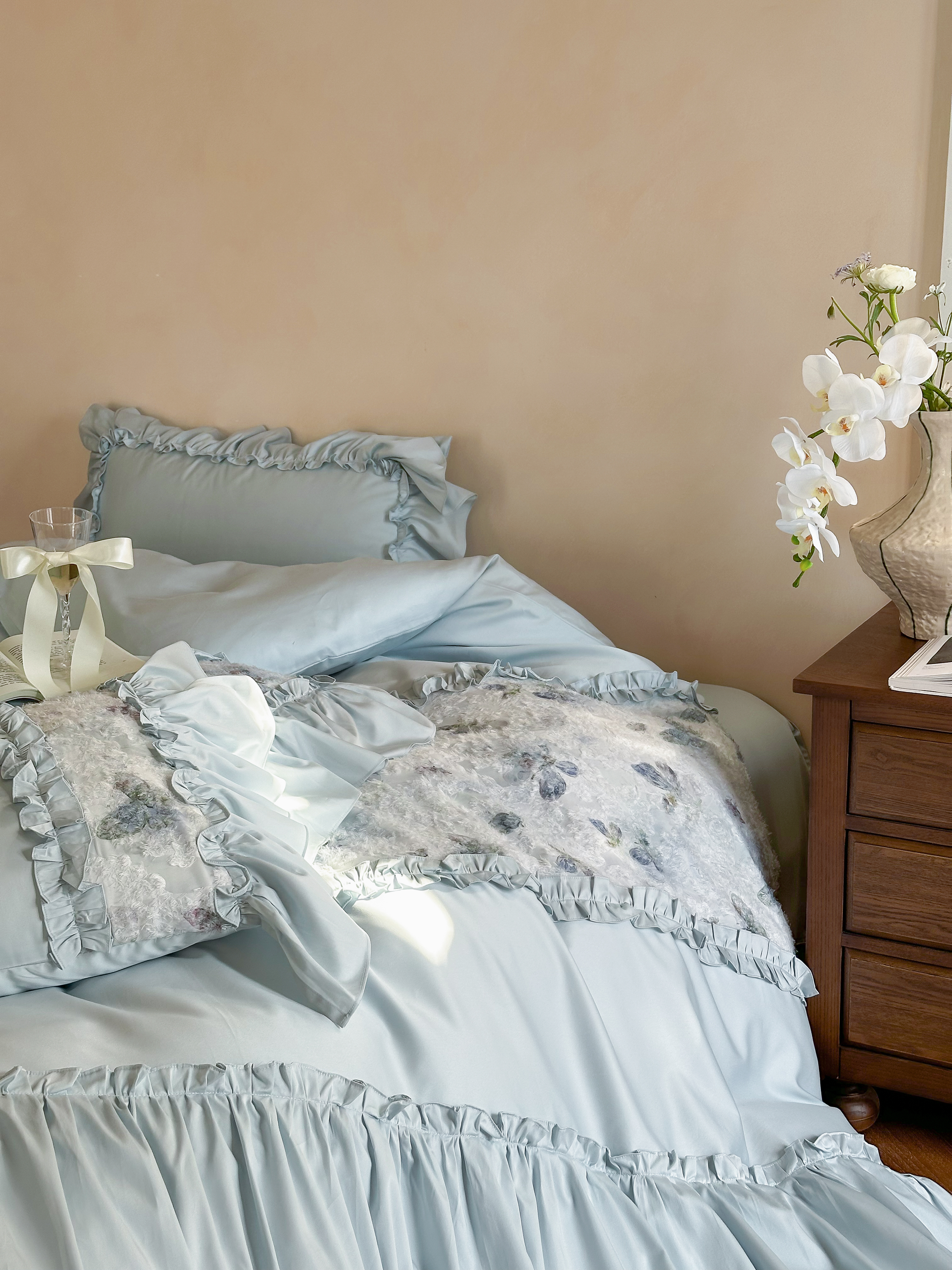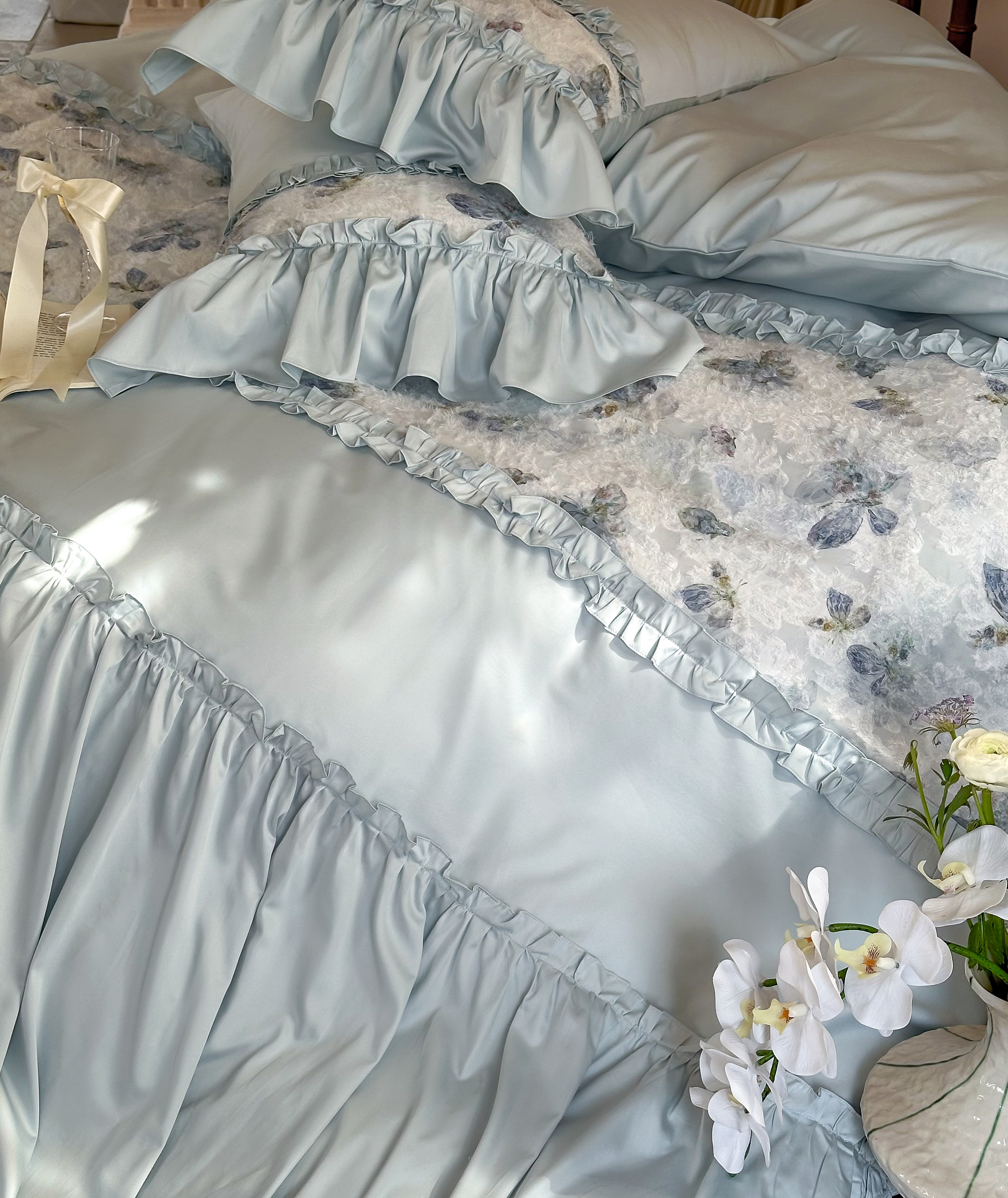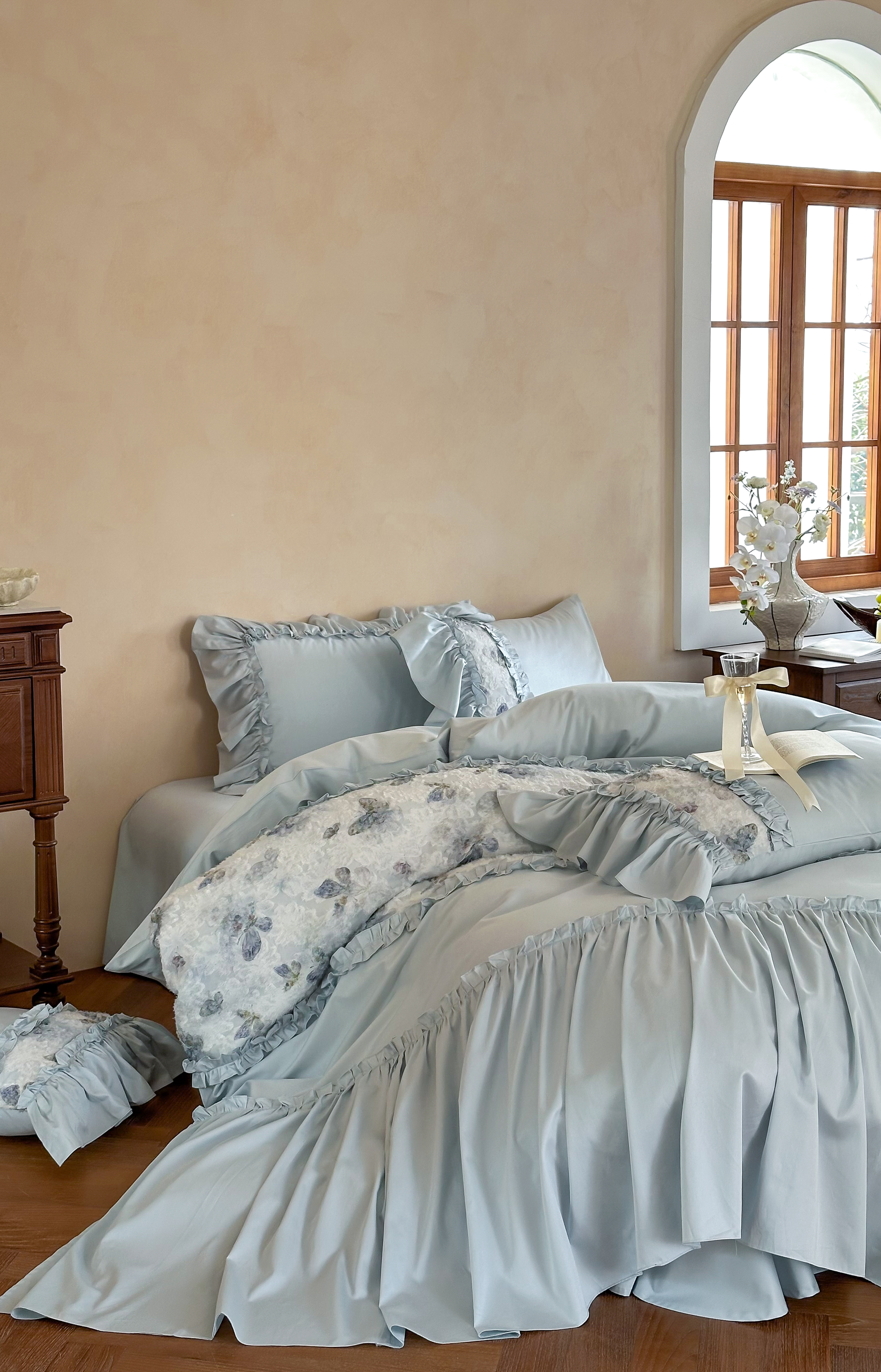 (总)多乐娜 2025新款轻法式100S贡缎长绒棉数码印花纯棉双层花边四件套 轻奢全棉(会员-20),浮光影(双层花边款)
