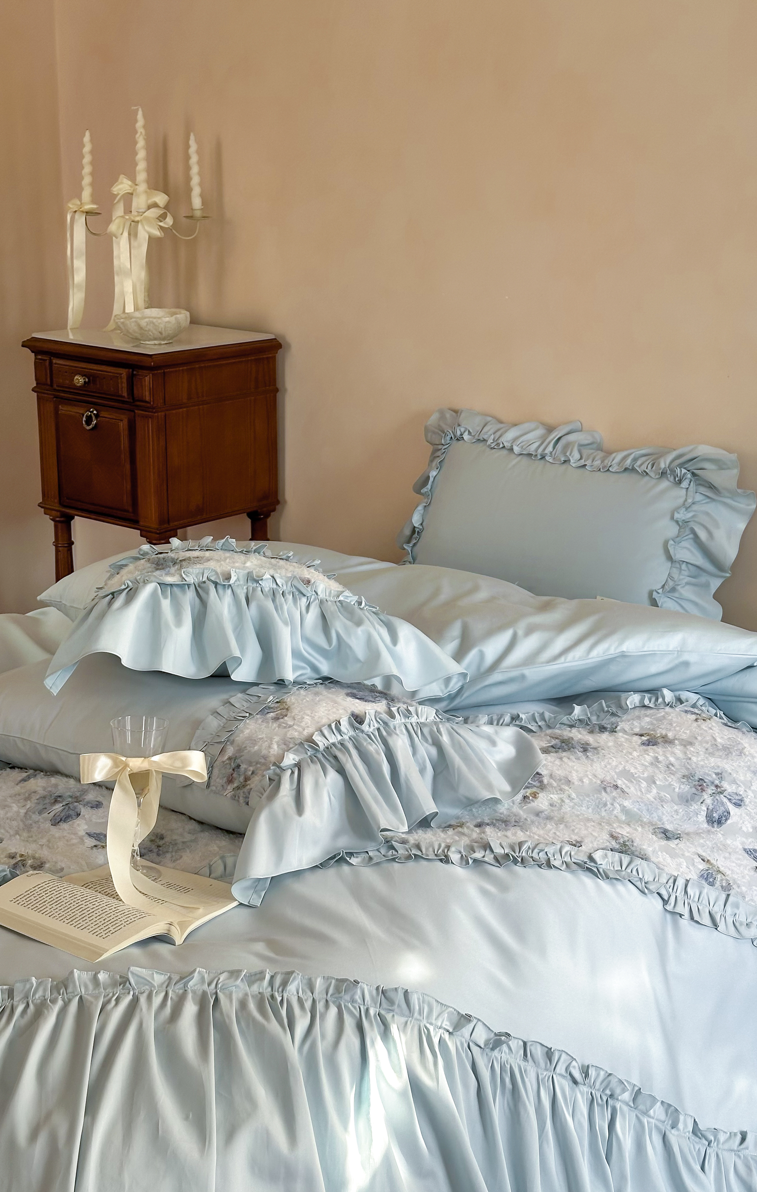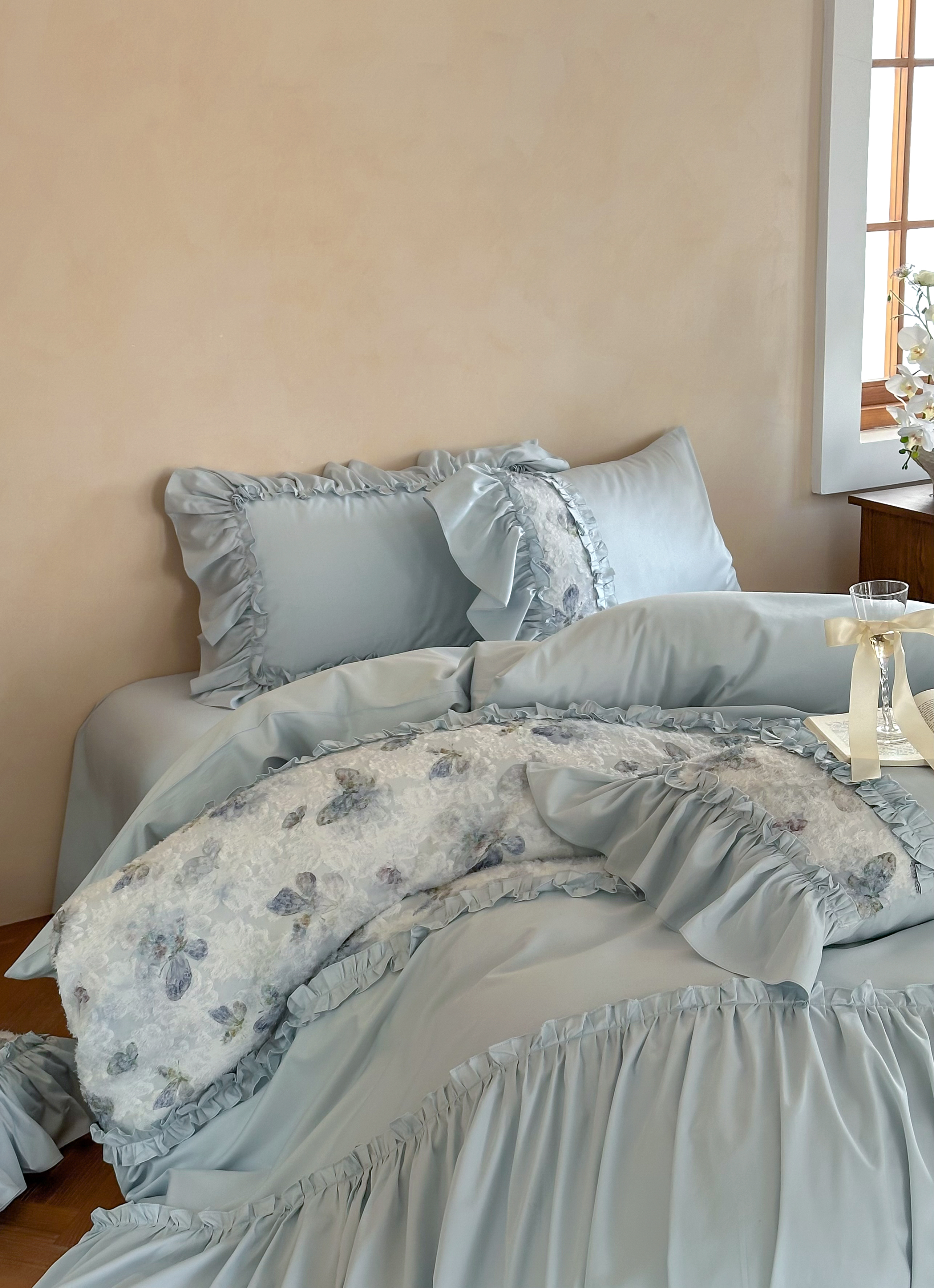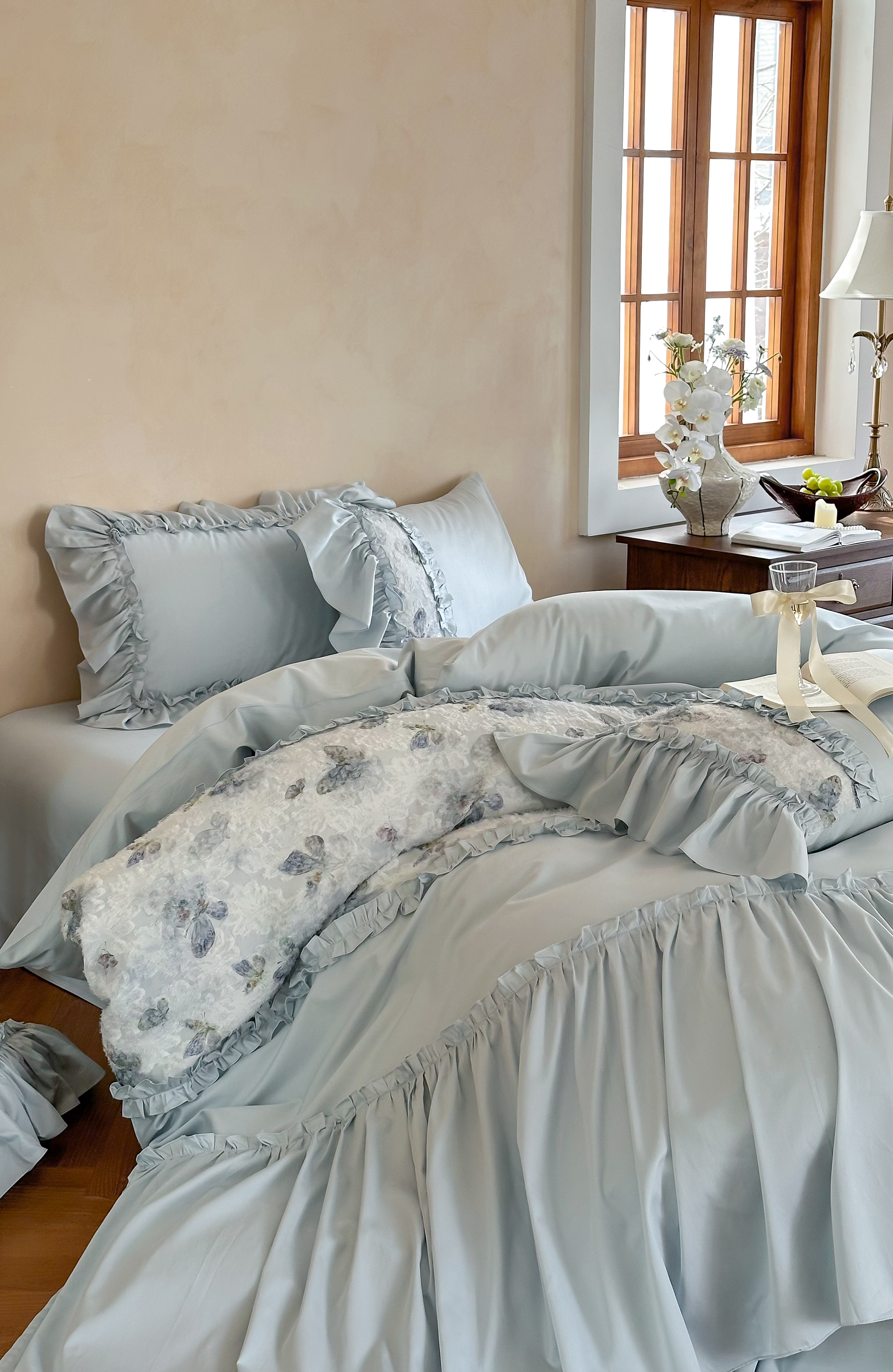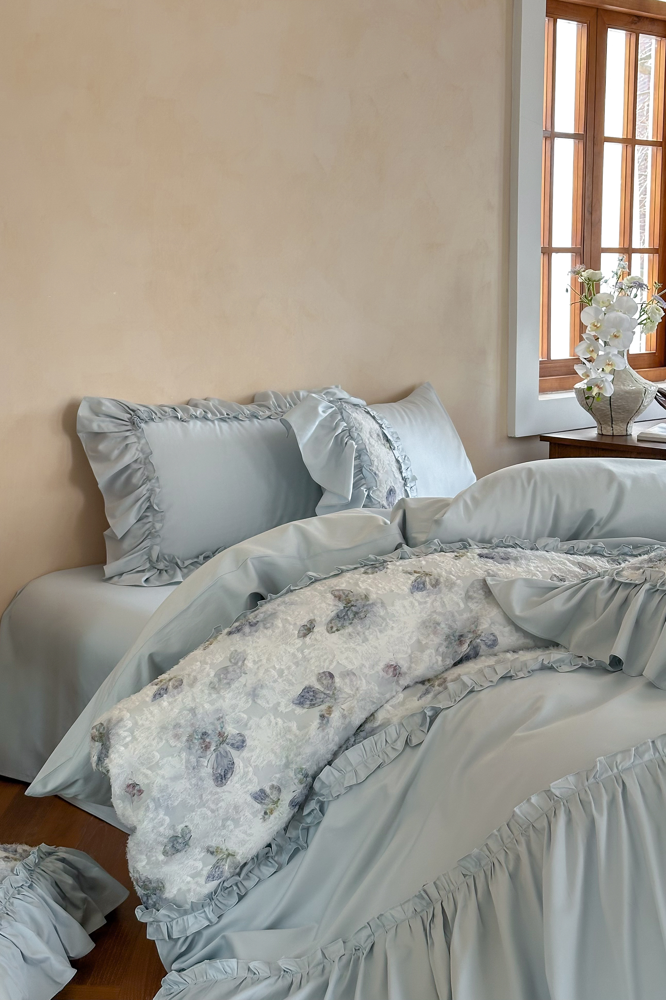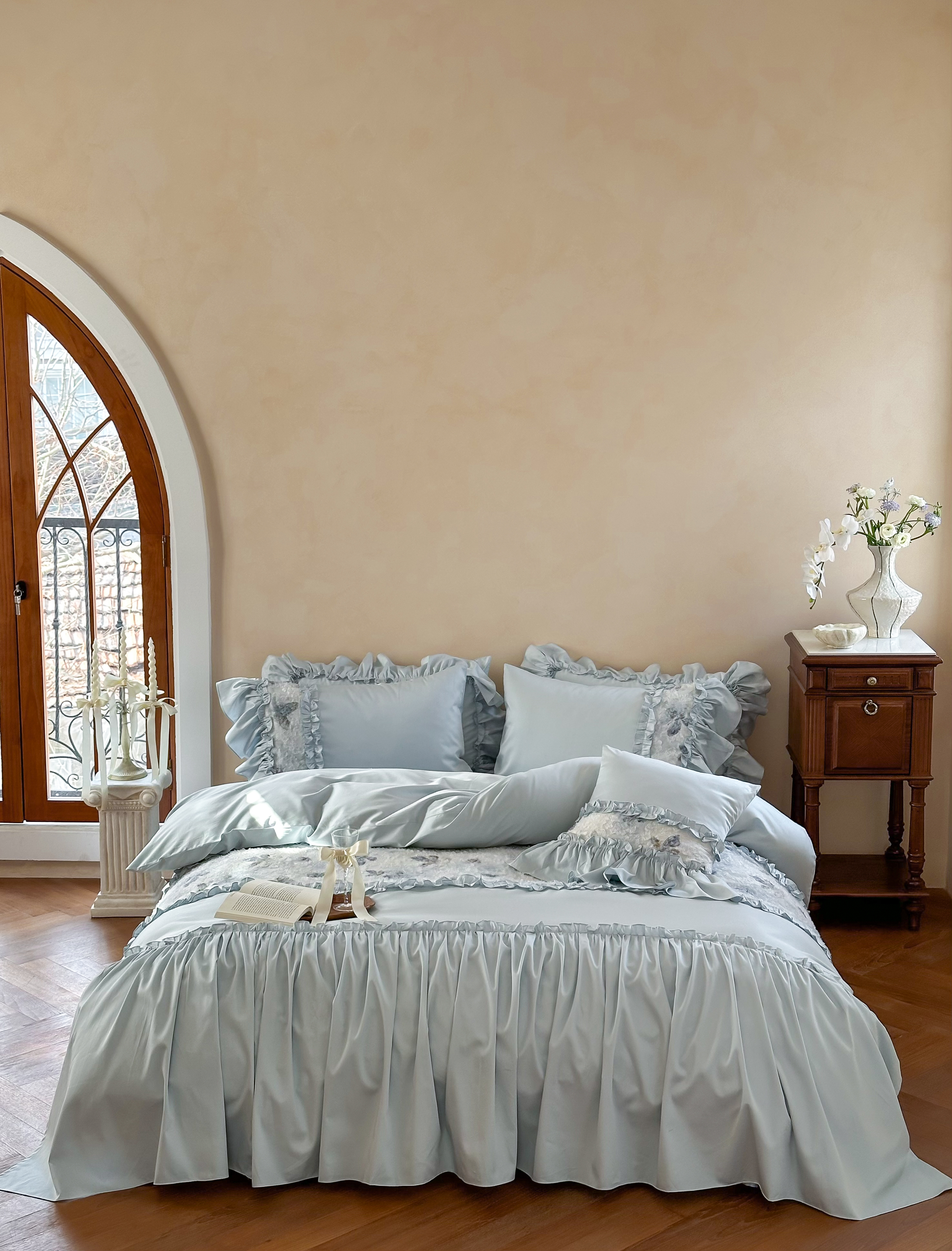 (总)多乐娜 2025新款轻法式100S贡缎长绒棉数码印花纯棉双层花边四件套 轻奢全棉(会员-20),浮光影(双层花边款)