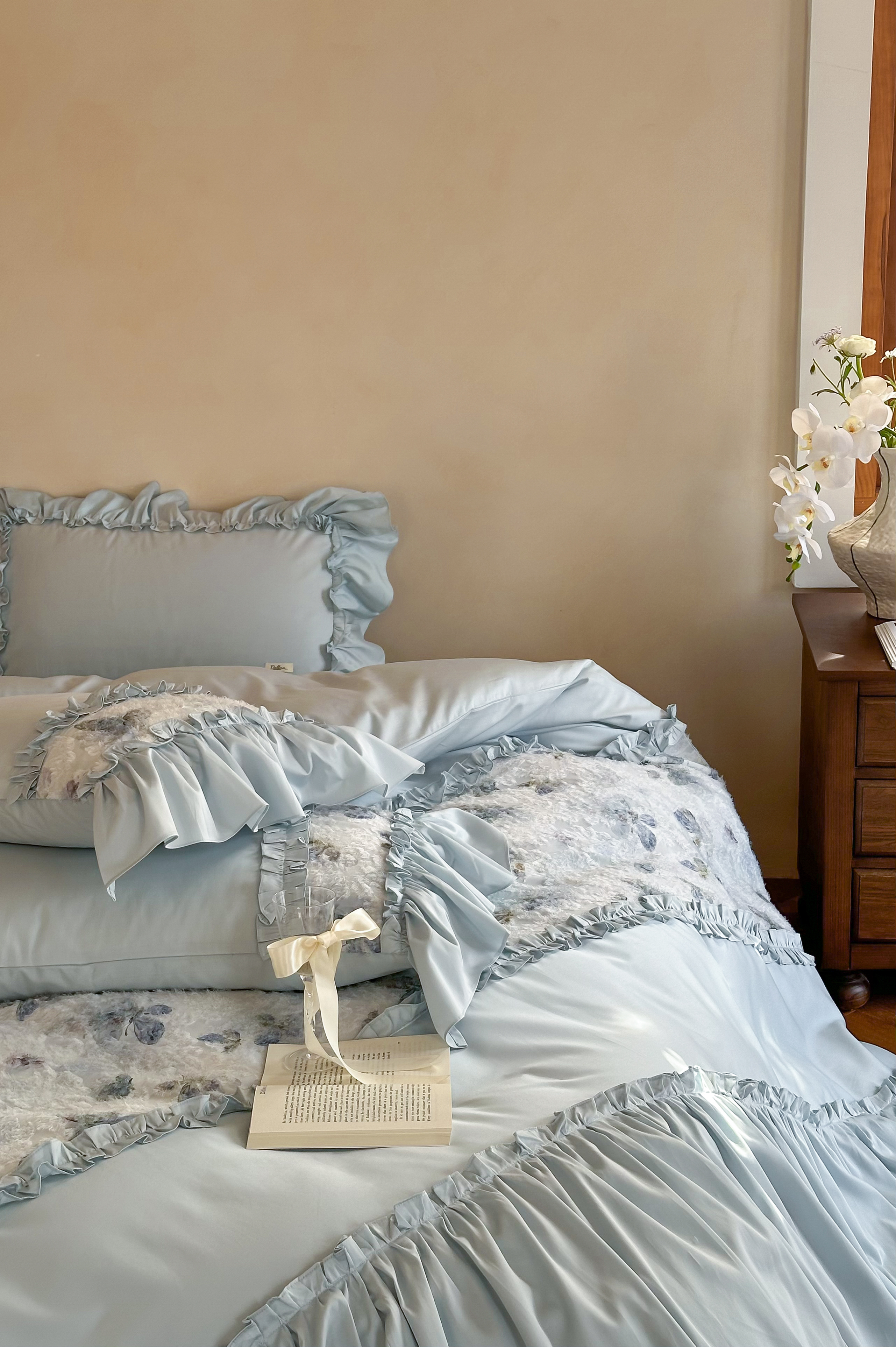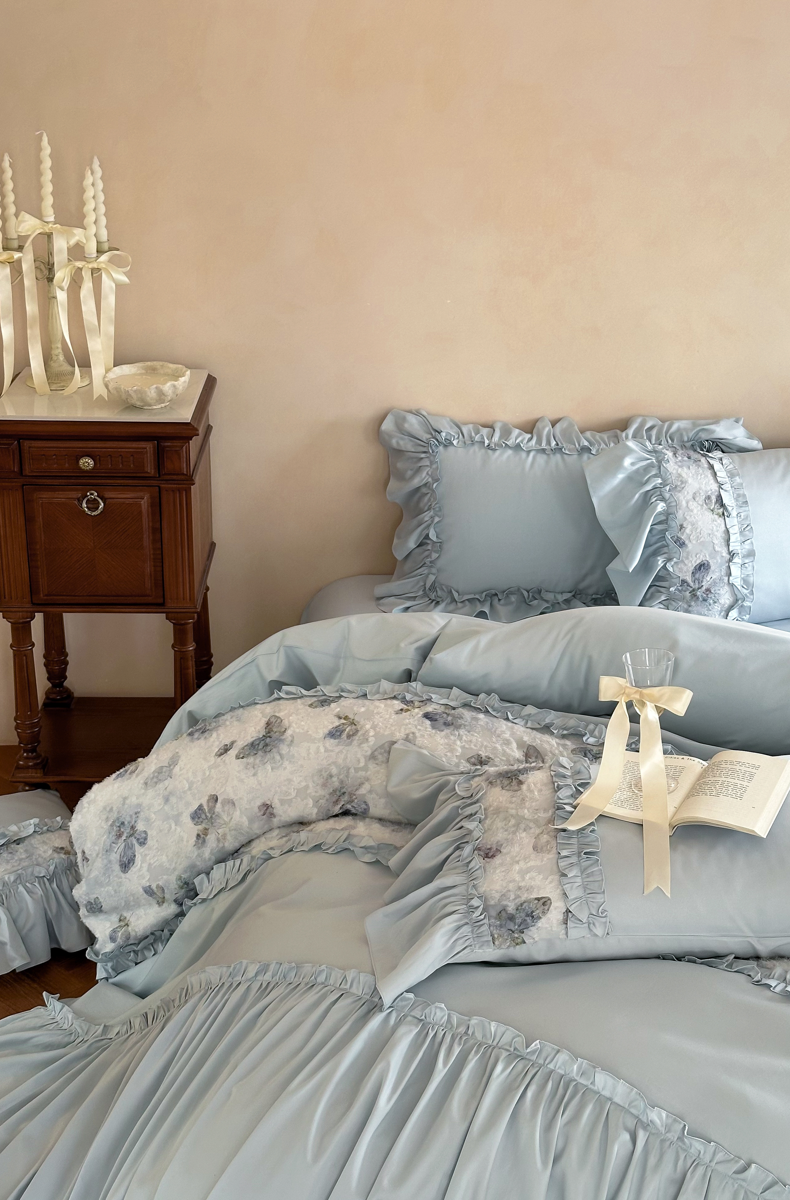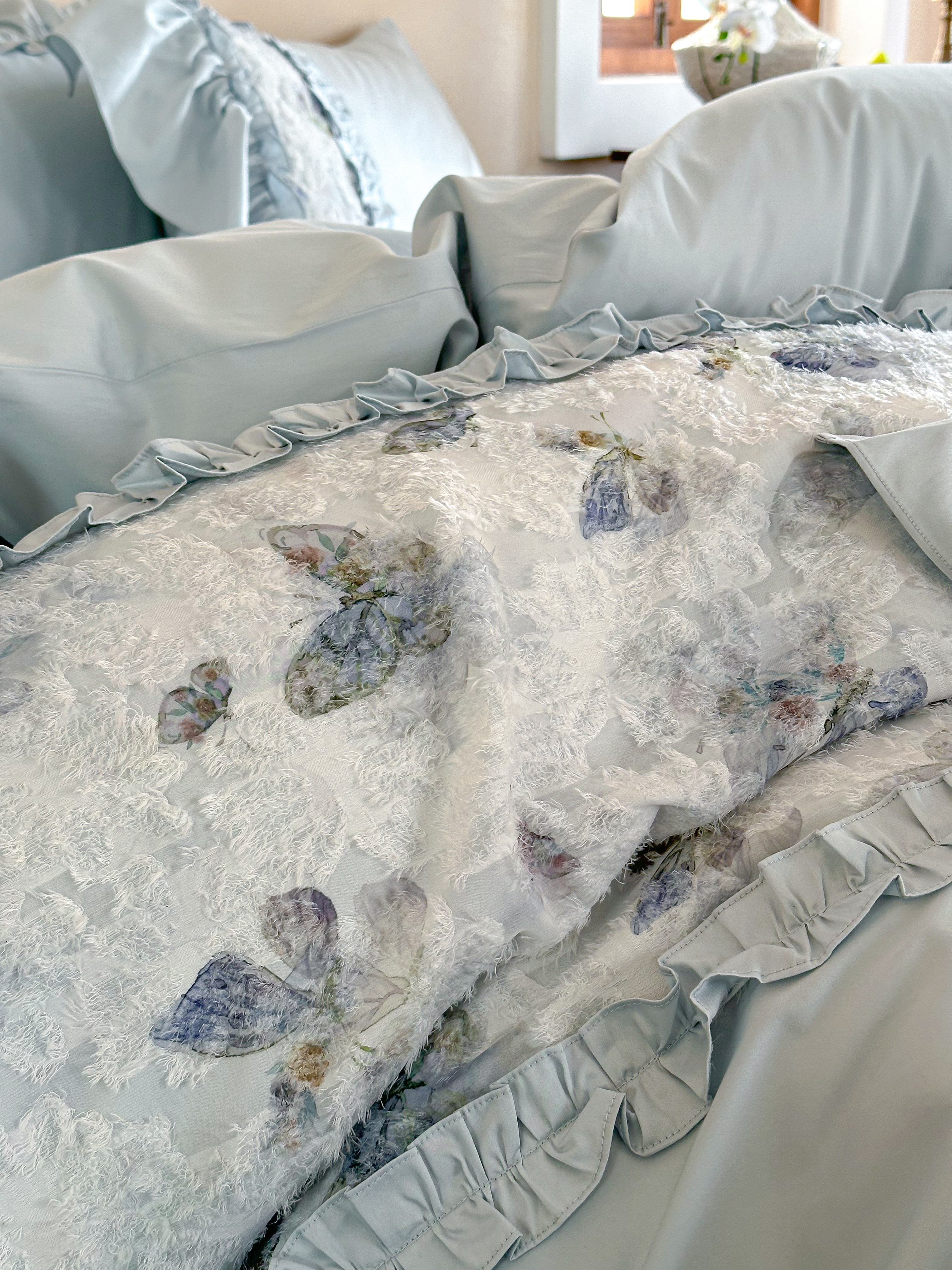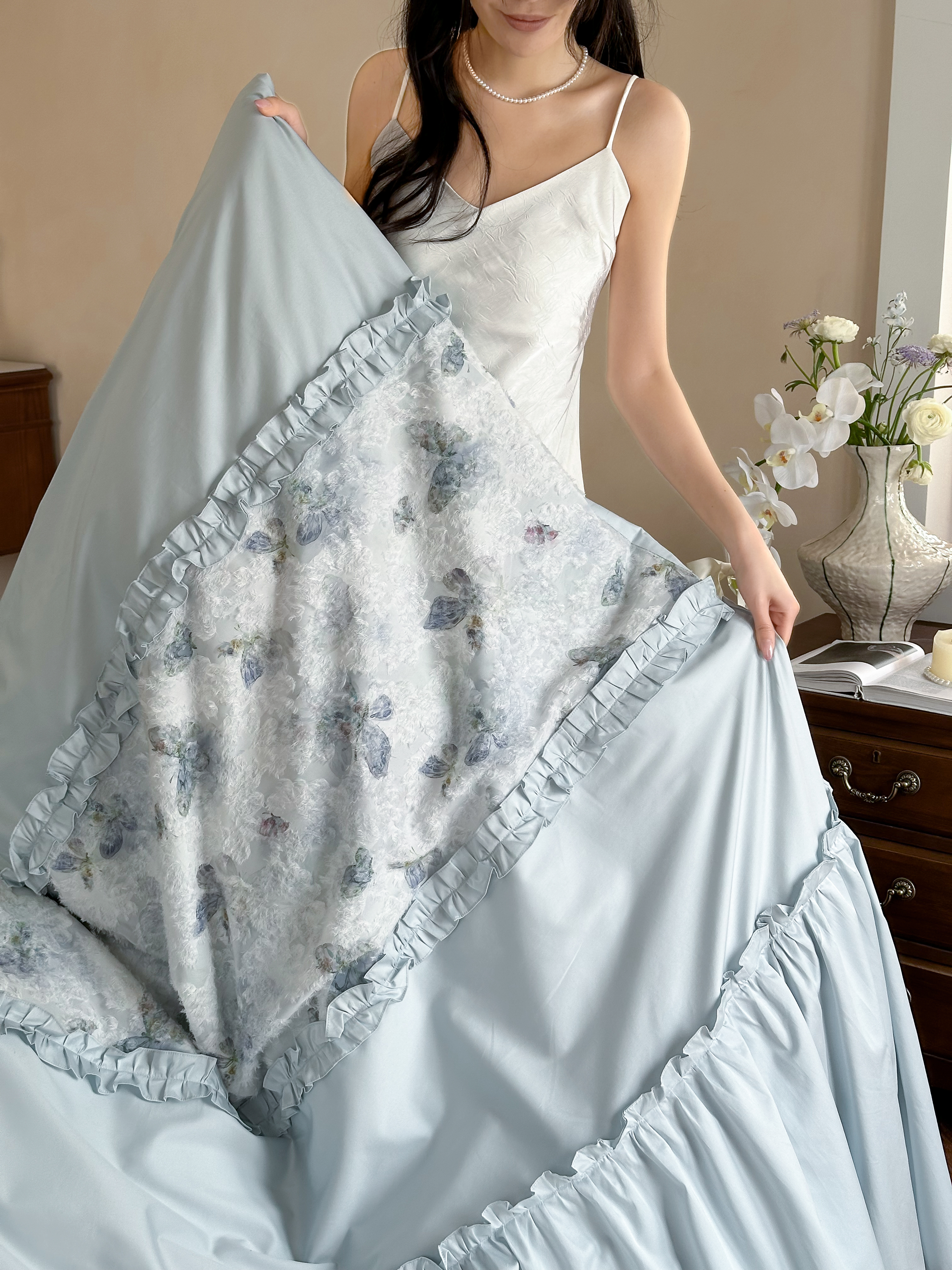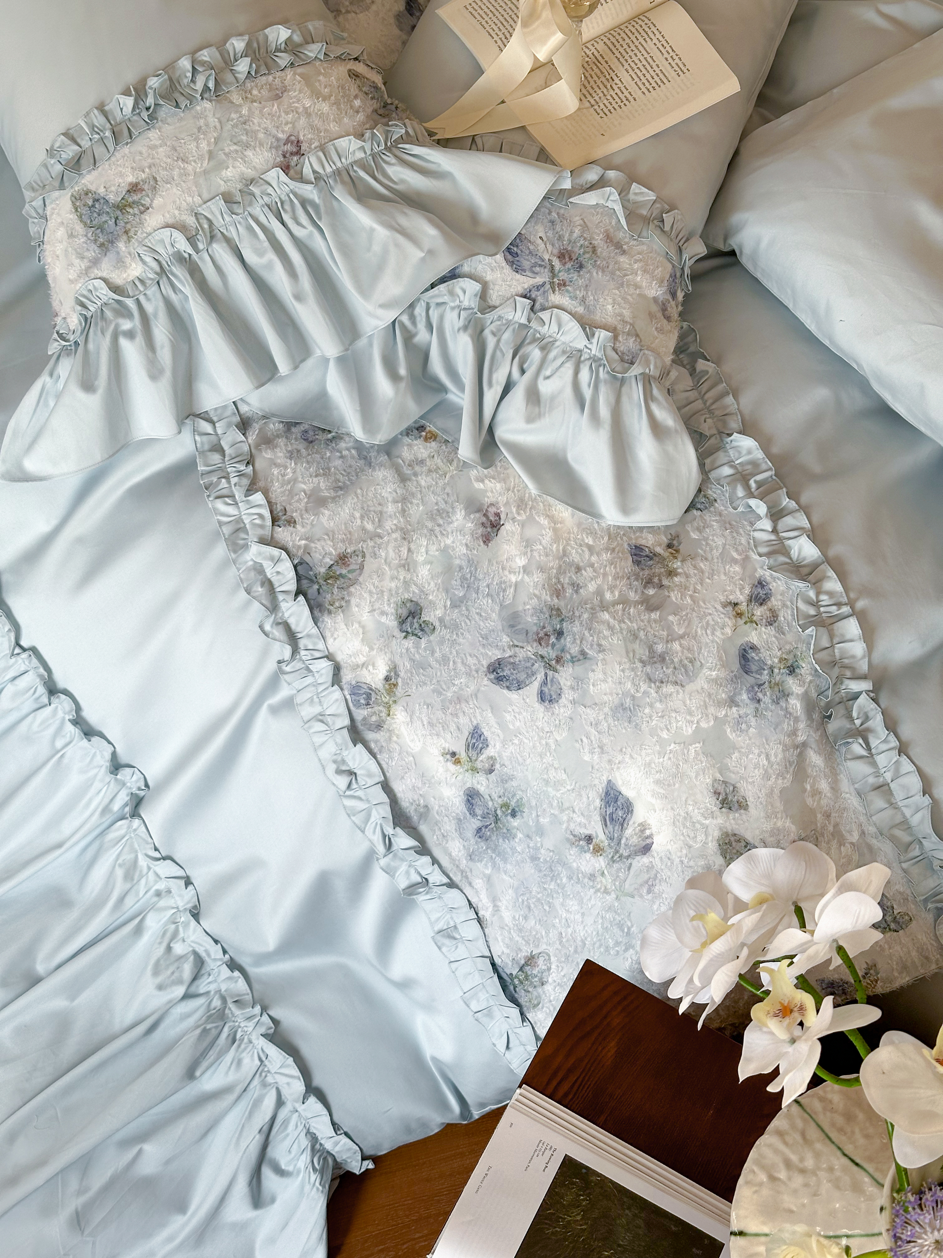 多乐娜 2025新款轻法式100s贡缎长绒棉纯棉工艺款四件套轻奢-浮蝶织梦 浮蝶织梦-蓝
