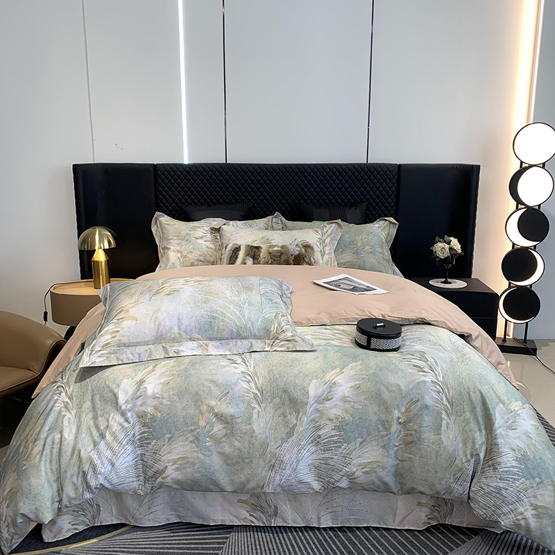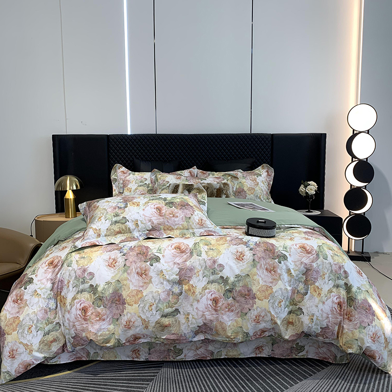 莱豫家纺 2025新款50支长绒棉数码印花四件套 烟雨江南
