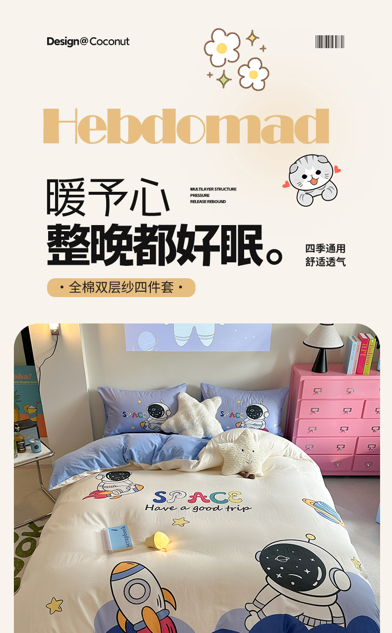 商品名称:2025新款设计师专版全棉双层纱四件套 幸运鸭