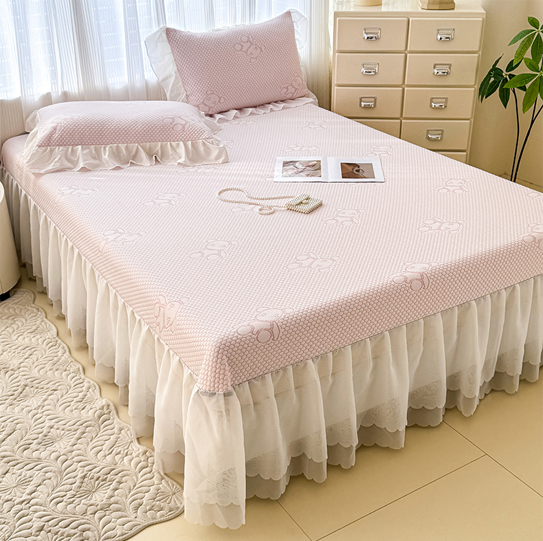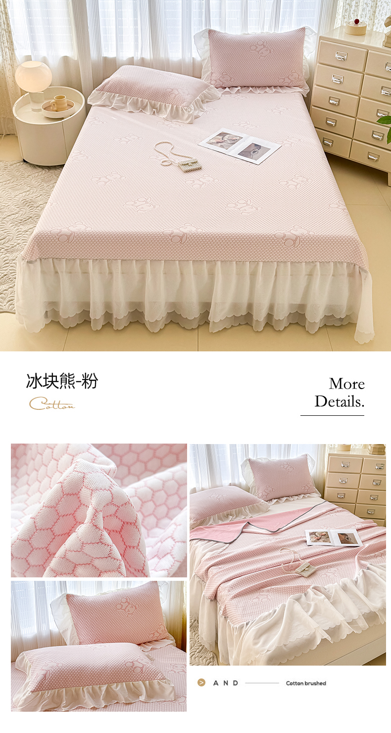 商品名称:小萌虎 2025新款A类冰块熊豆豆凉席床裙款 冰块熊-粉