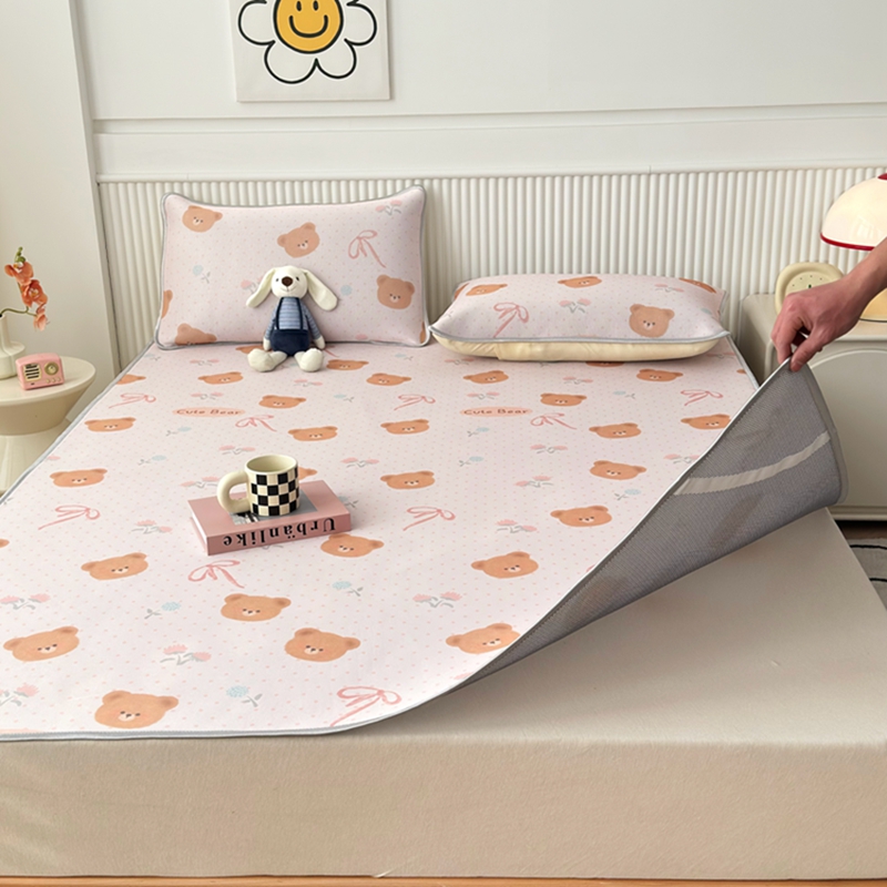柏薇 2025新款三明治网眼印花凉席套件 开心小熊