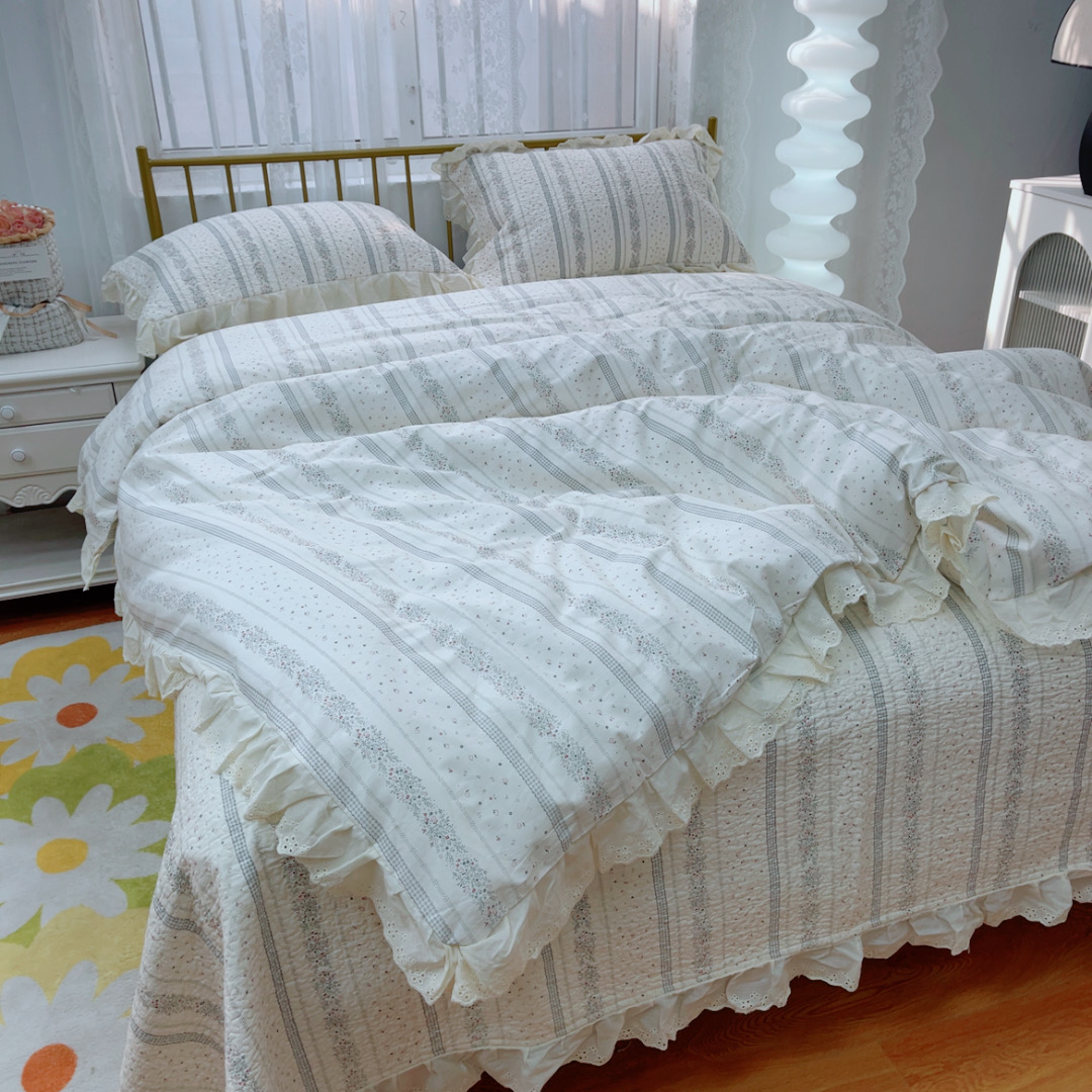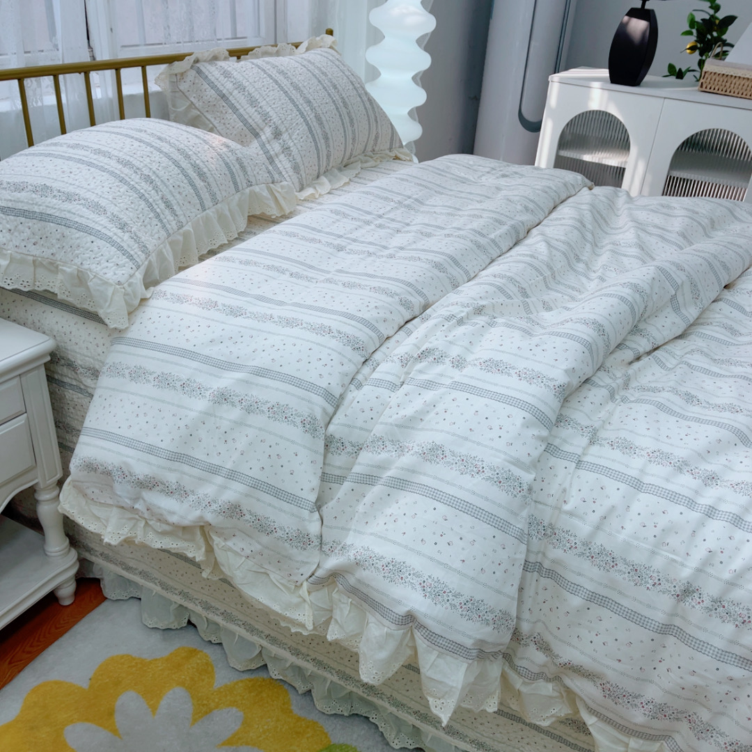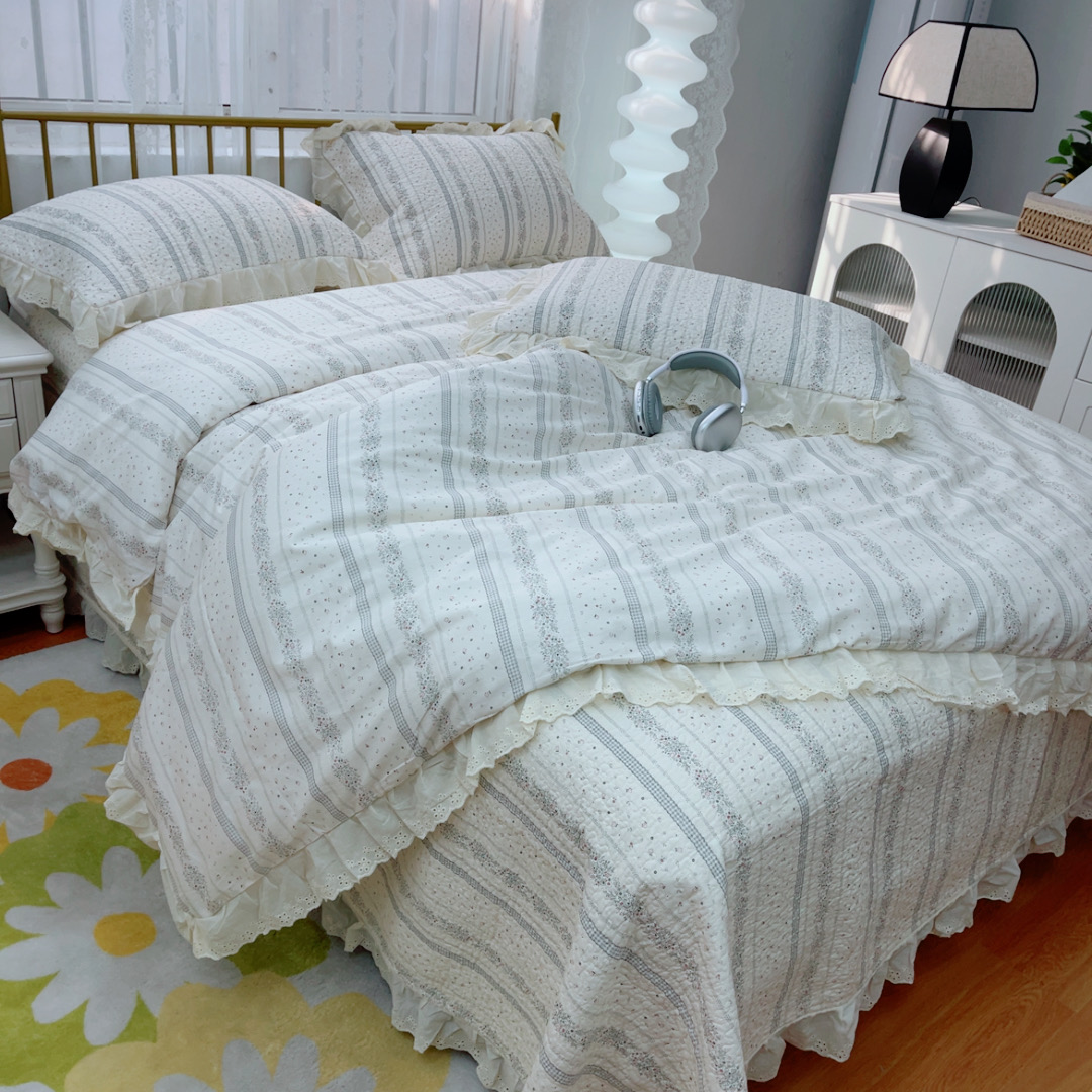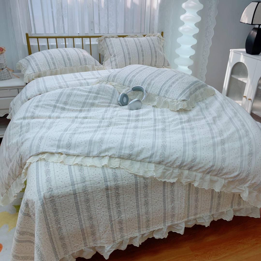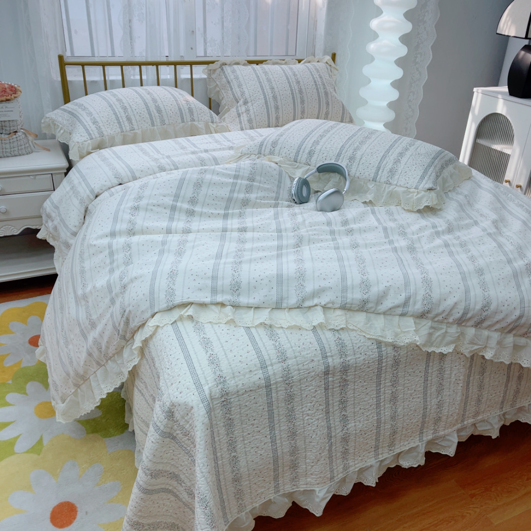 暖居 2025春夏款高温砂洗棉花床盖三件套被套四件套同款纯棉夏被空调被四季 布兰格