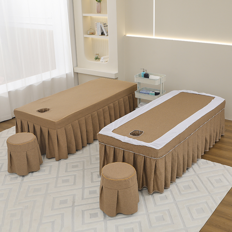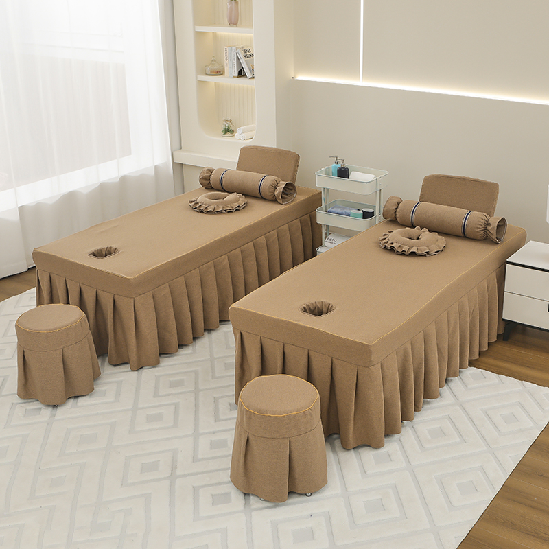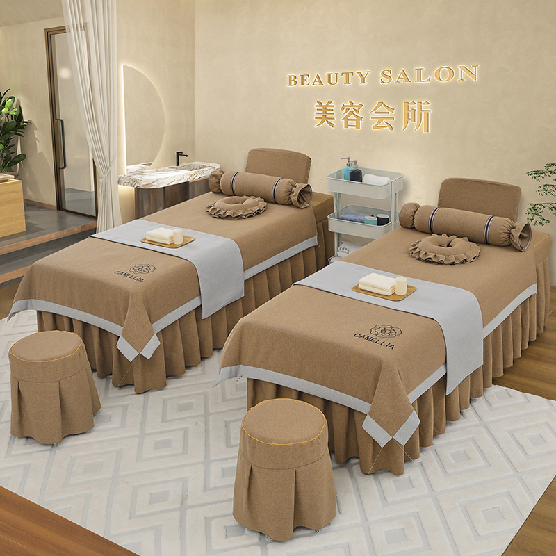 (总)芙怡 2025春夏新款8031款棉麻美容床罩四件套-未央系列,未央-蝶翅蓝,未央-格调 灰,未央-蜜桃 粉,未央-浅咖,未央-浅驼,未央-斑斓绿