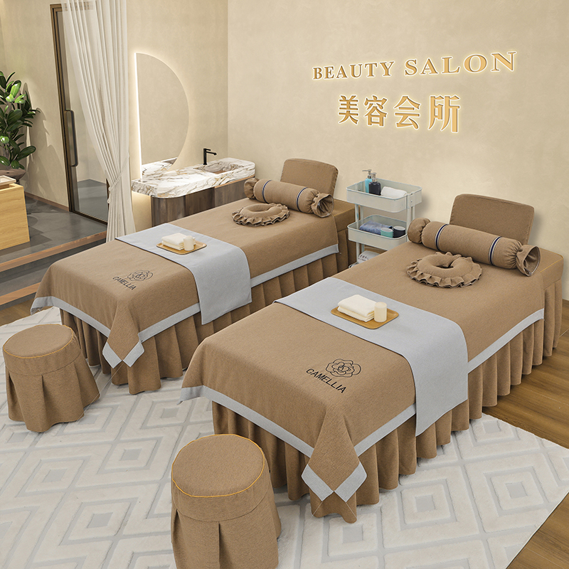 (总)芙怡 2025春夏新款8026款棉麻绒美容床罩四件套-山茶花系列,山茶花-湖蓝,山茶花-紫色,山茶花-粉色,山茶花-米黄,山茶花-灰色,山茶花-棕色,山茶花-白色