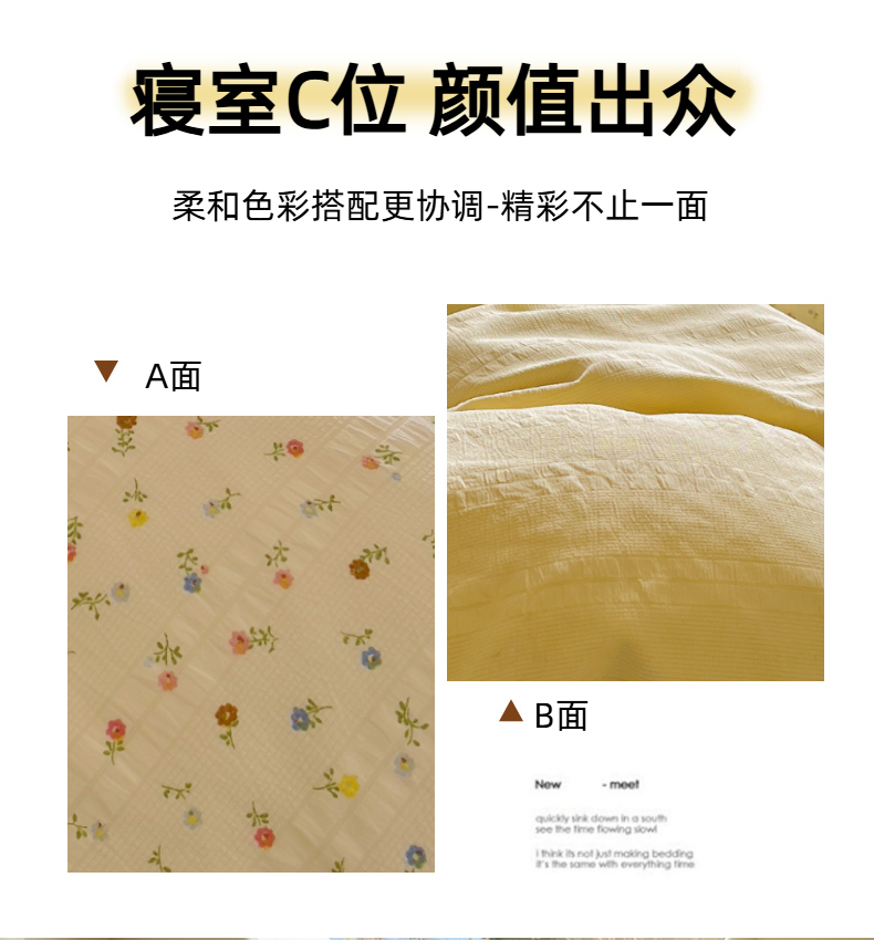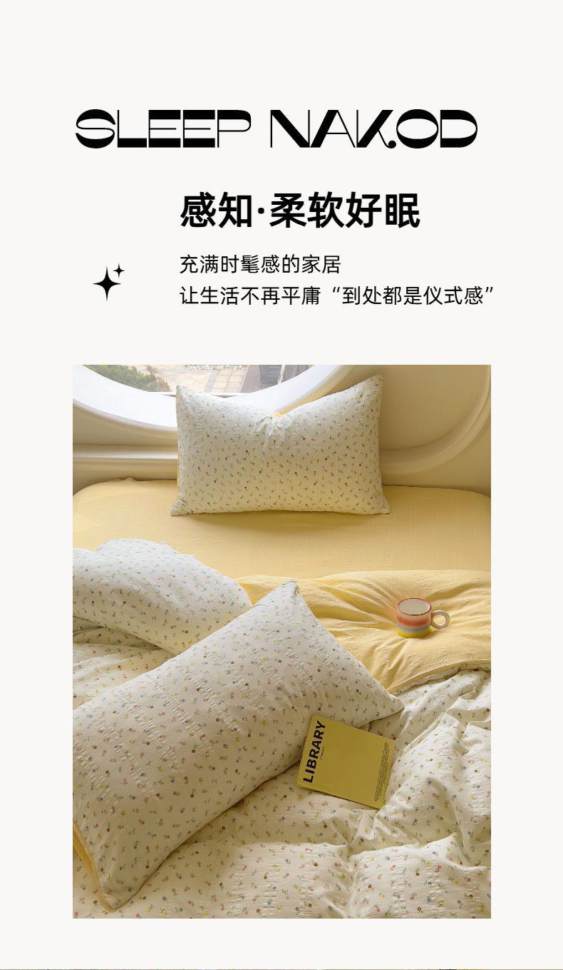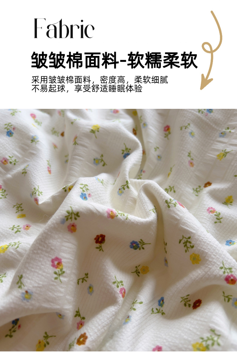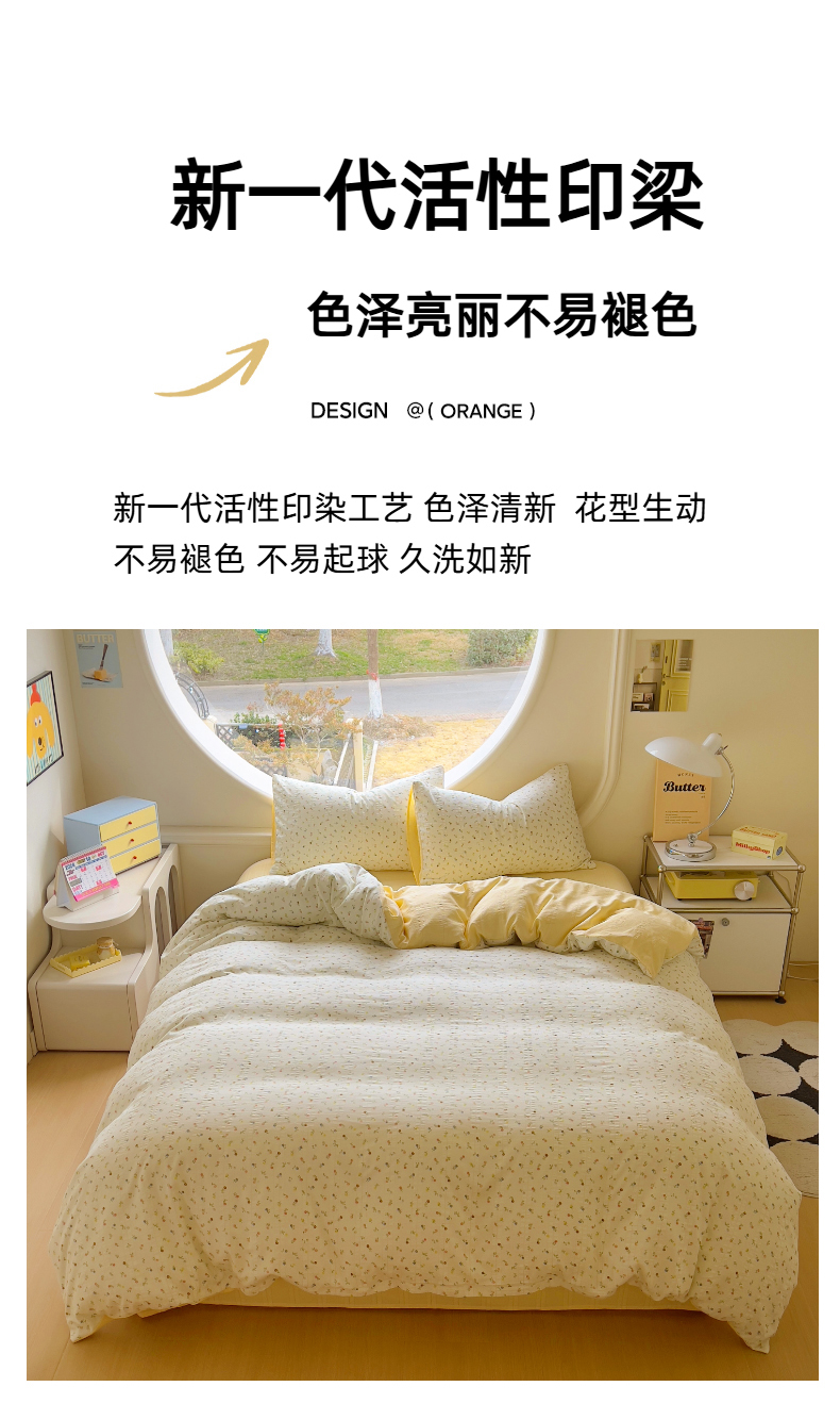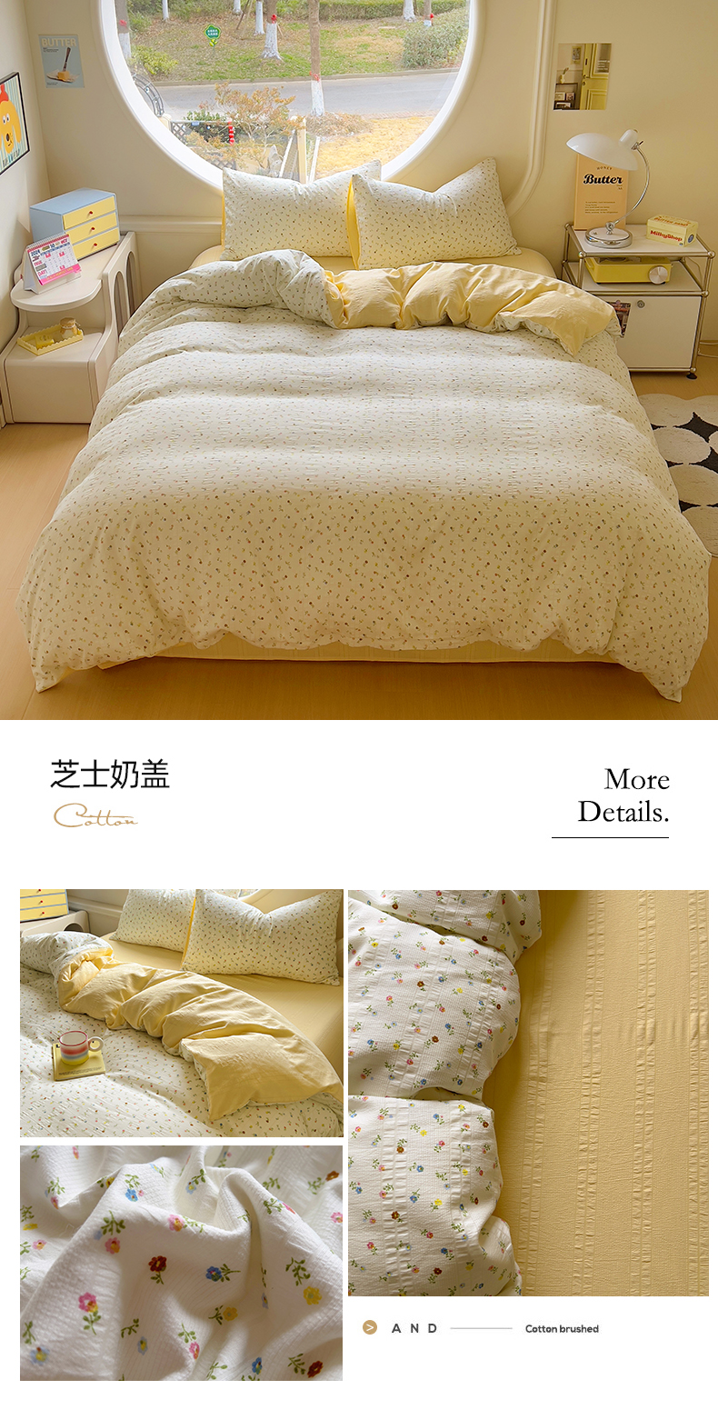 商品名称:王朝国际 2025新款皱皱棉印花四件套 芝士奶盖