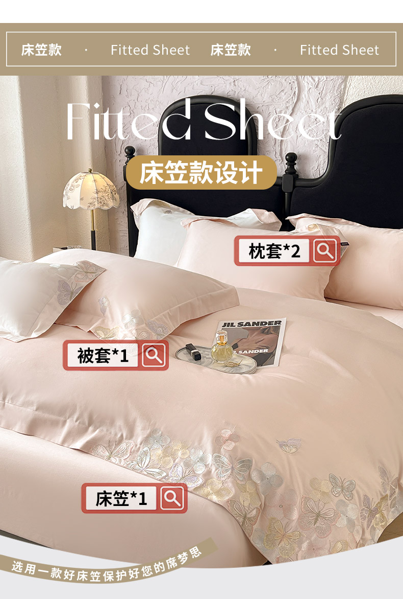 (总)2025新款轻奢风A类100支长绒棉四件套全棉纯棉重工刺绣床单床笠夹棉床笠床盖款高端床上用品-星慕,白粉,白蓝,茶绿,黛紫,慕蓝,奶玉,颜粉