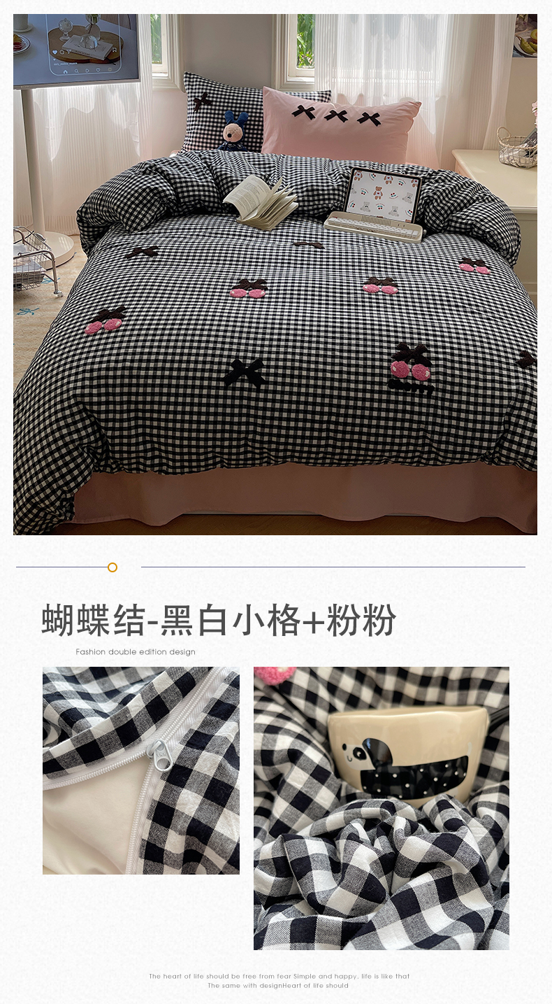 当前位置: 91家纺网 > 商品网购 > 床品套件 > 四件套 > 水洗棉四件套 > 北欧良品 2025新款A类色织水洗棉毛巾绣蝴蝶结少女系列四件套 蝴蝶结-粉黄小格+粉黄