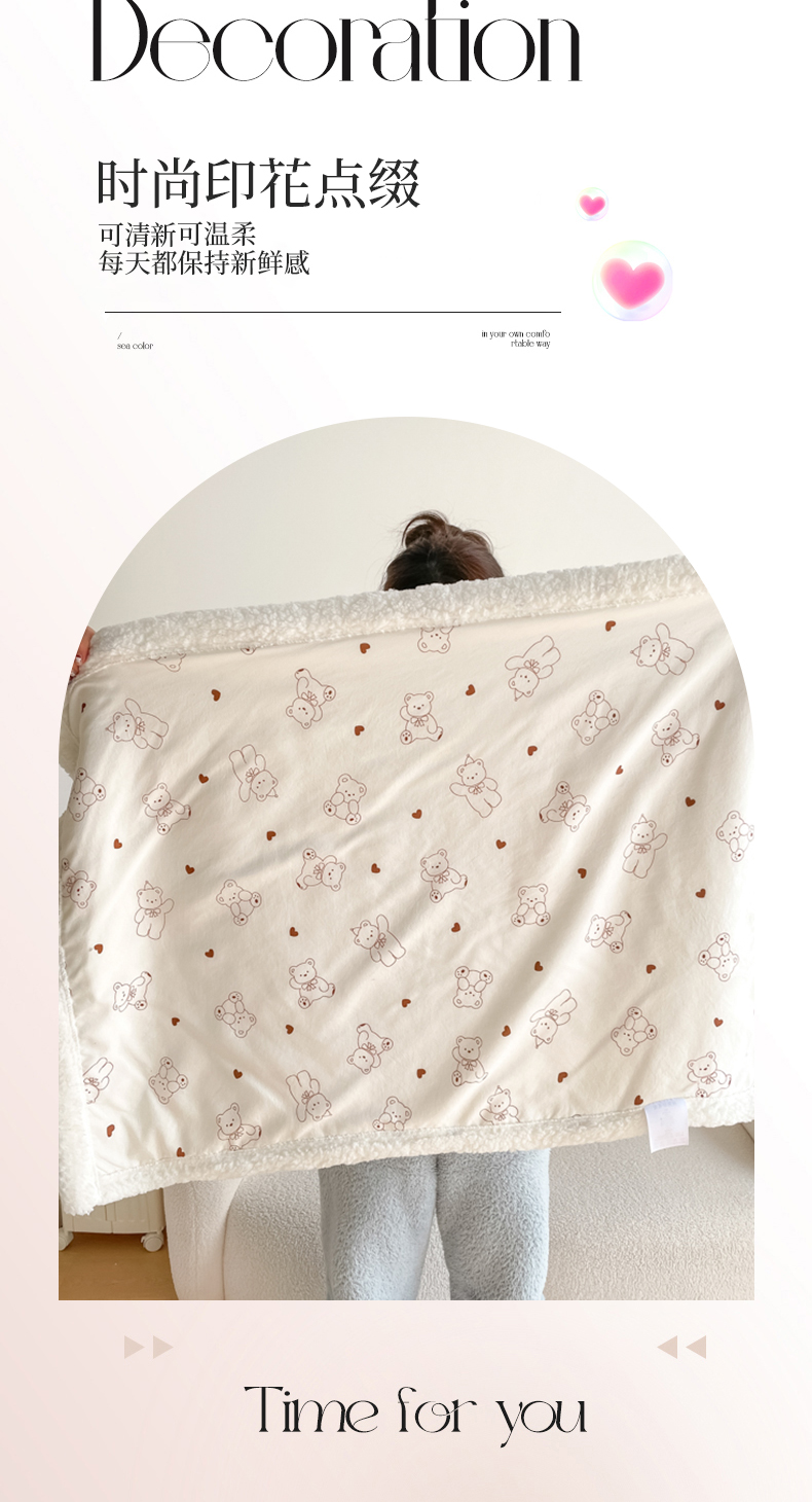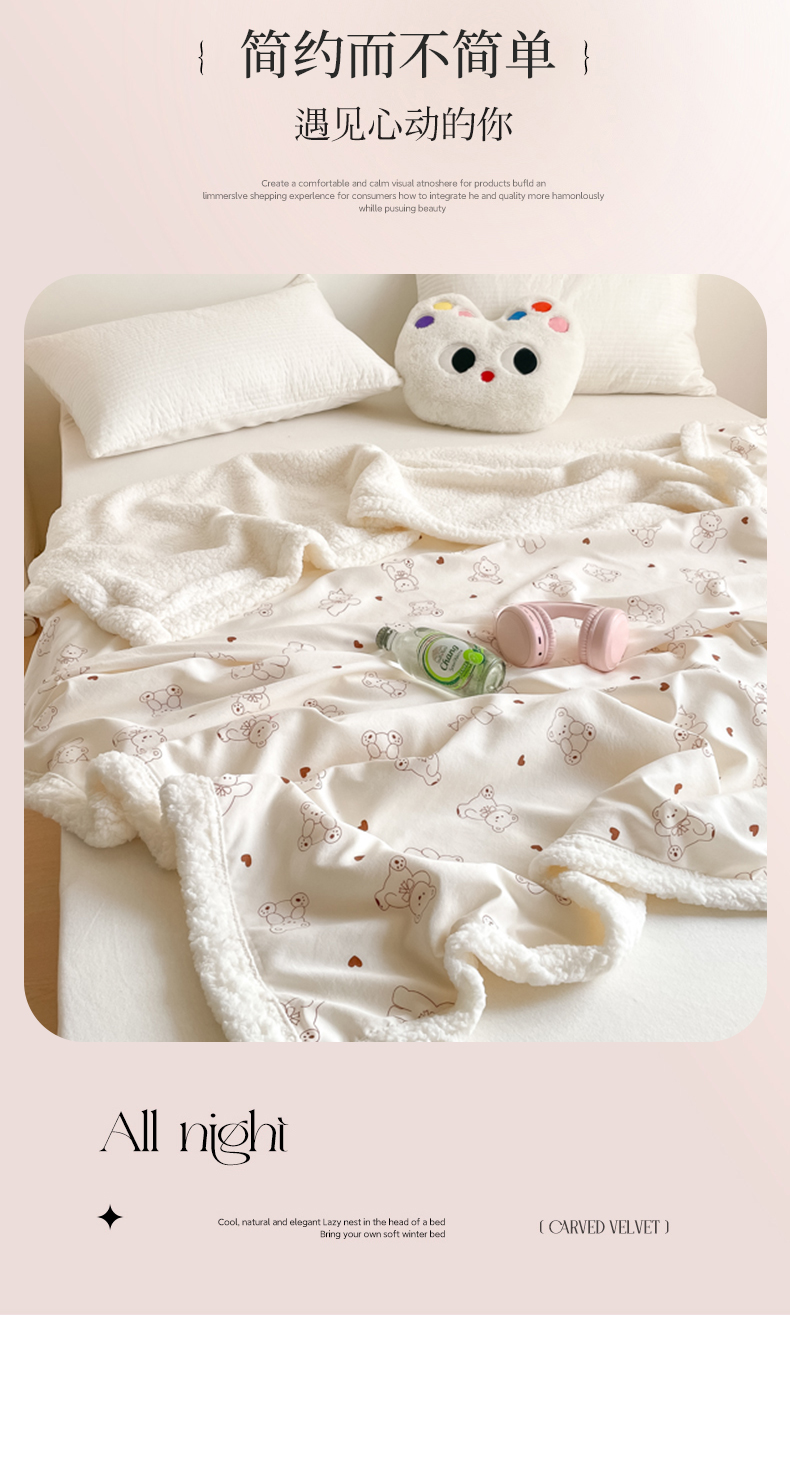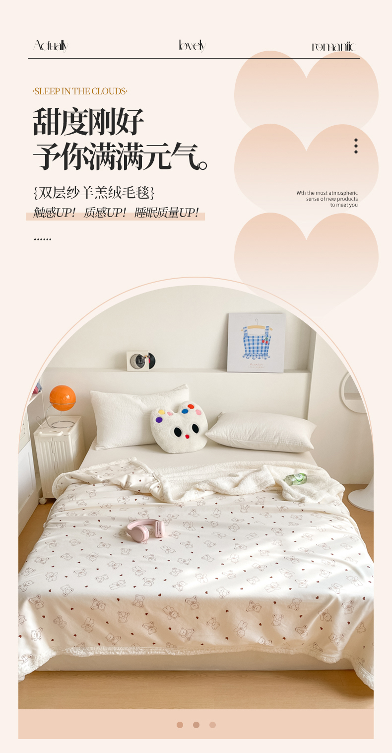 商品名称:857家居 2025新款双层针织纱羊羔绒毛毯 爱心熊宝