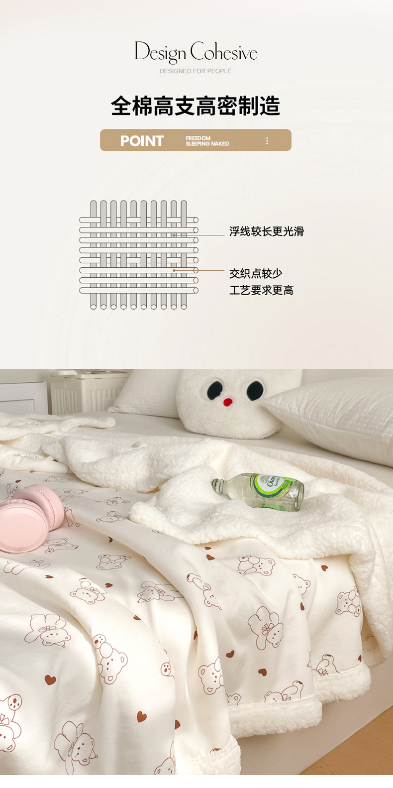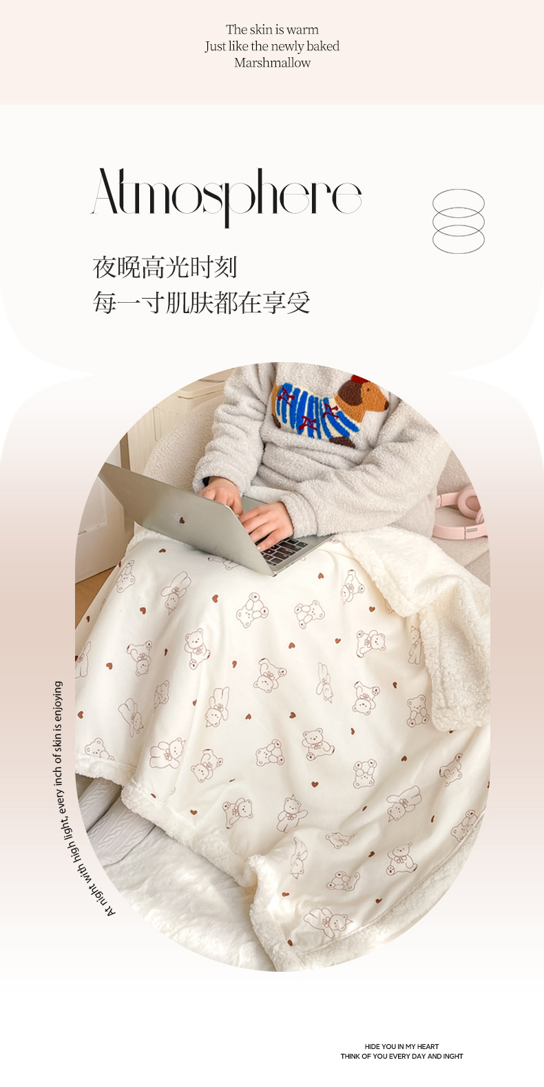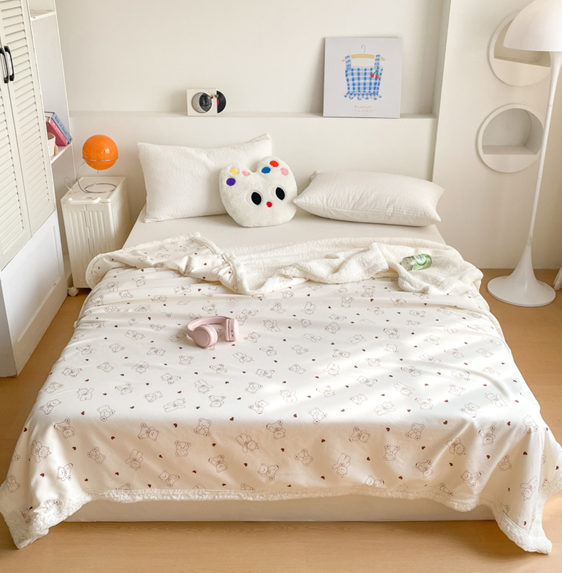 商品名称:857家居 2025新款双层针织纱羊羔绒毛毯 爱心熊宝